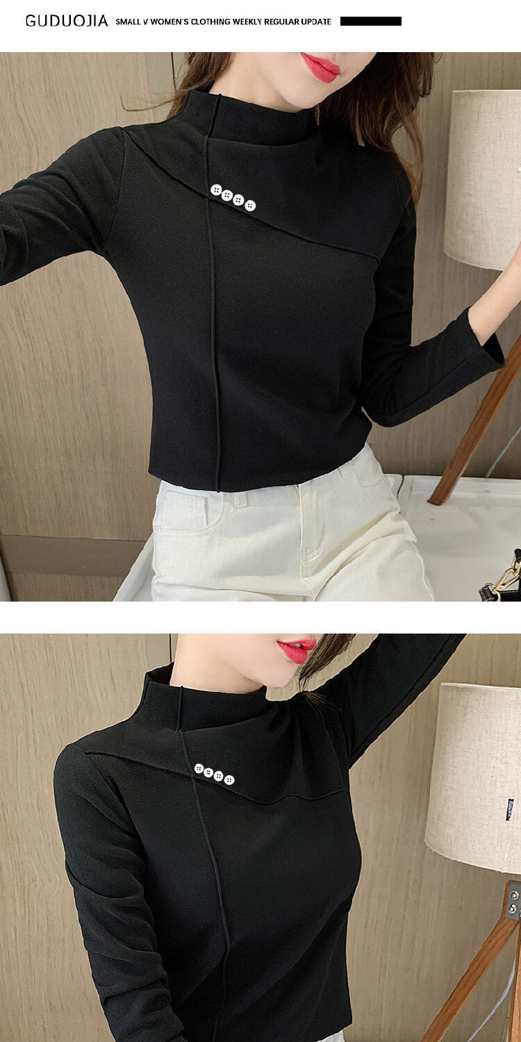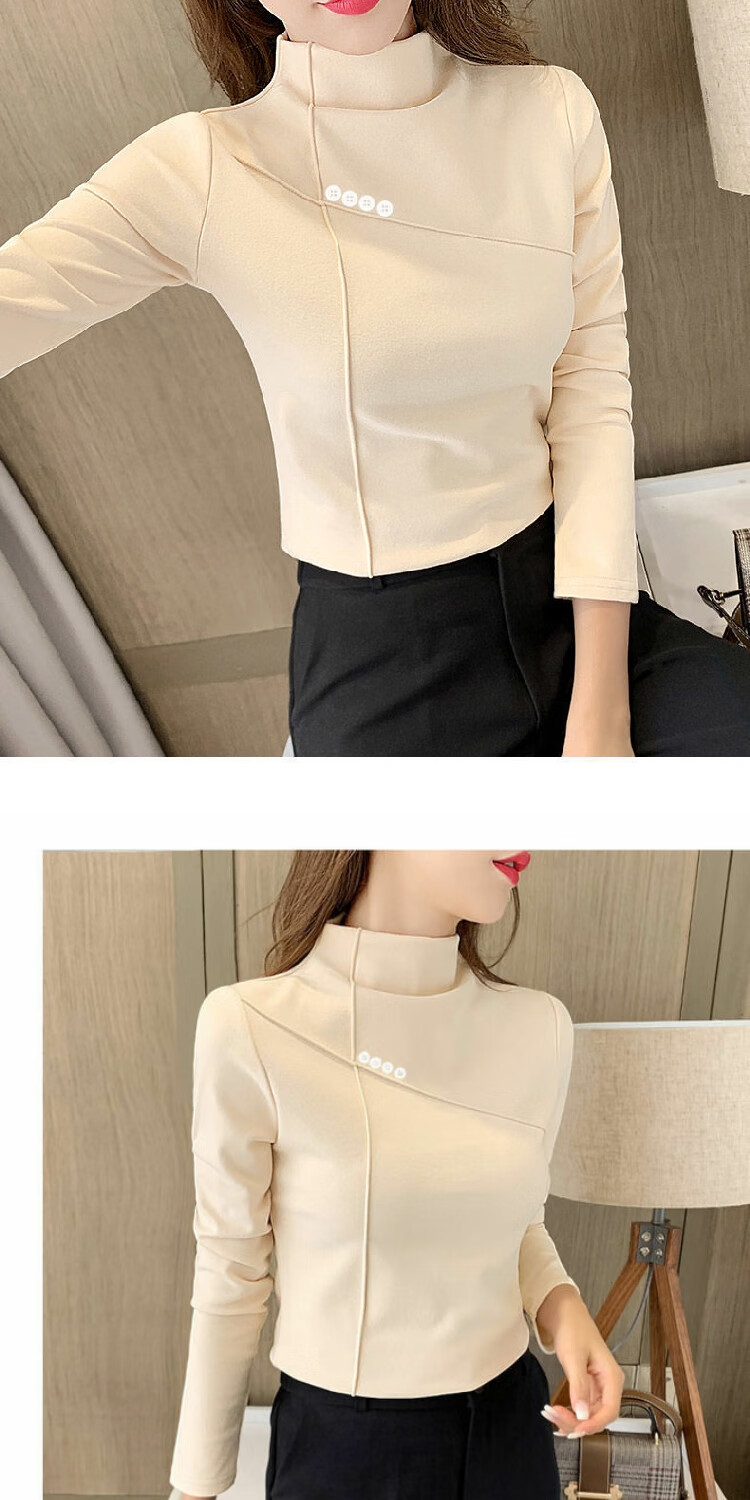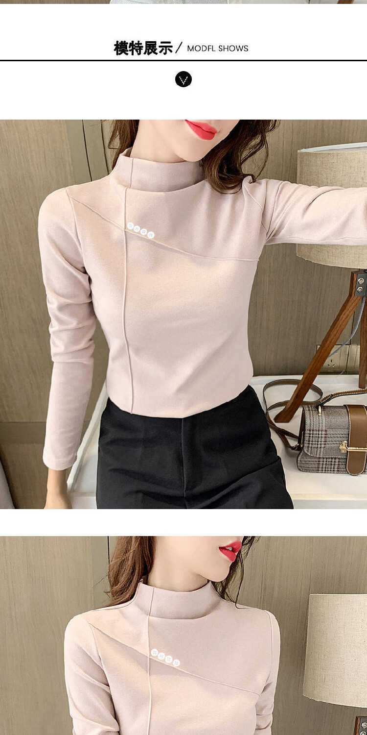 Double-sided German velvet bottoming shirt for women, new high-end half turtleneck 2025 T-shirt, fashionable high-end autumn and winter versatile top, white M, recommended 80-100 pounds