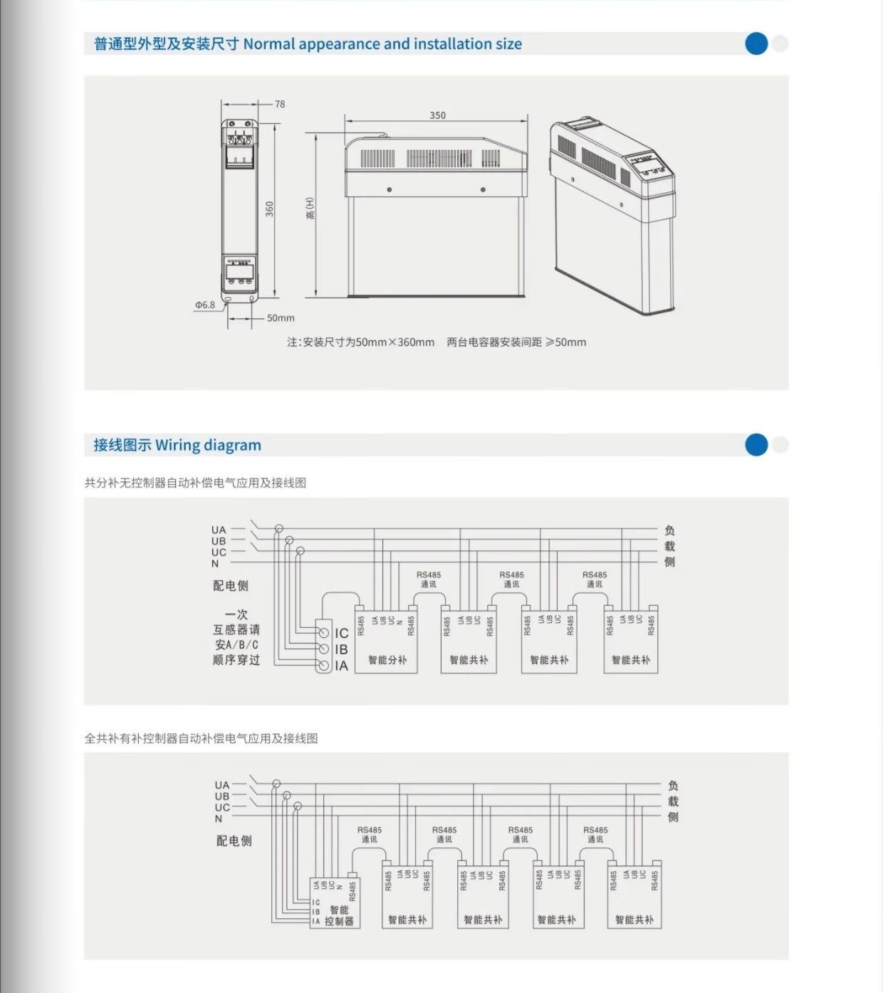 Reactive power compensation intelligent capacitor on-site compensation cabinet three-phase self-healing parallel intelligent integrated power capacitor 450V/25+25 (total compensation)