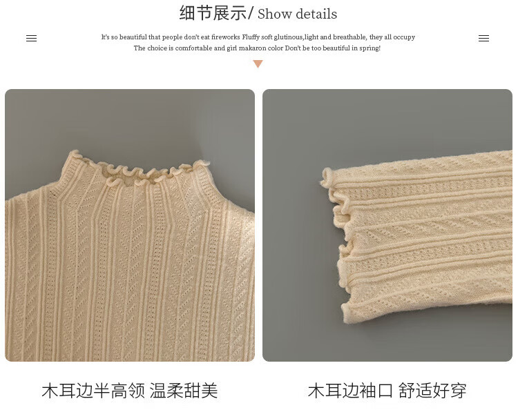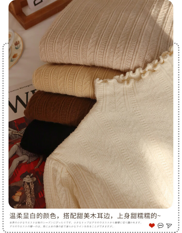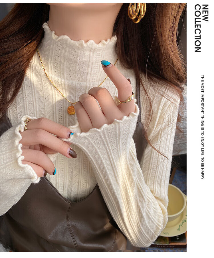 Xinnan autumn and winter style is gentle and versatile, fashionable for outer wear and inner wear, new half-high collar, fungus edge knitted long-sleeved student student, apricot color bottoming shirt, one size fits all, 90-130 pounds