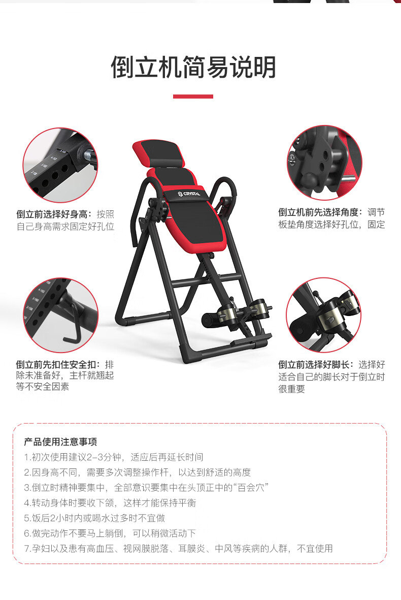 CRYSTAL crystal sports inversion machine home multi-functional inversion artifact yoga auxiliary fitness material classic black and red sponge corner protector + rear installation