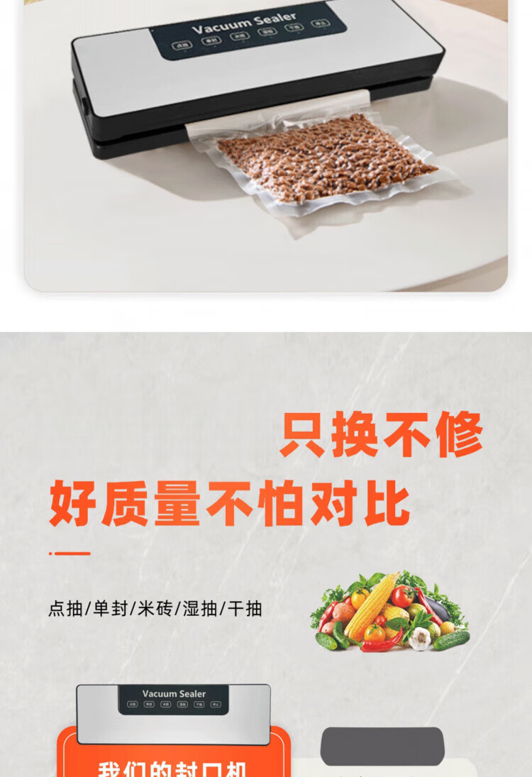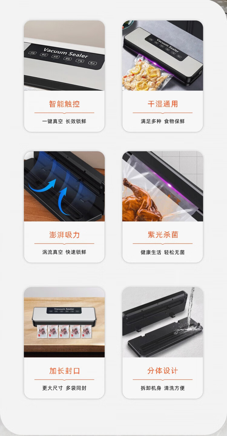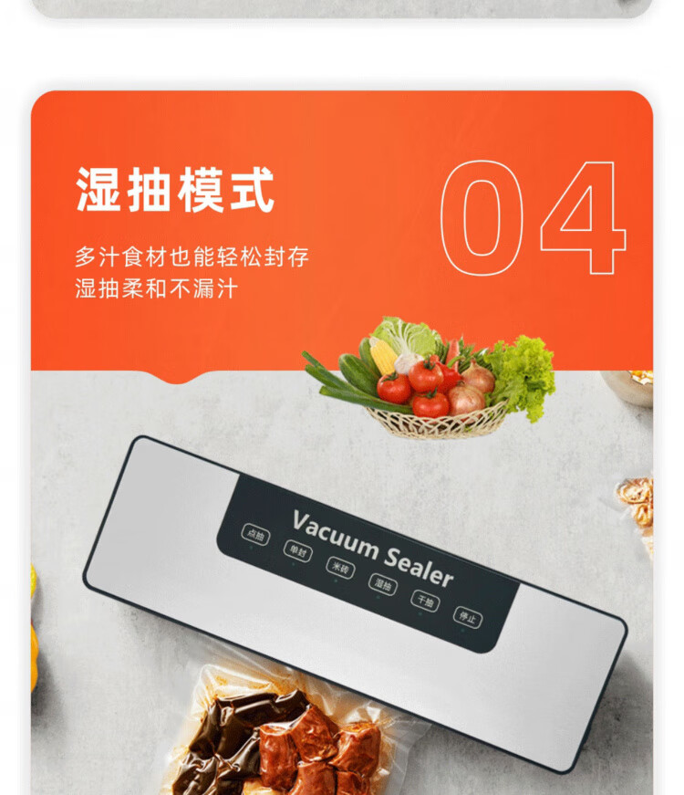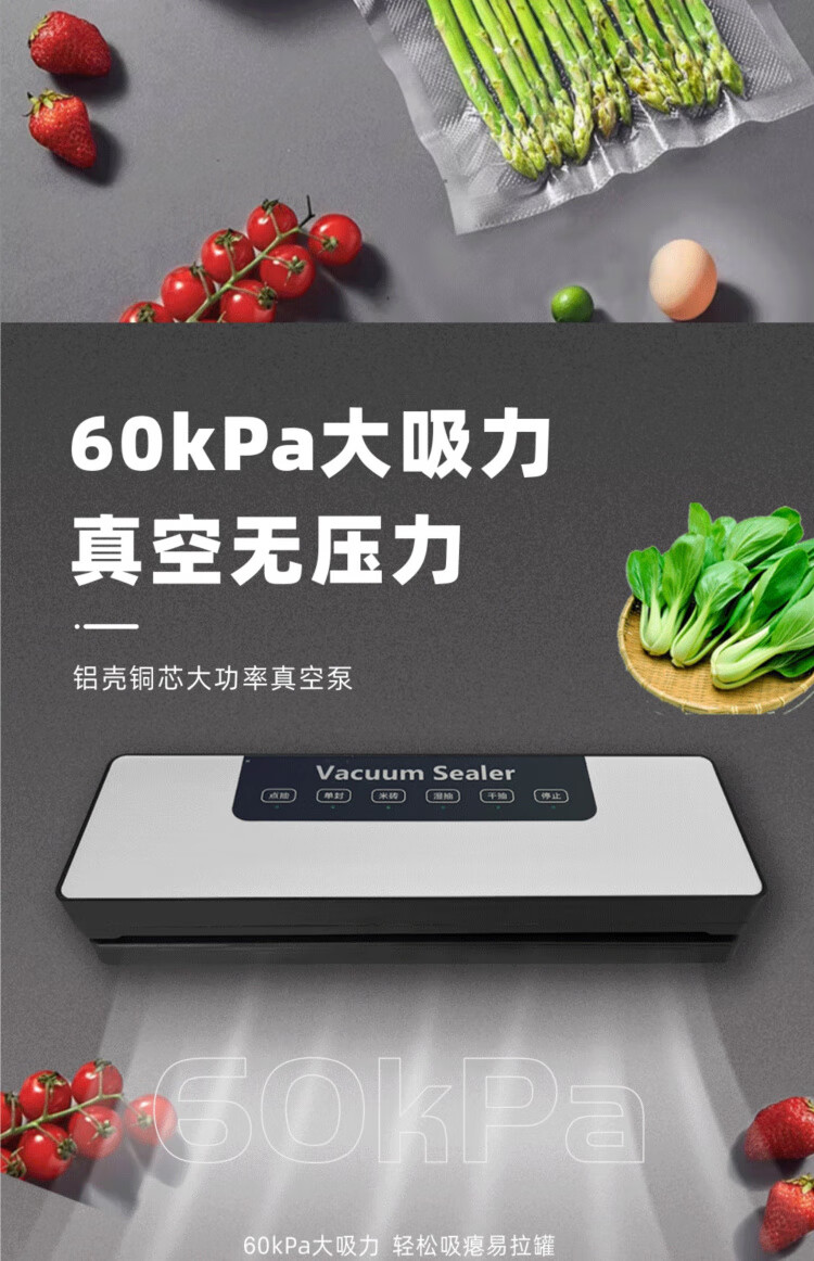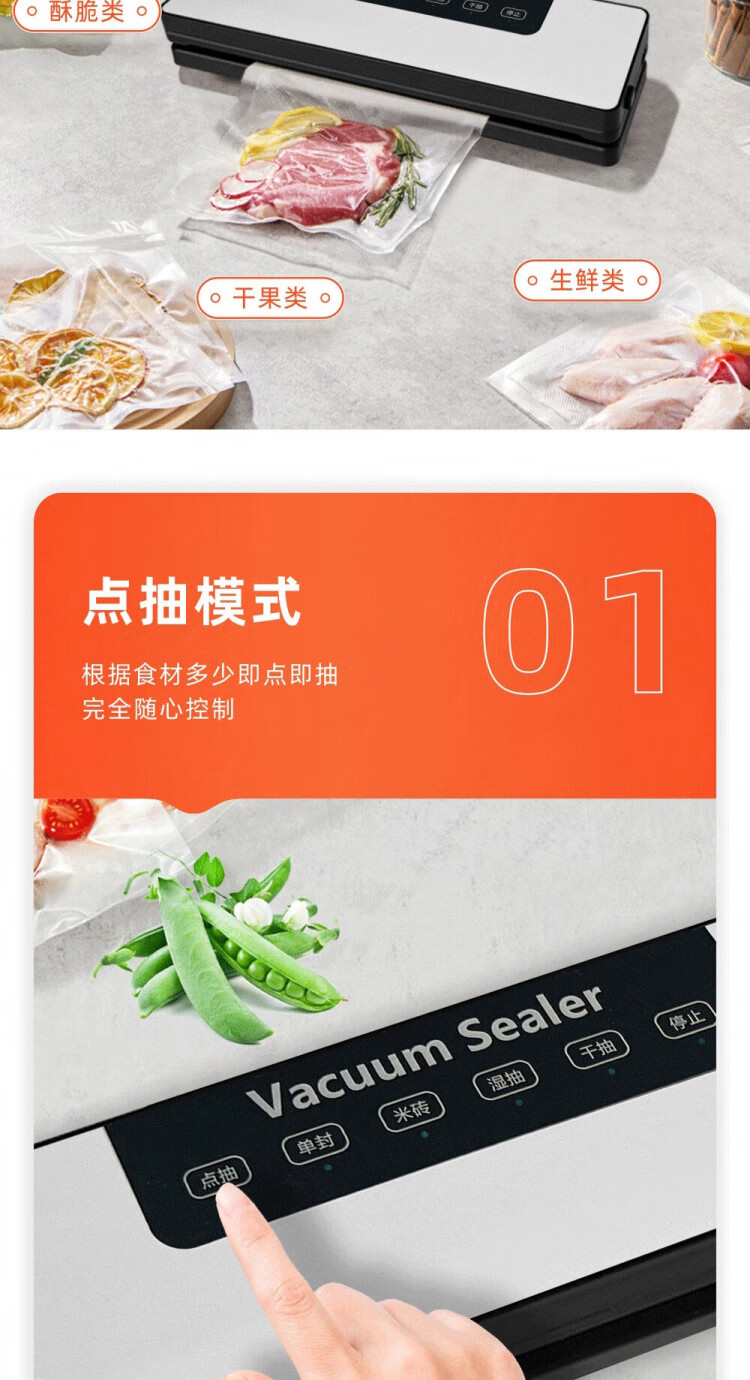 Sawang Germany vacuum sealing machine household commercial wet and dry fully automatic vacuum packaging machine high-power plastic sealing machine without bagging bacon sausage antibacterial preservation machine frost gray purple light sterilization +100 sterile bags 2cm