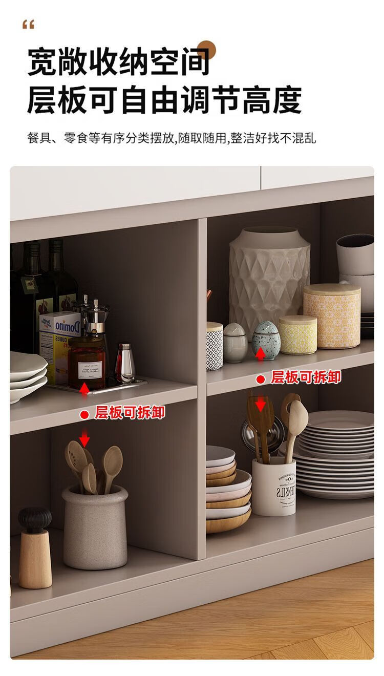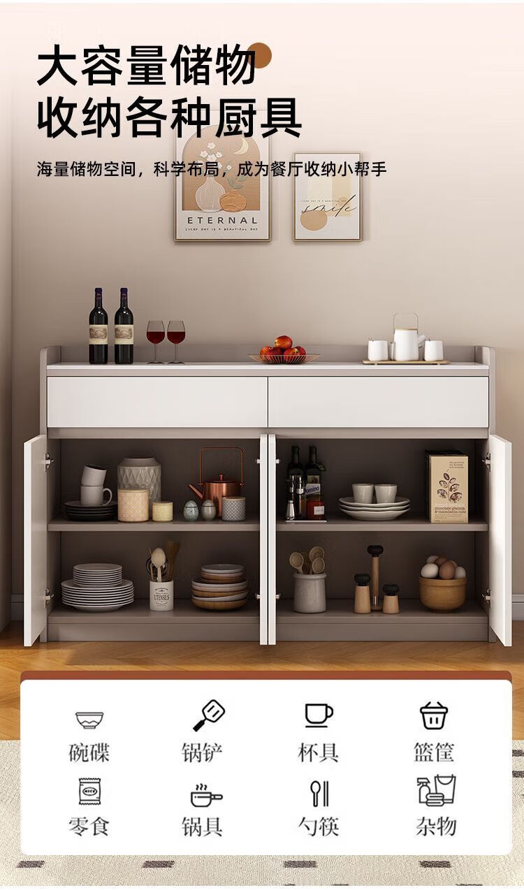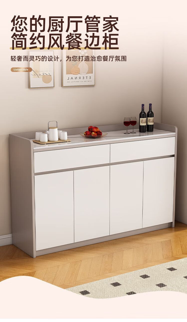 Bantujiang sideboard cupboard living room wall storage cabinet multi-functional storage cabinet tea cabinet wine cabinet khaki + white two doors single drawer 80cm