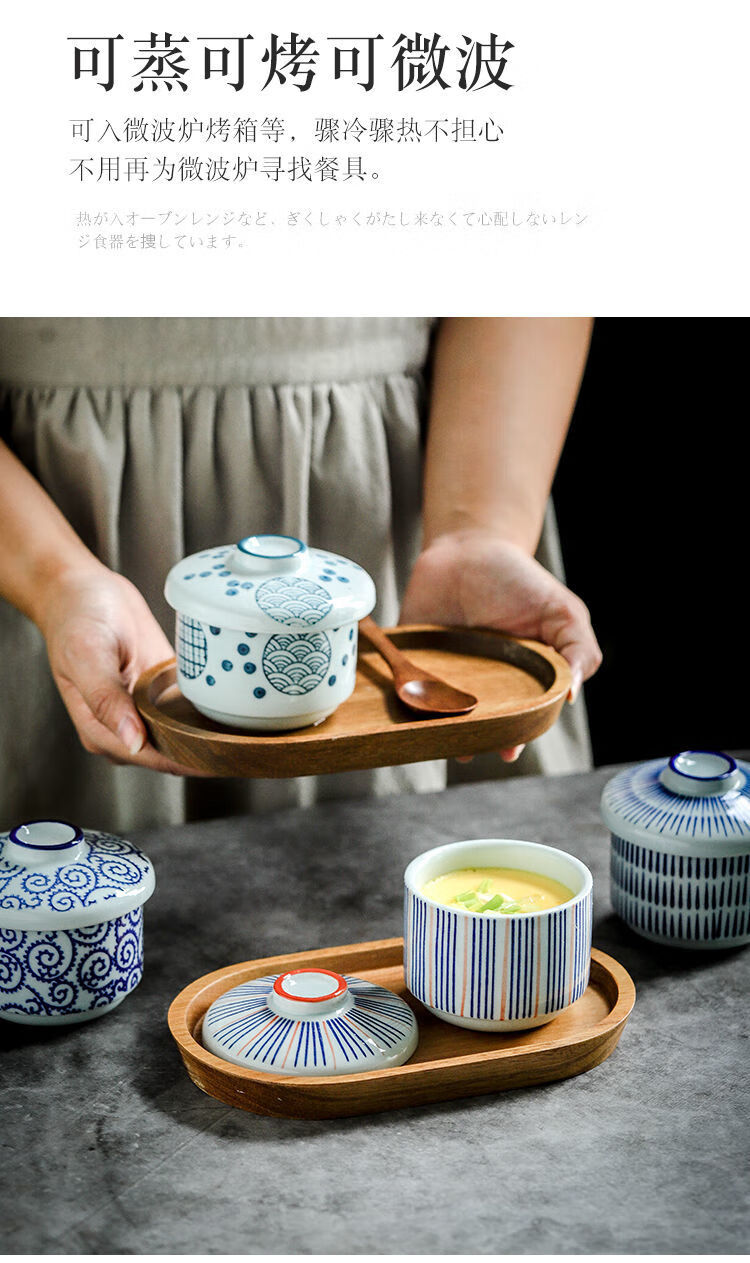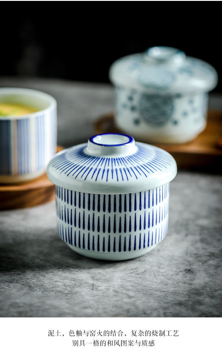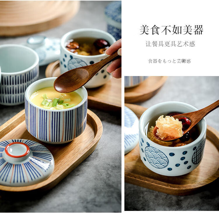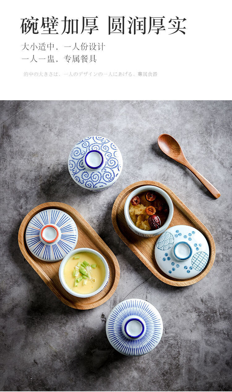 MZXM日本进口品质创意陶瓷小汤盅带盖炖盅炖碗宝宝蒸蛋碗盖碗隔水炖燕 浅蔓-甜品盅
