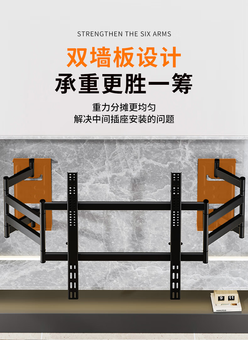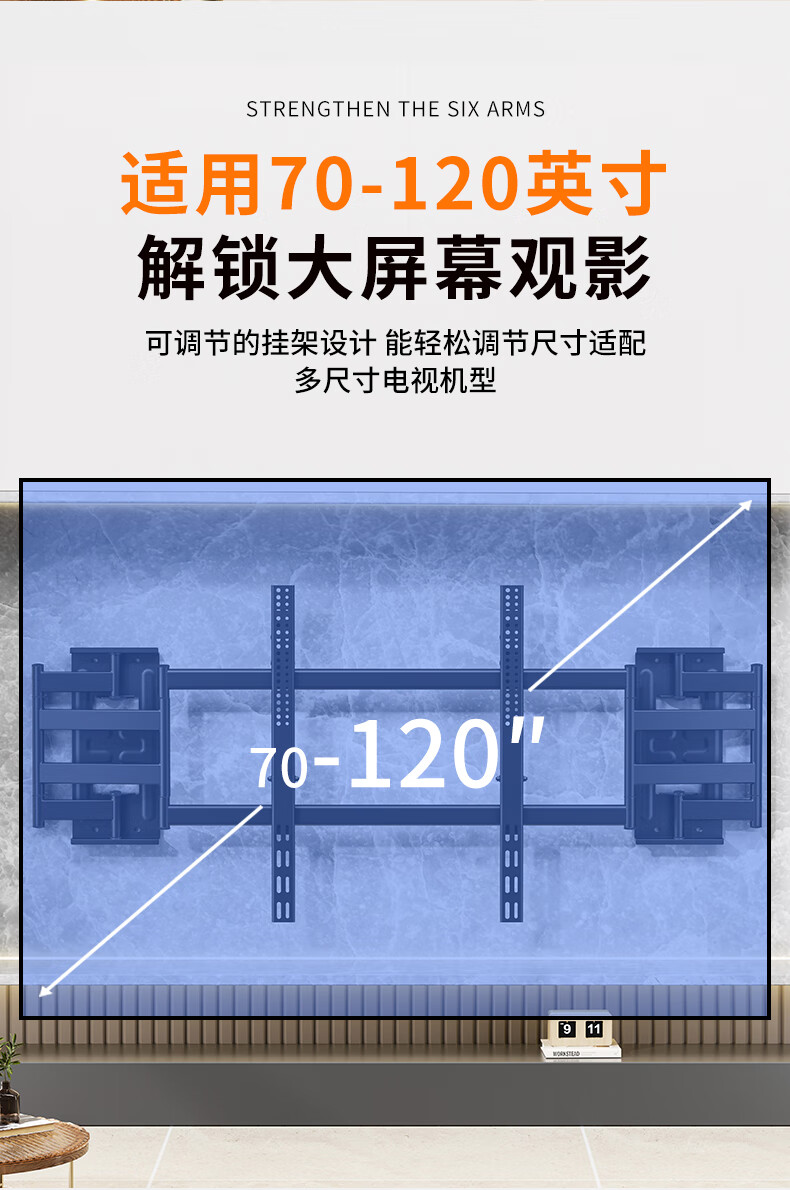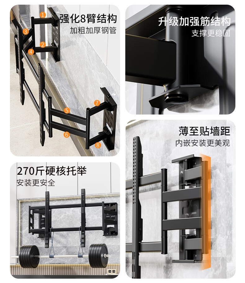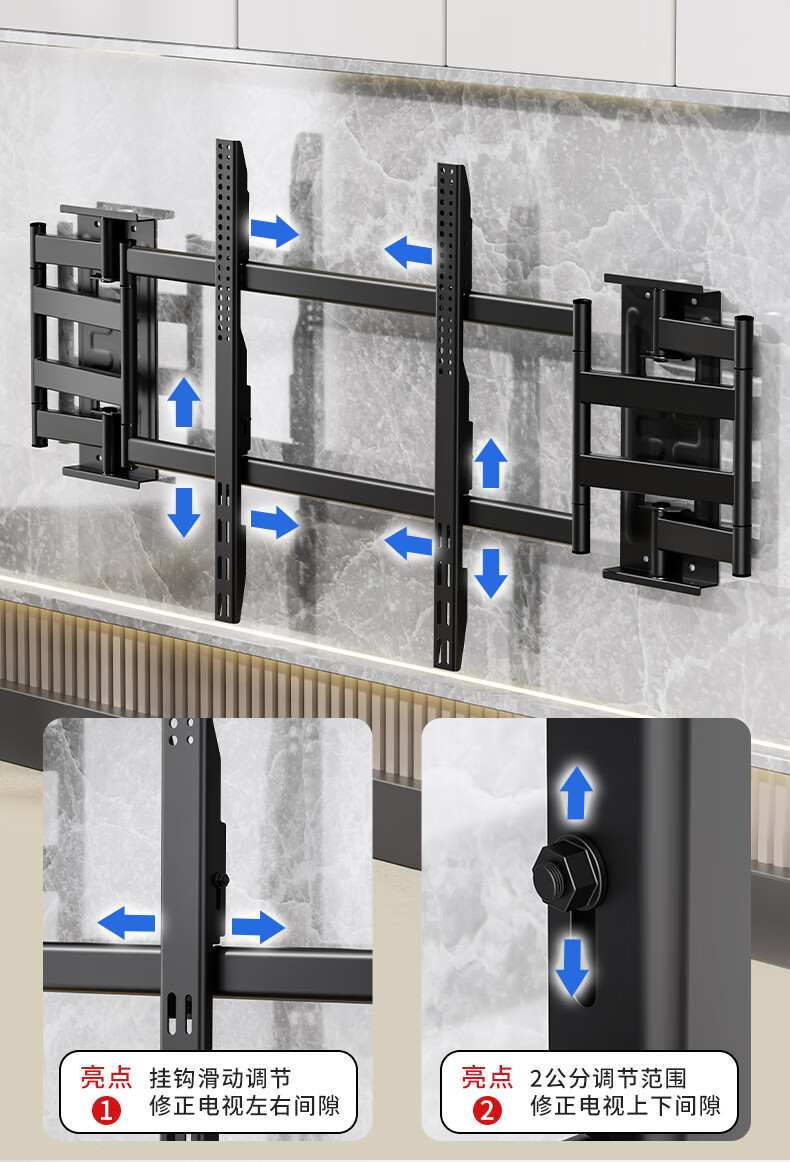 Blue Sky Vision ultra-thin built-in double-arm telescopic TV bracket wall-mounted embedded rotatable universal adapter 100-inch Hisense Xiaomi Skyworth TCL TV 85-inch wall-mounted special bracket Ultra-thin built-in 70-100 inches suitable for 135KG load-bearing
