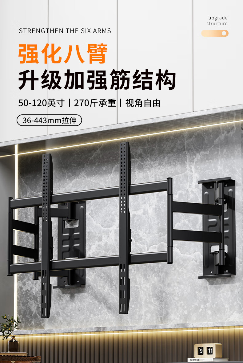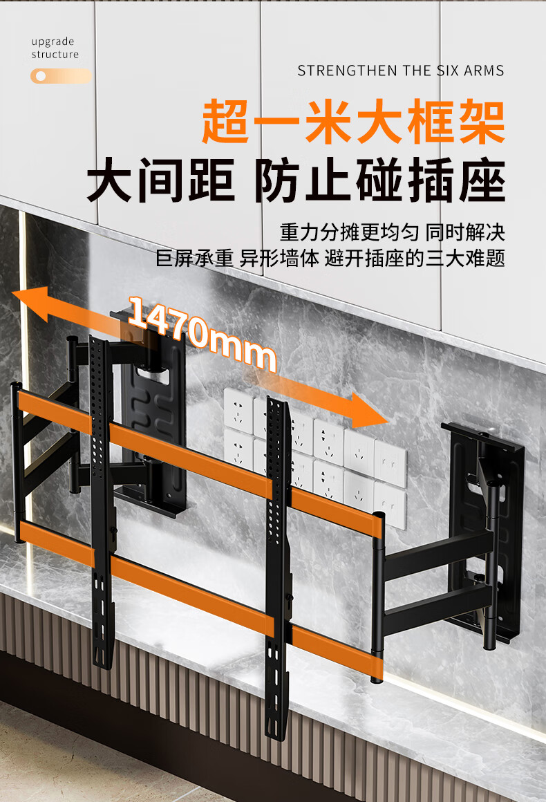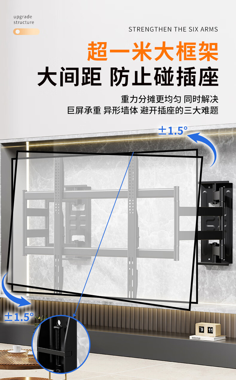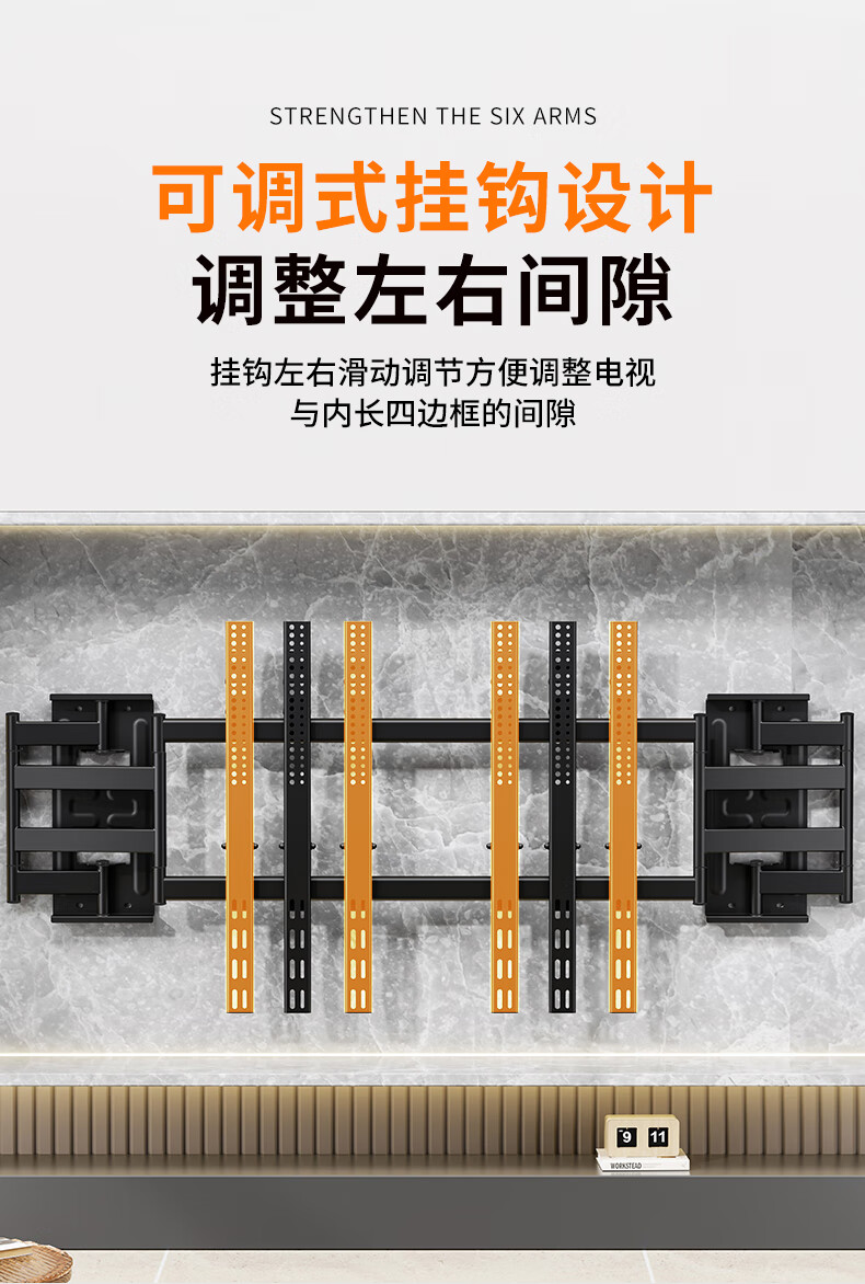 Blue Sky Vision ultra-thin built-in double-arm telescopic TV bracket wall-mounted embedded rotatable universal adapter 100-inch Hisense Xiaomi Skyworth TCL TV 85-inch wall-mounted special bracket Ultra-thin built-in 70-100 inches suitable for 135KG load-bearing