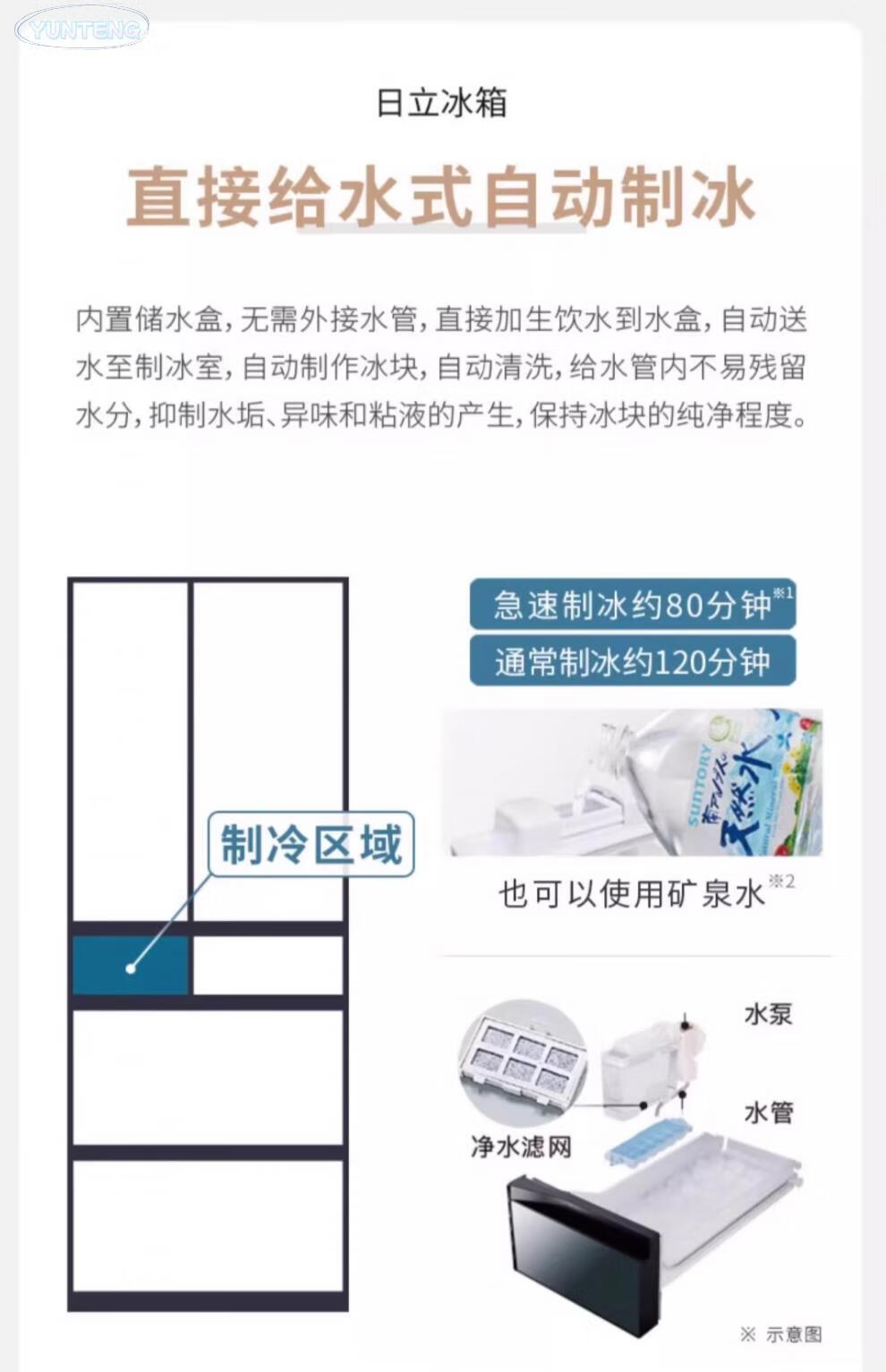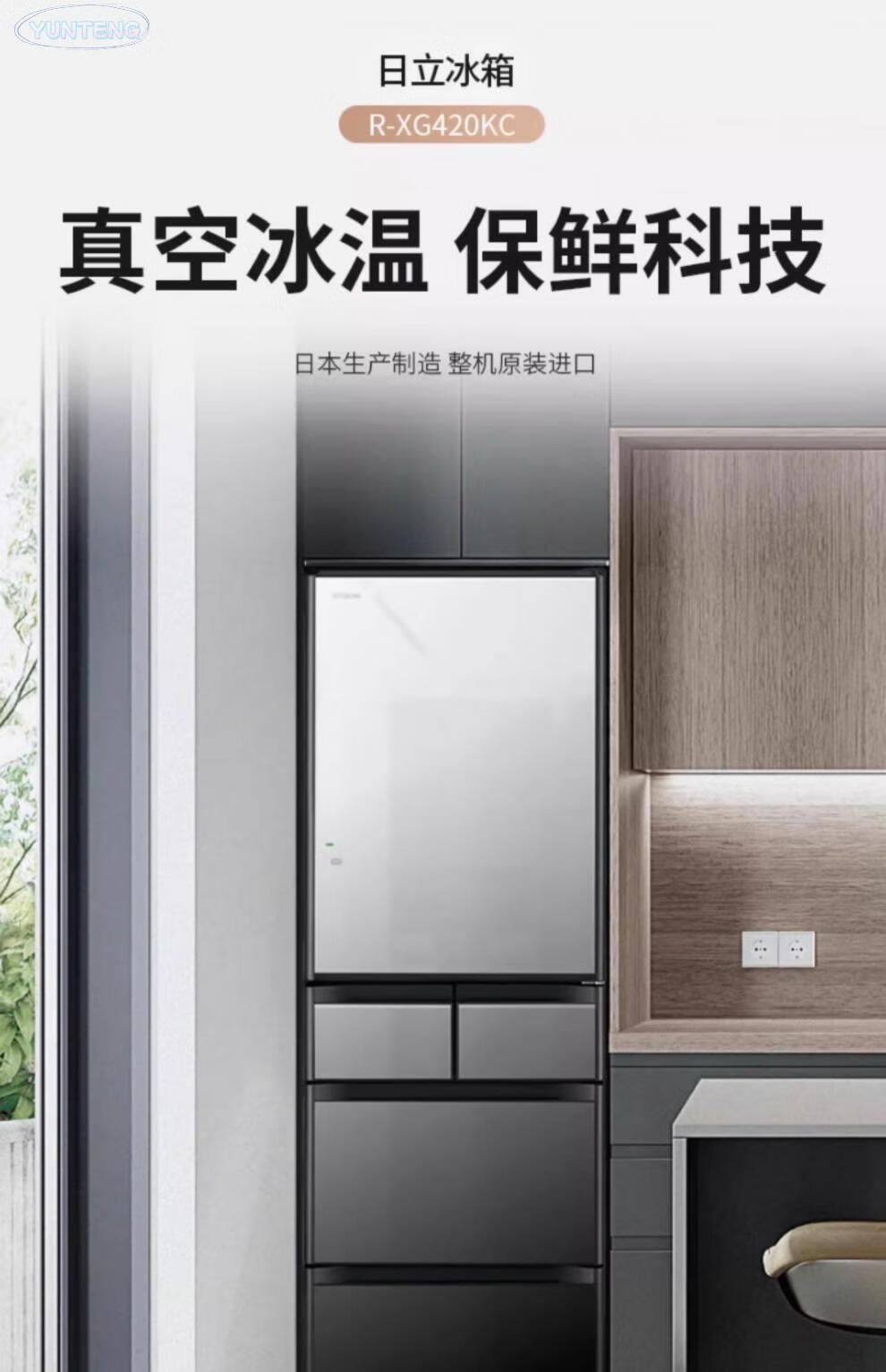 Hitachi (HITACHI) 420 imported from Japan, small-sized embedded 60cm wide household multi-door automatic ice-making refrigerator R-XG420KC_401L crystal white