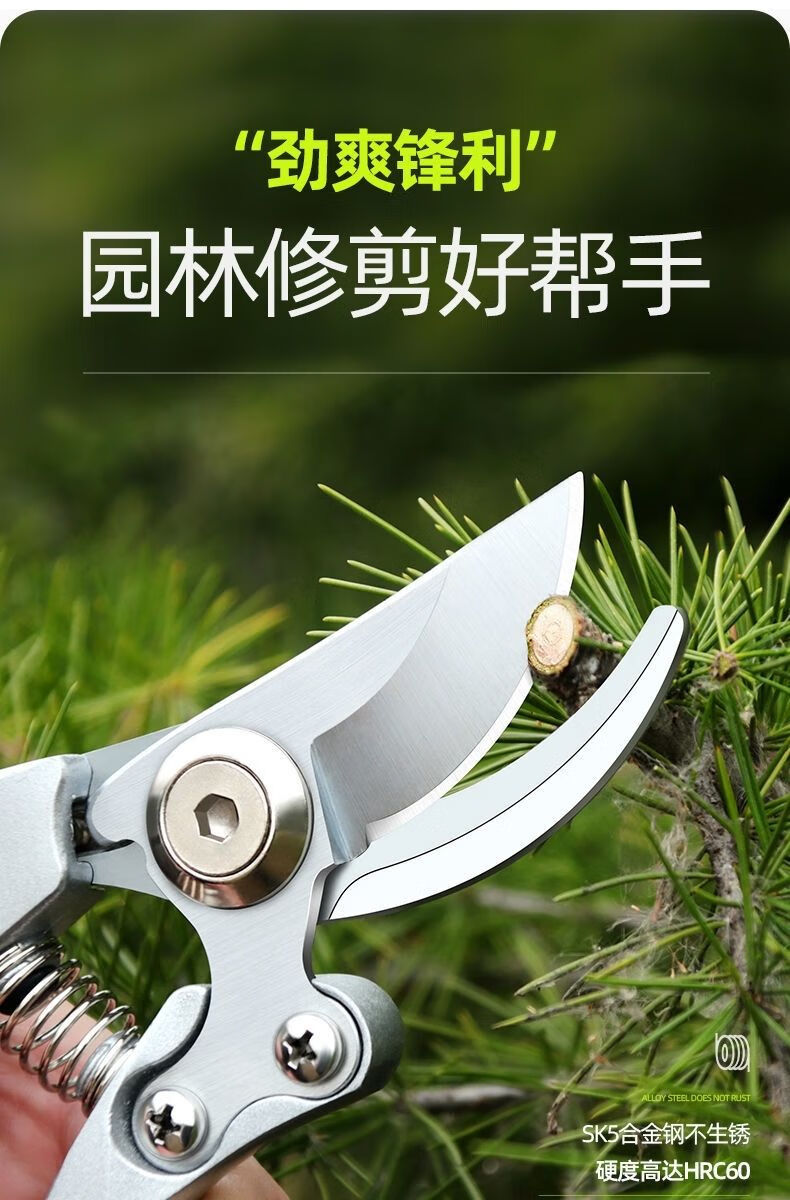Original SK5 steel pruning shears, sharp and labor-saving scissors, branch pruning, gardening shears, fruit tree scissors, ordinary U-shaped scissors, small size (not recommended), SK5 large-diameter thick branch shears, imported from Japan