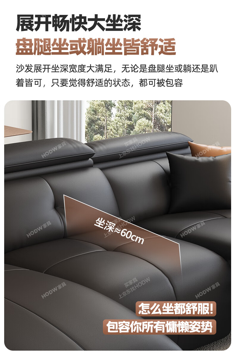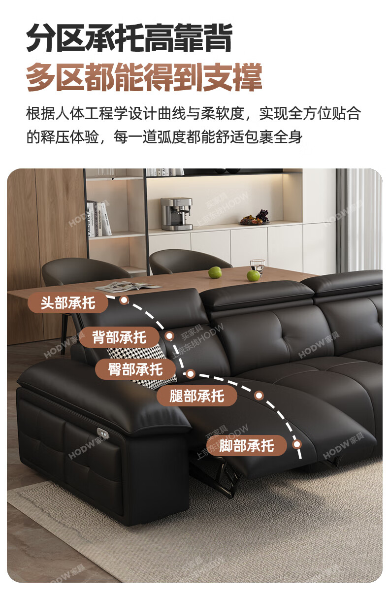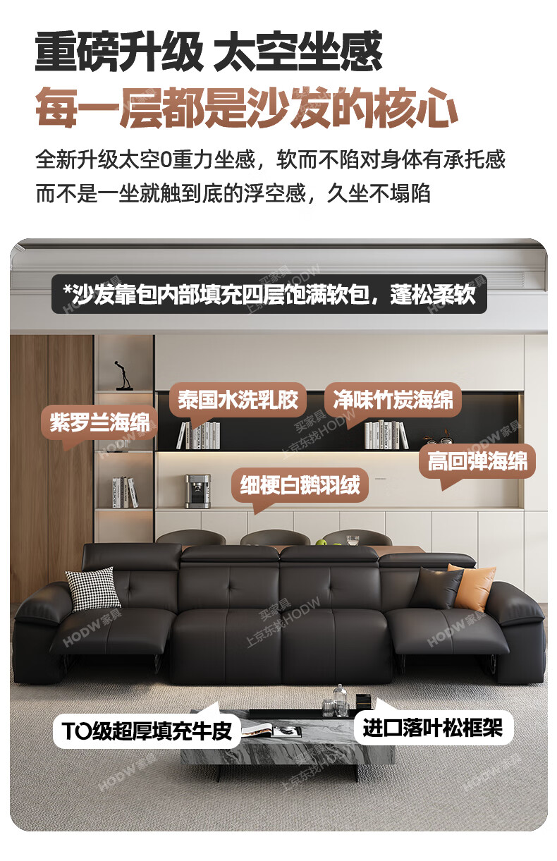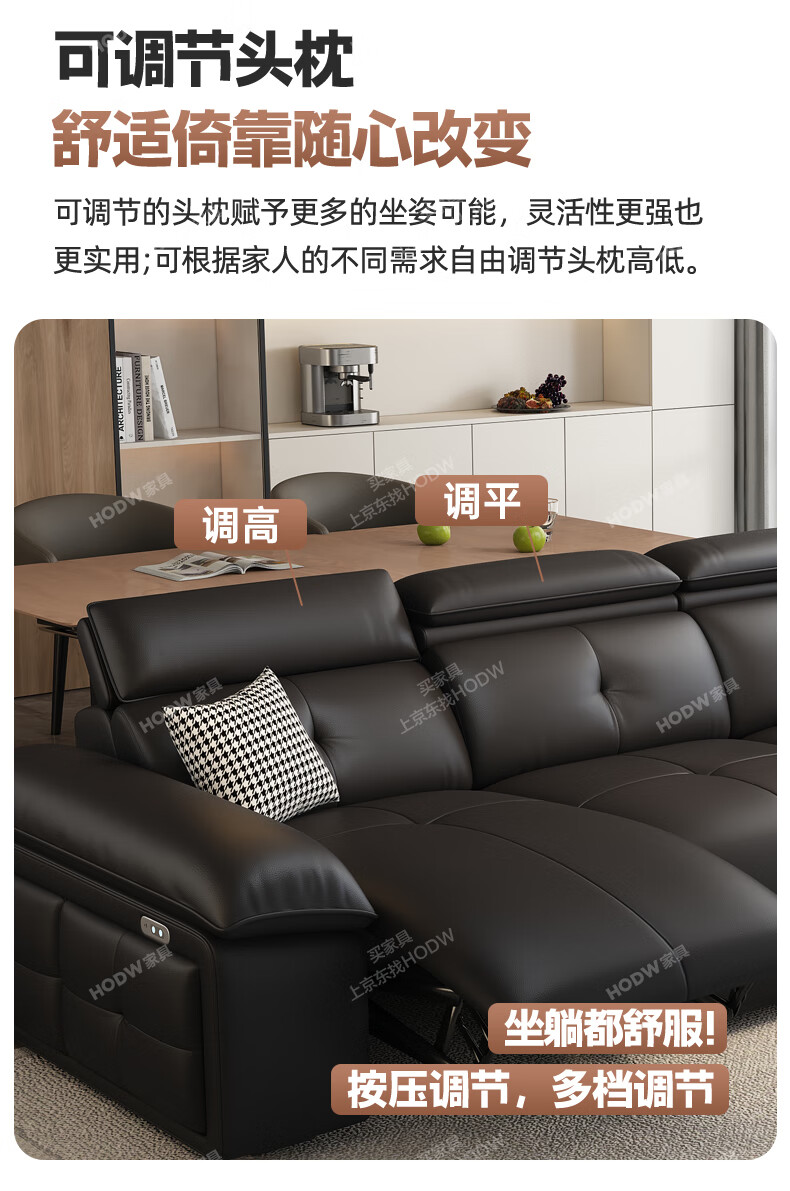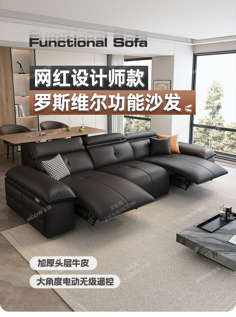HODW Electric Functional Sofa Zero Wall Lawrence Leather Sofa Living Room Italian Minimalist First Class Sofa 2025 3.15m Four-seater Double Electric Fully Covered 2.8mm First Layer Cowhide