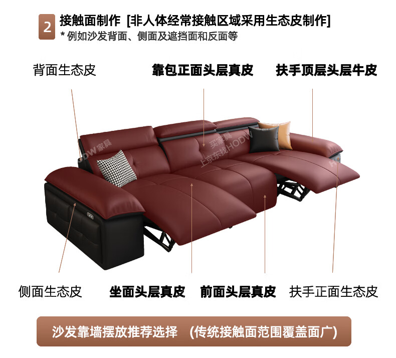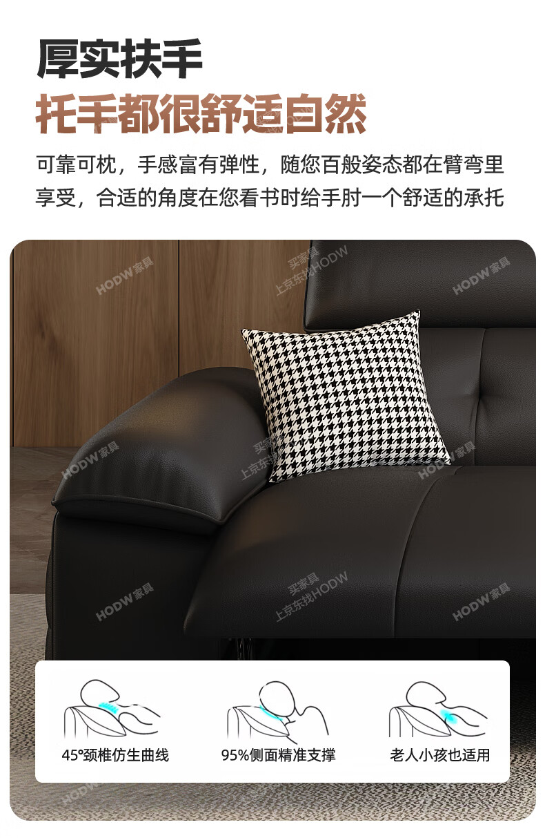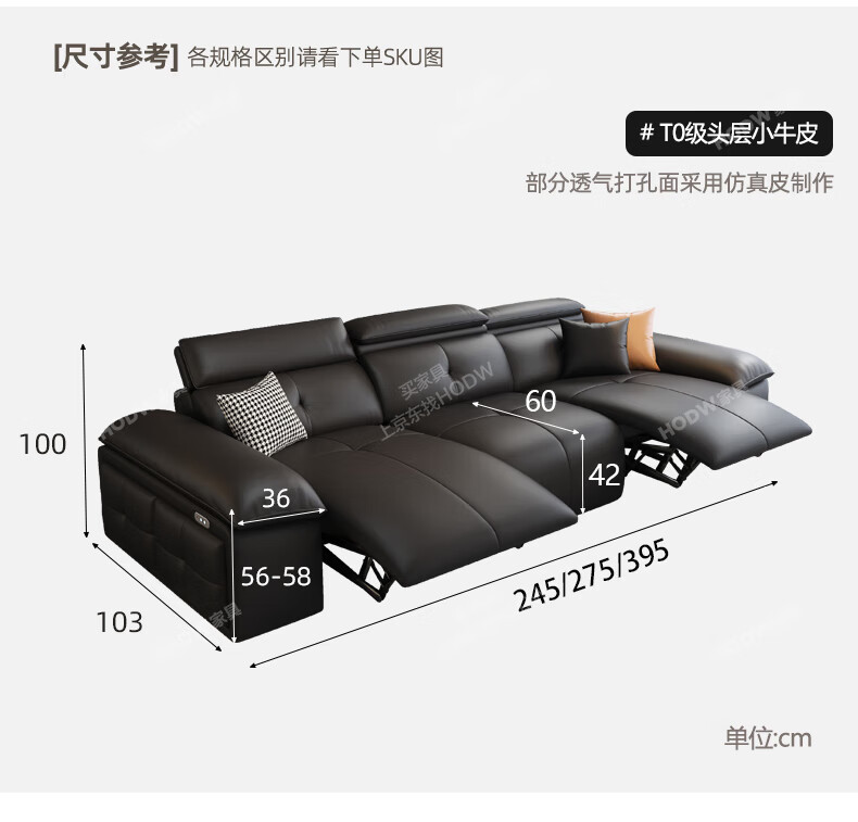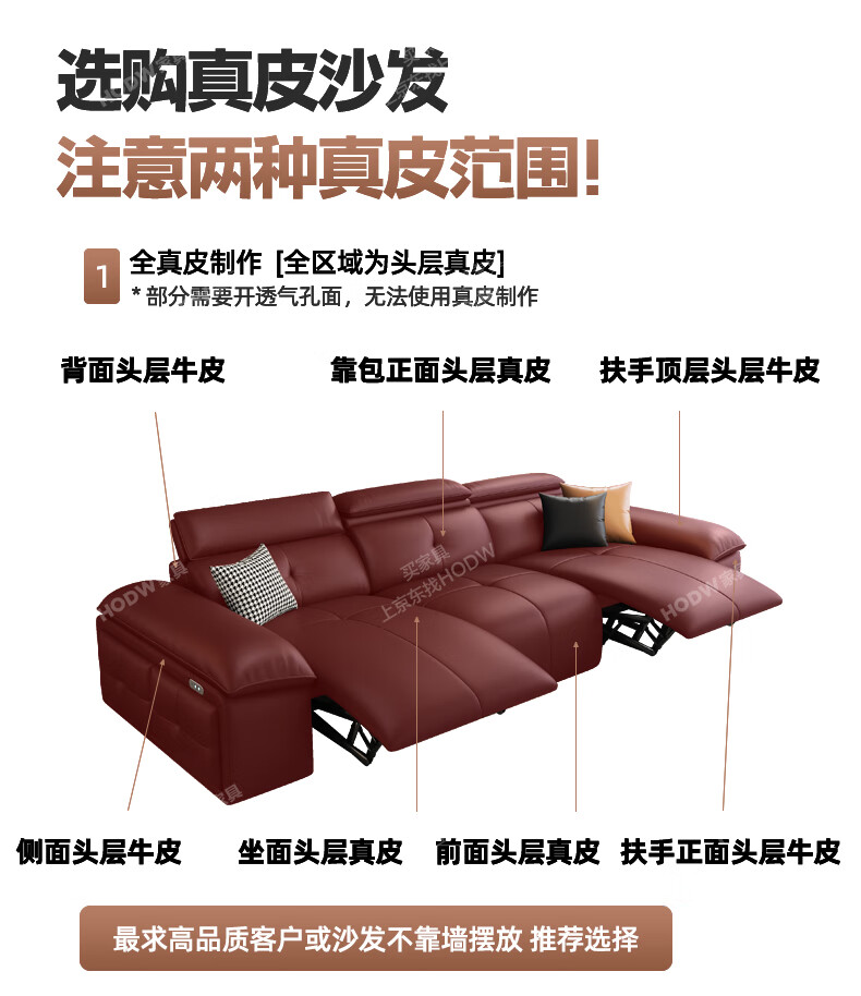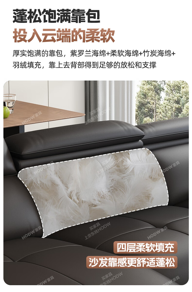 HODW Electric Functional Sofa Zero Wall Lawrence Leather Sofa Living Room Italian Minimalist First Class Sofa 2025 3.15m Four-seater Double Electric Fully Covered 2.8mm First Layer Cowhide