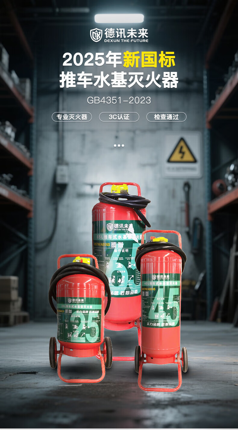 DEXUN THE FUTURE water-based water mist fire extinguisher 2025 new national standard factory commercial warehouse trolley type can extinguish electric fire 25L water-based fire extinguisher