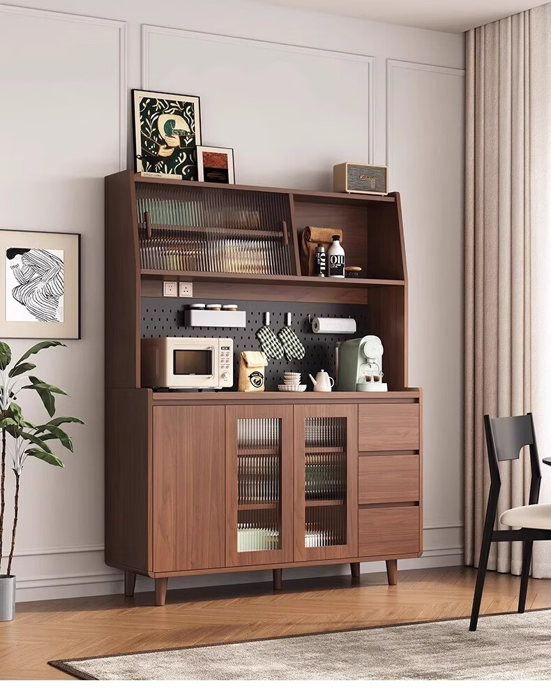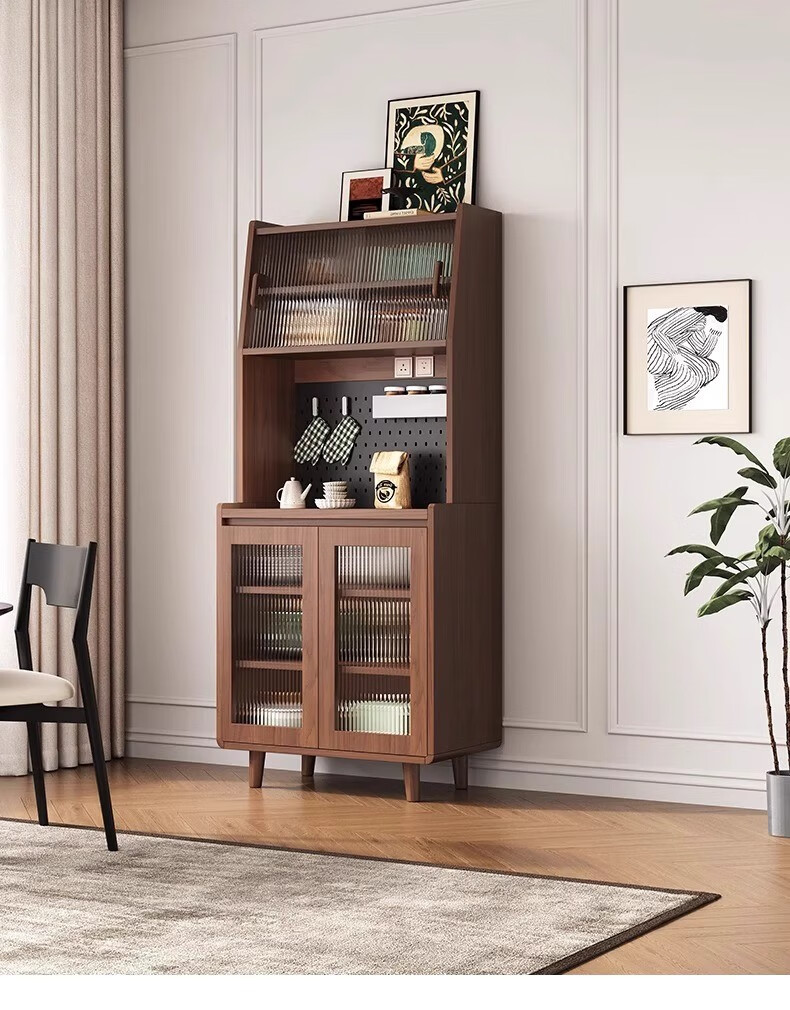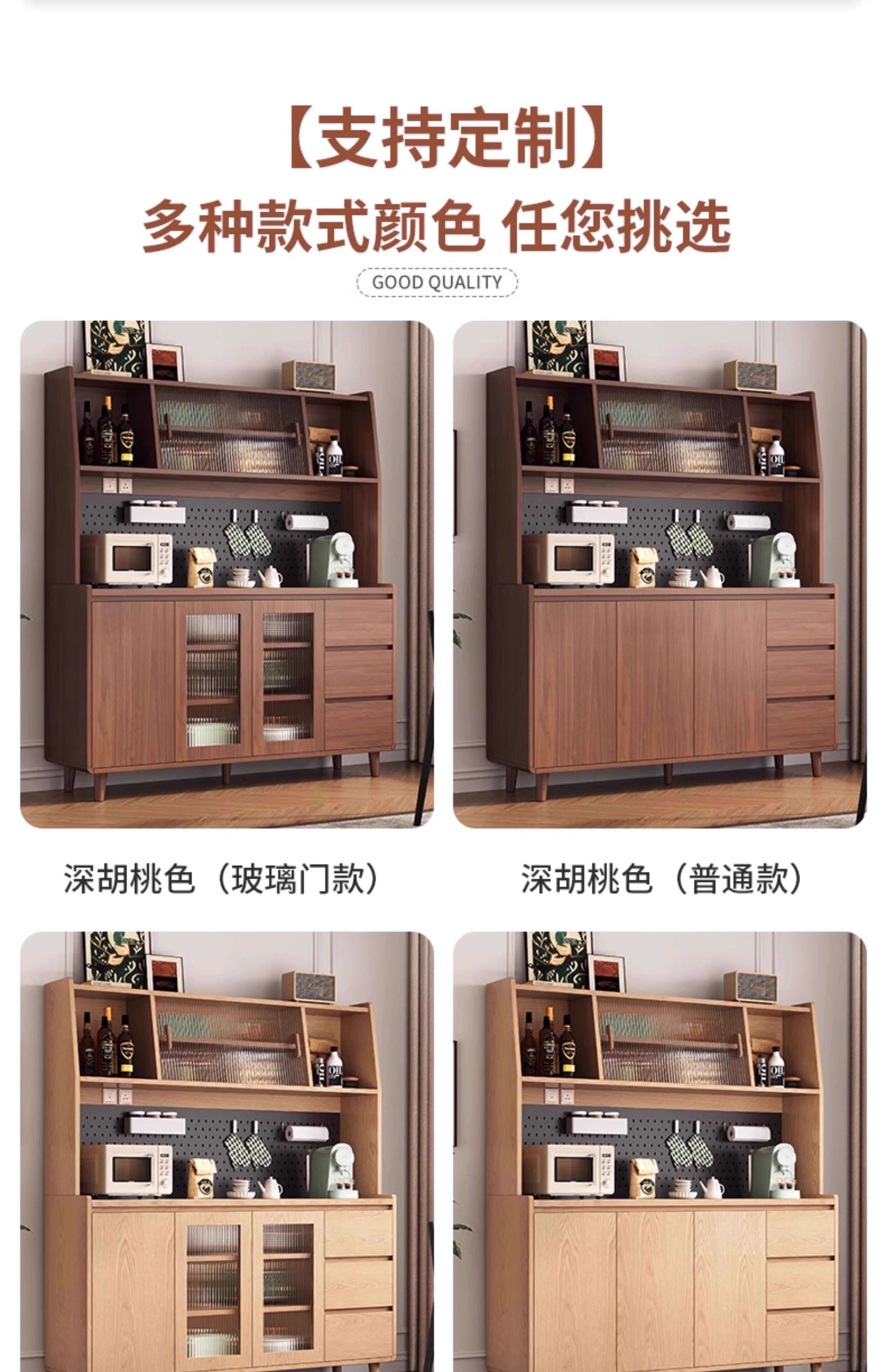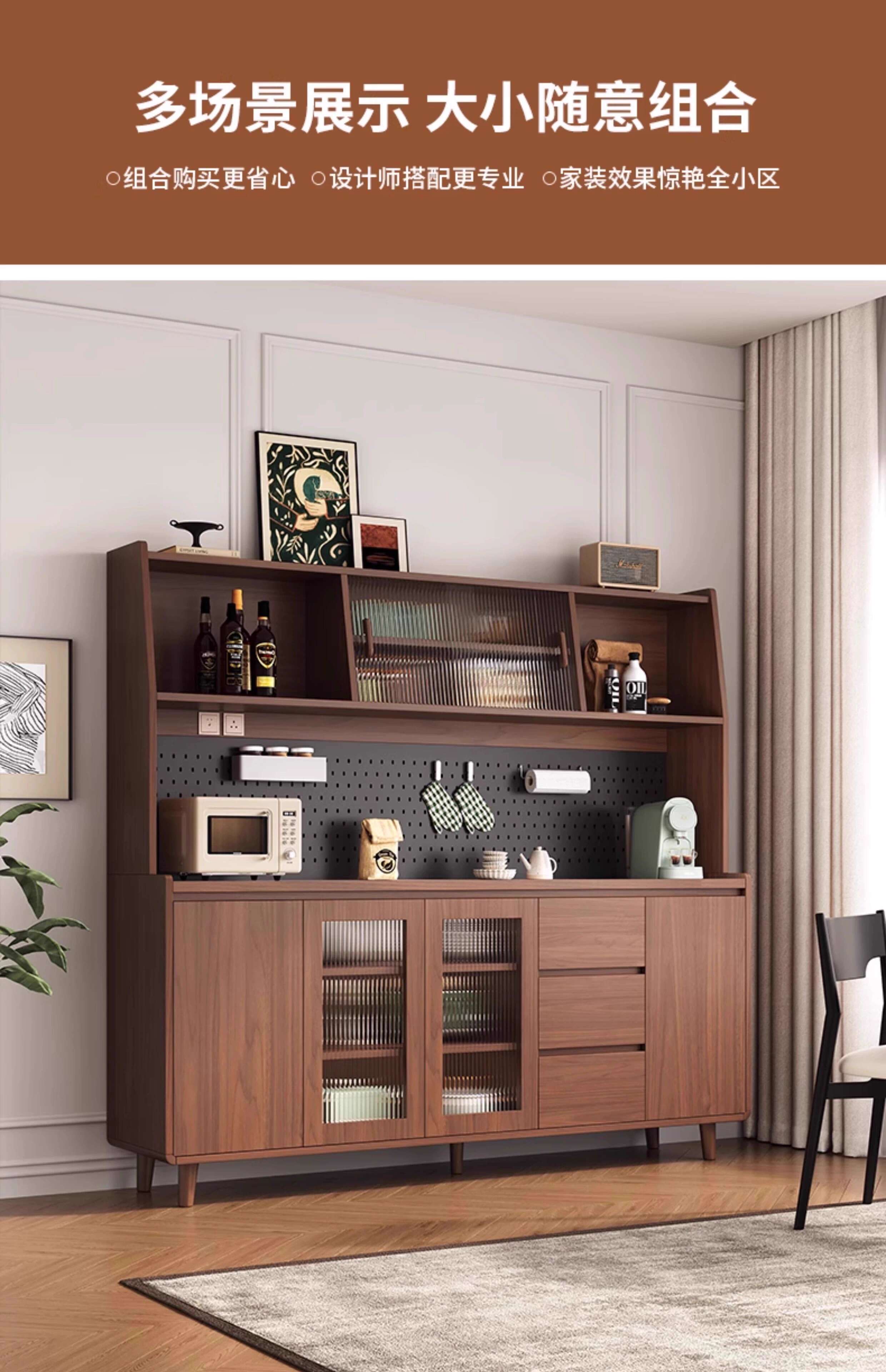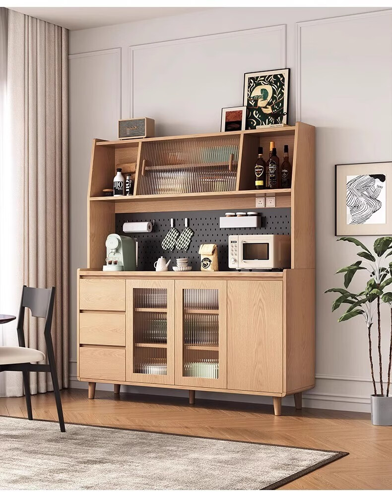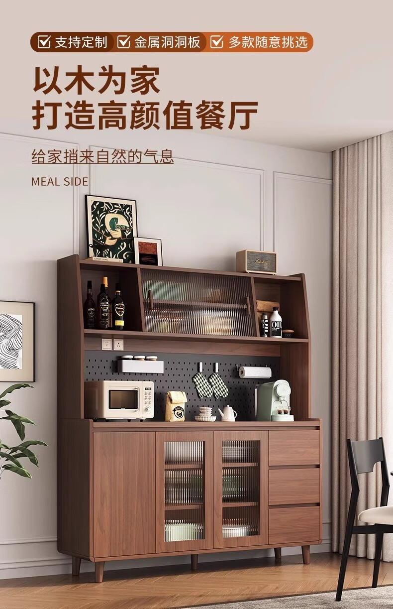 Ling Yuxun solid wood sideboard against the wall integrated storage cabinet double-layer multi-functional wine cabinet storage cabinet new Chinese tea cabinet solid wood ecological board Changhong glass door 80cm double door installation included