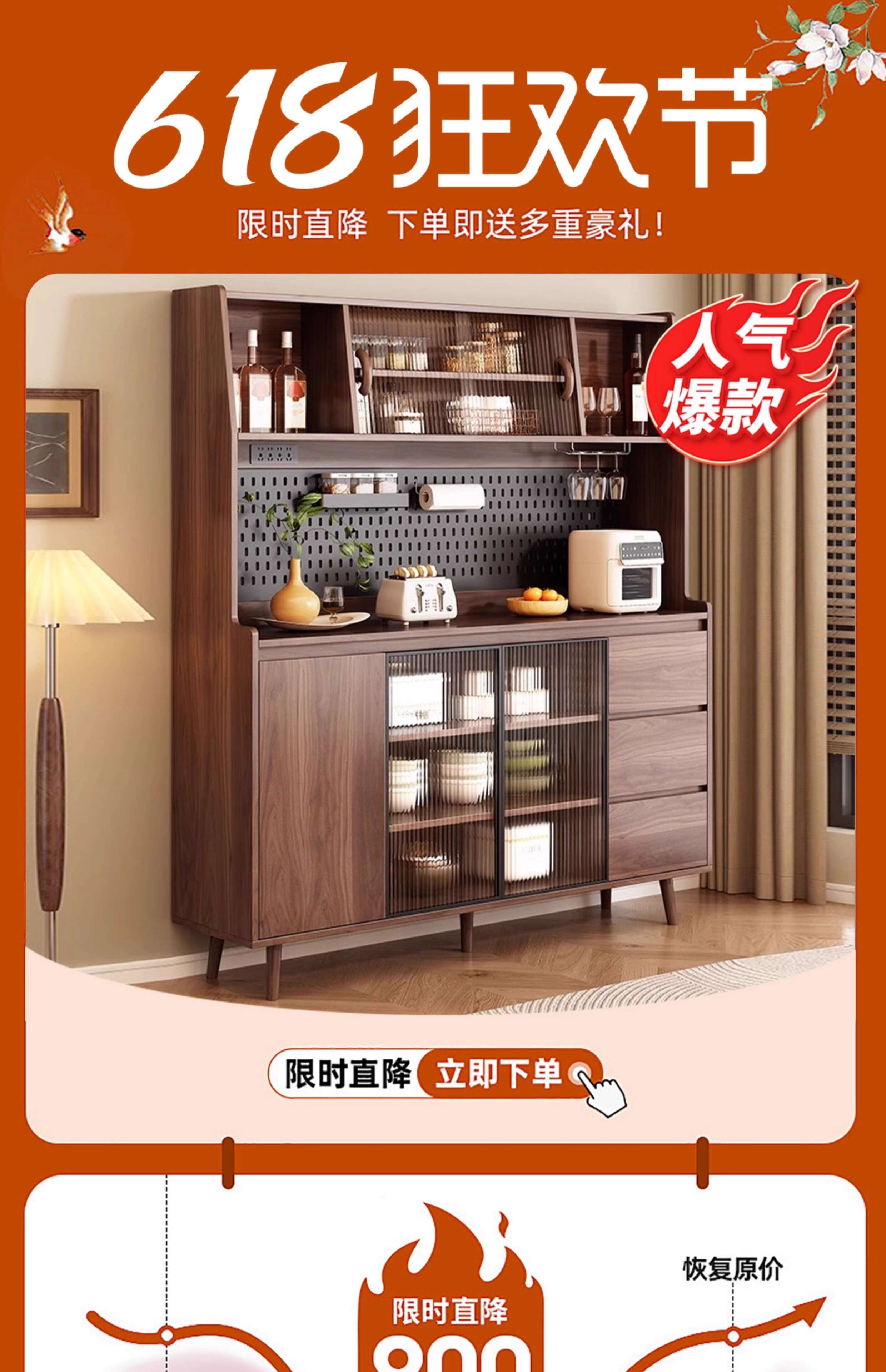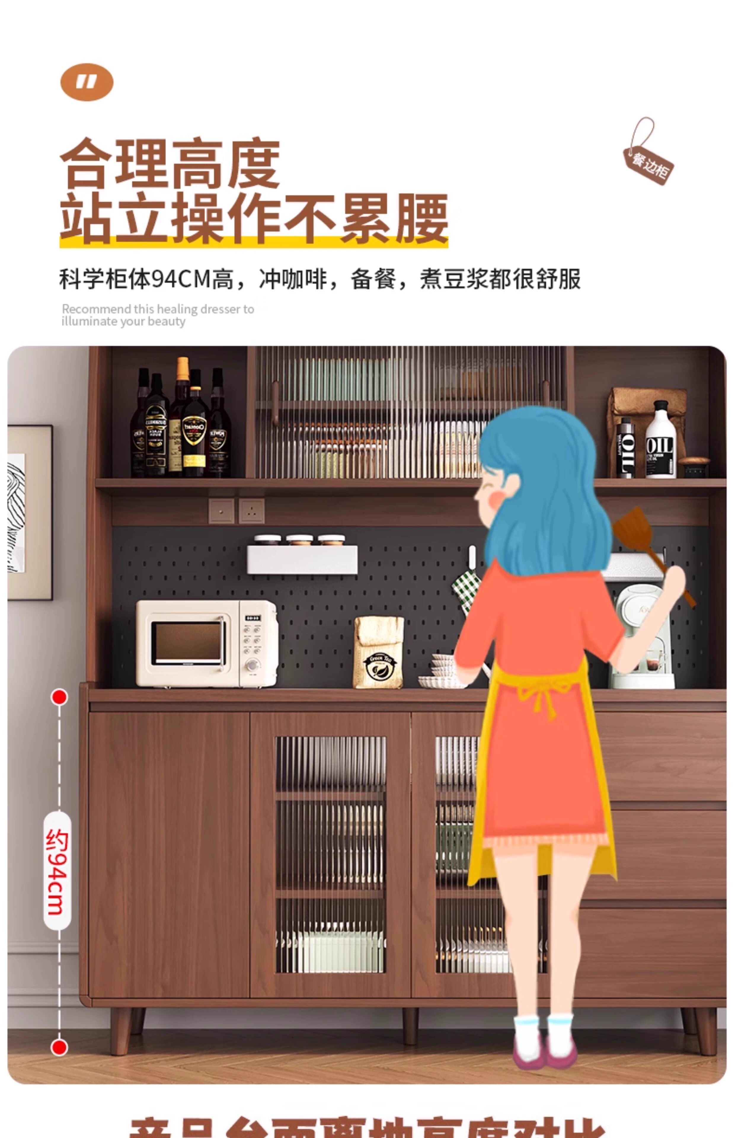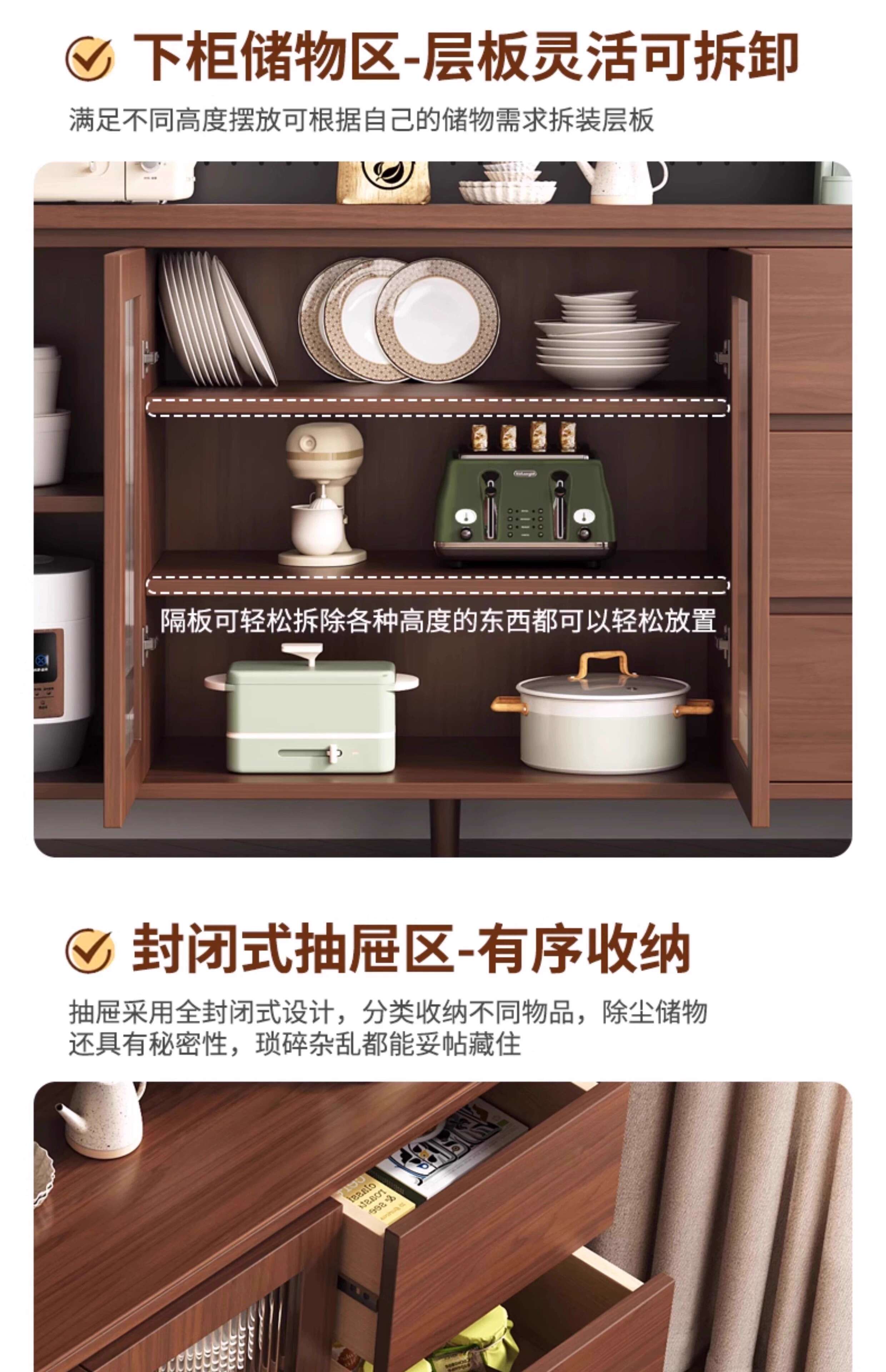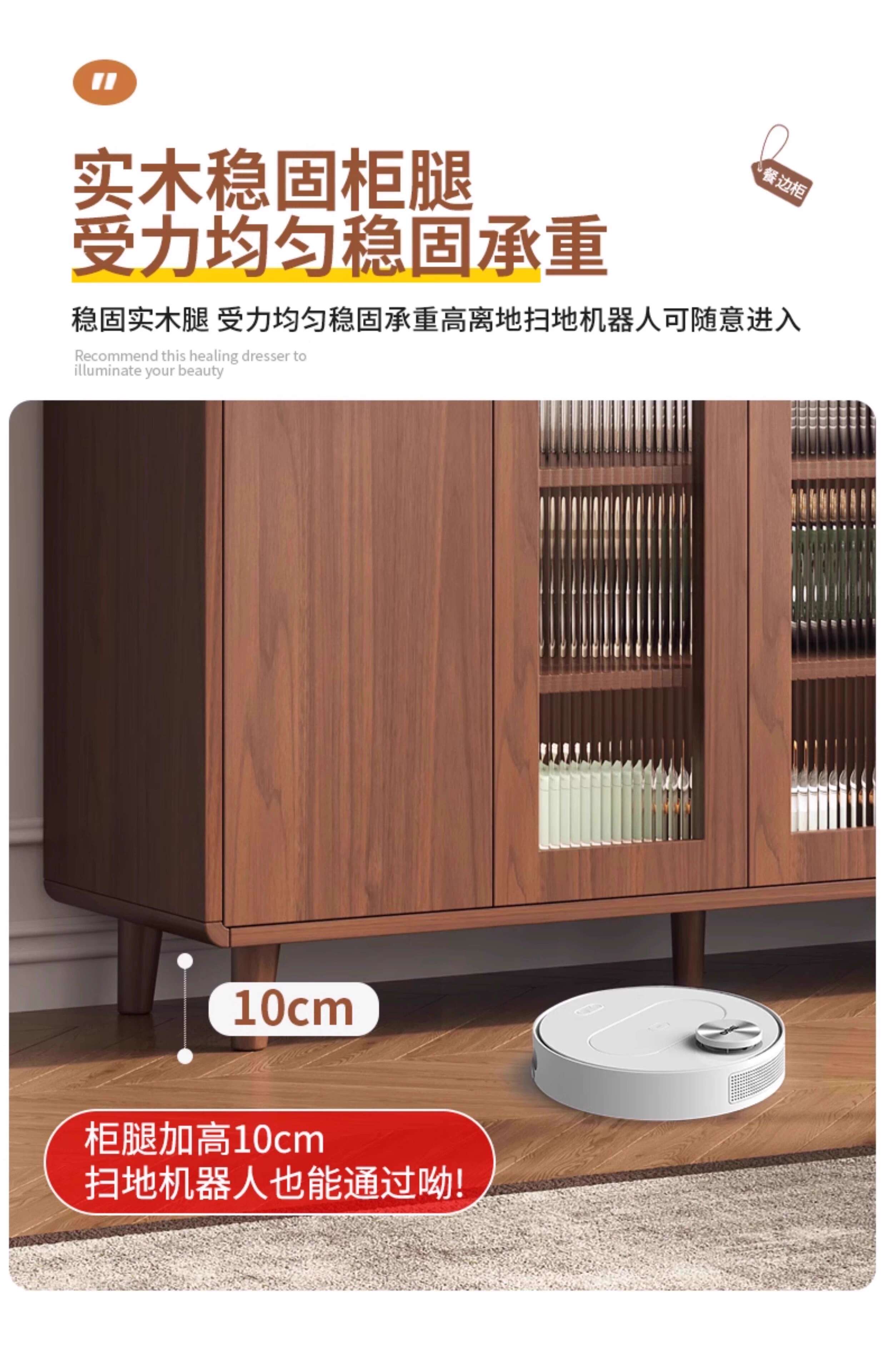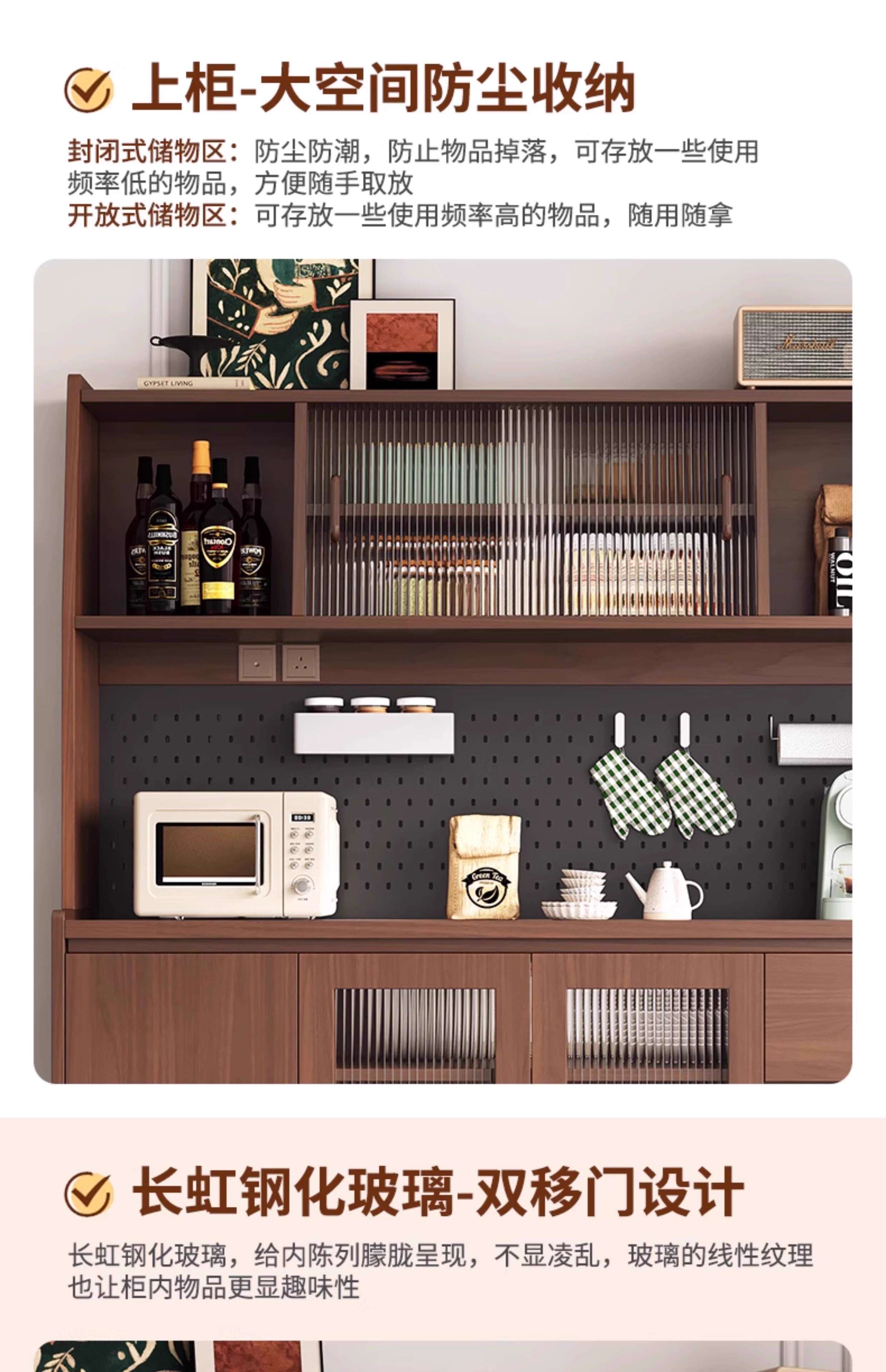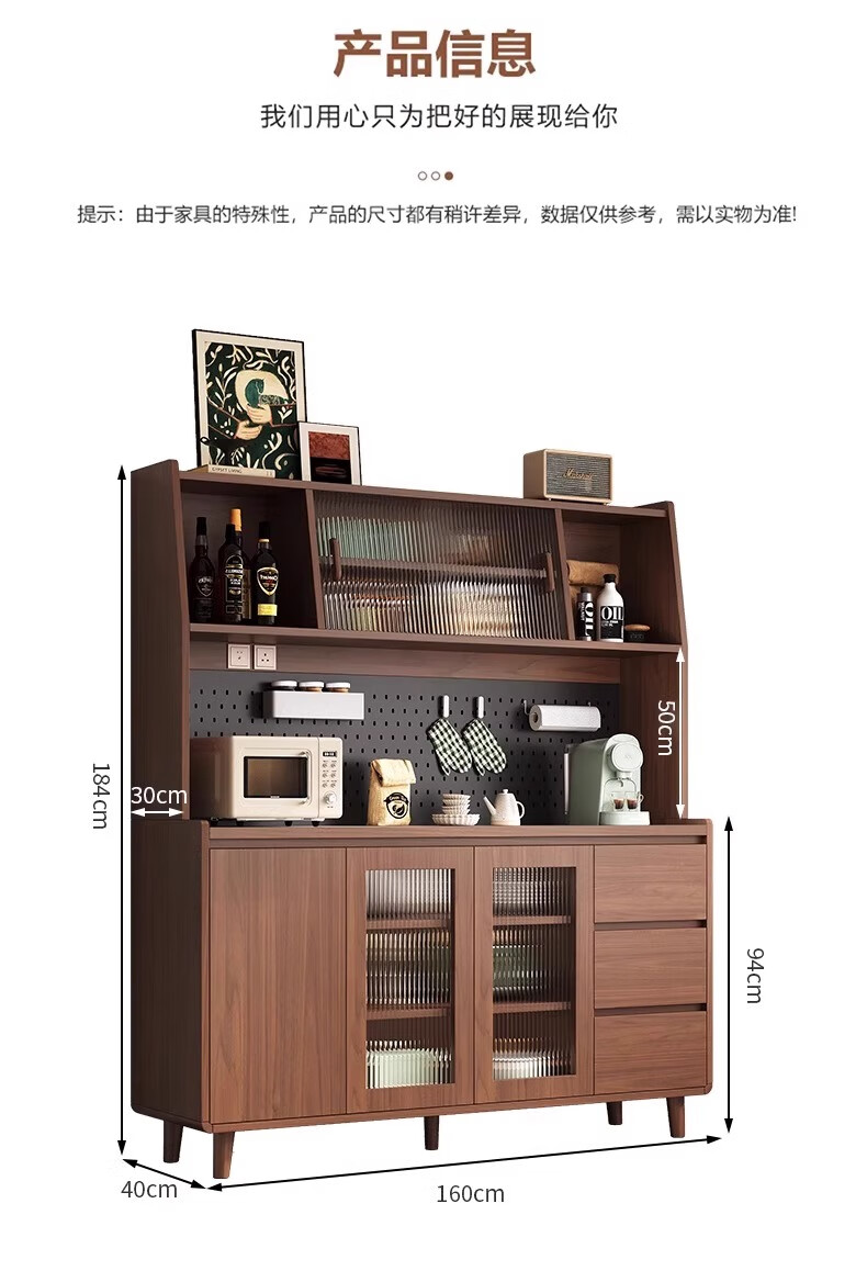 Ling Yuxun solid wood sideboard against the wall integrated storage cabinet double-layer multi-functional wine cabinet storage cabinet new Chinese tea cabinet solid wood ecological board Changhong glass door 80cm double door installation included