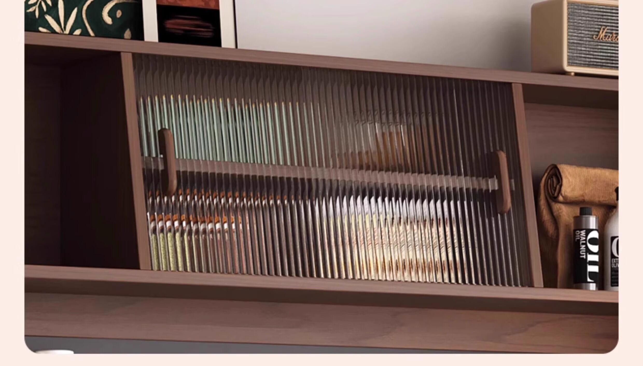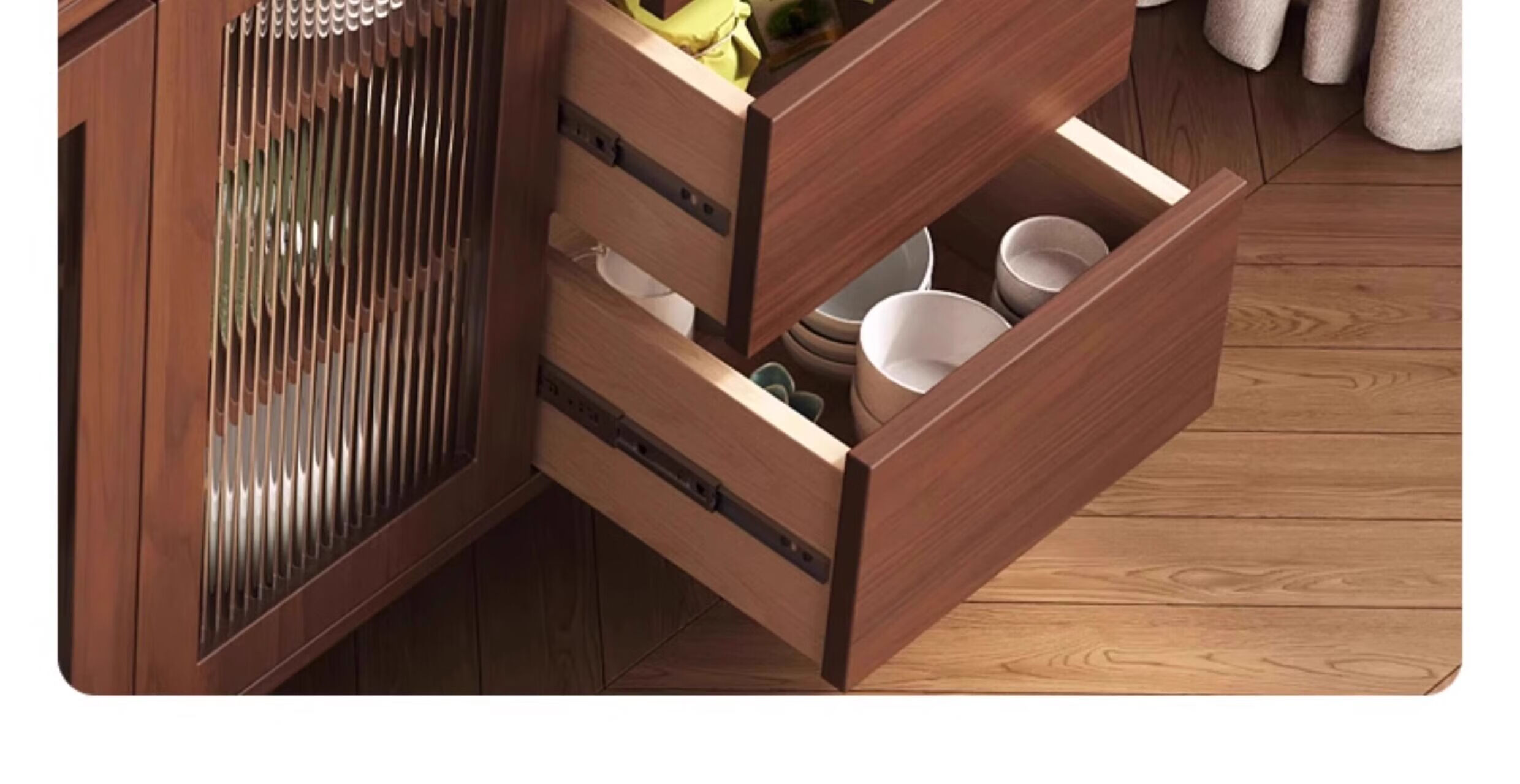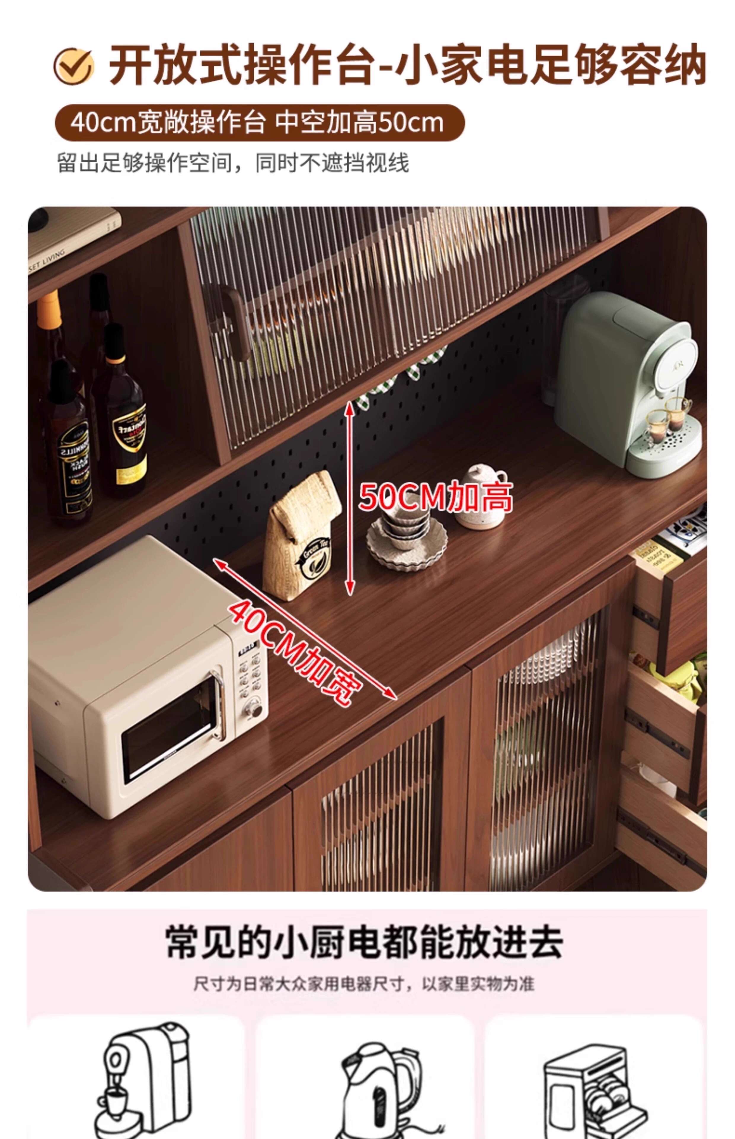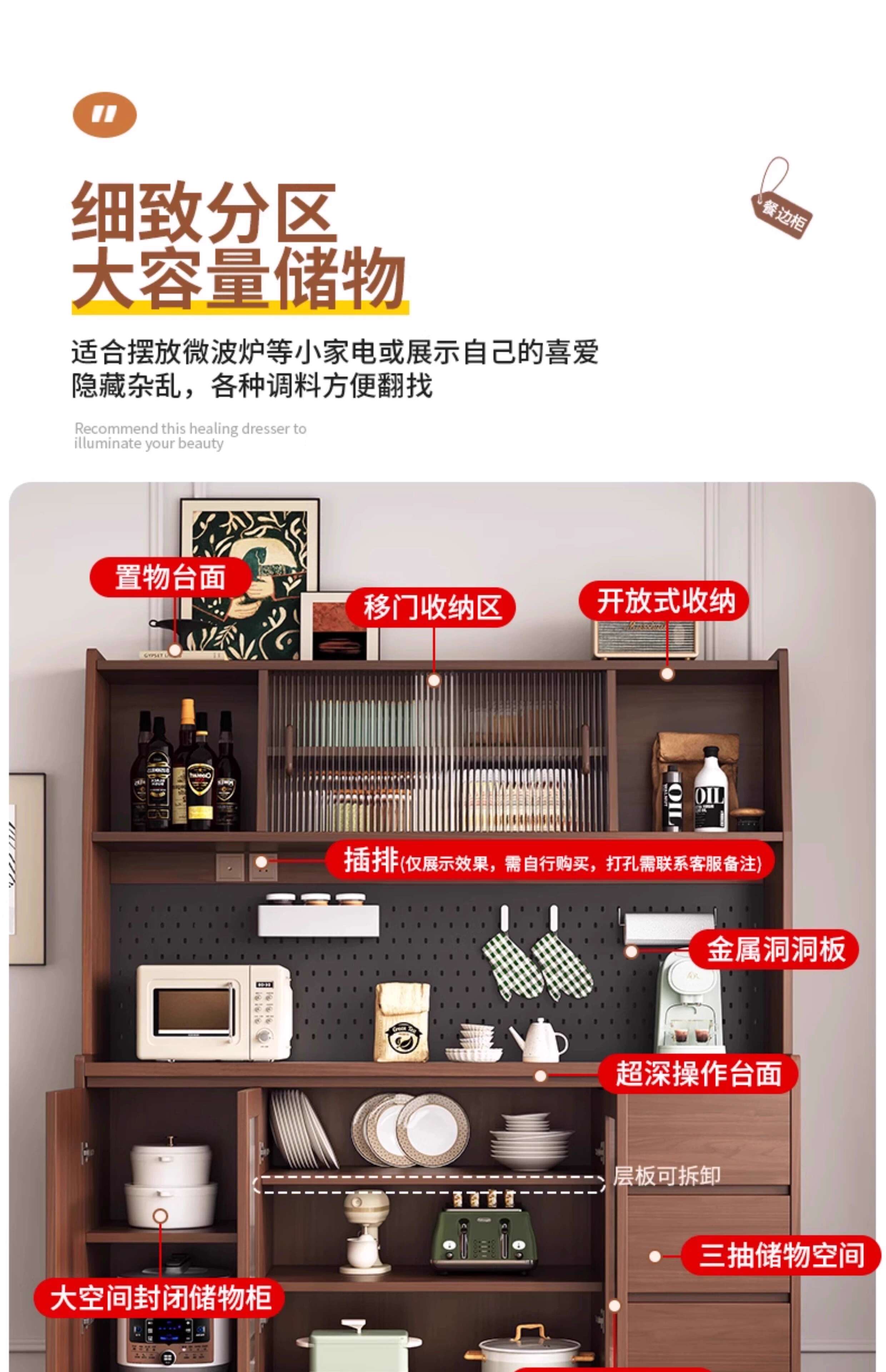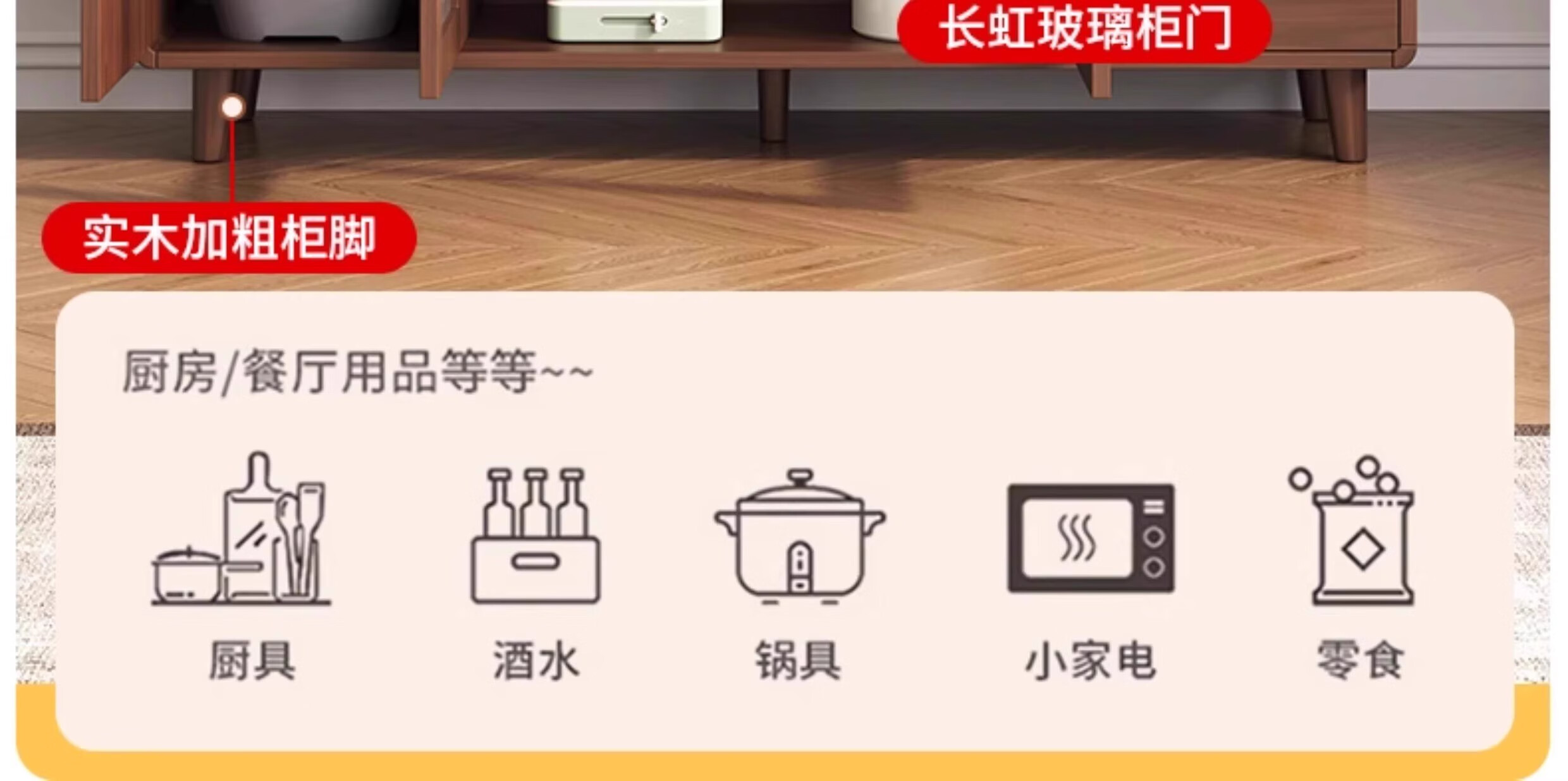 Ling Yuxun solid wood sideboard against the wall integrated storage cabinet double-layer multi-functional wine cabinet storage cabinet new Chinese tea cabinet solid wood ecological board Changhong glass door 80cm double door installation included
