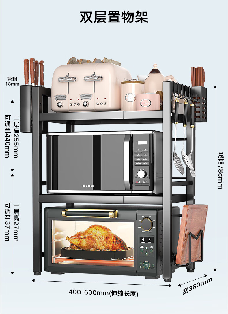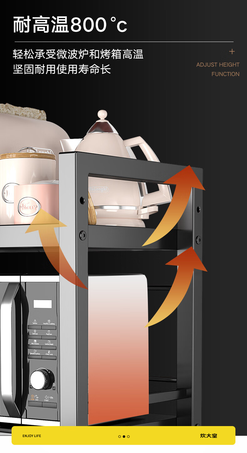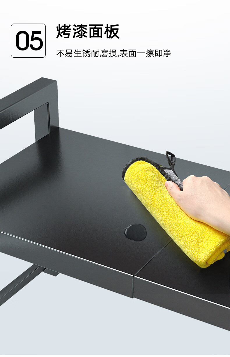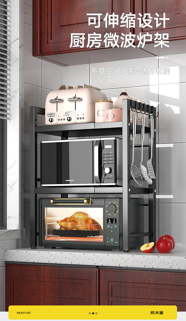 Chuidahuang thickened countertop kitchen microwave oven storage rack retractable desktop multi-layer rice cooker oven household storage artifact A4 telescopic model black double layer fully equipped
