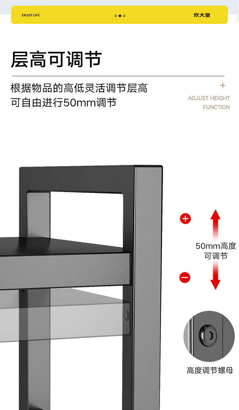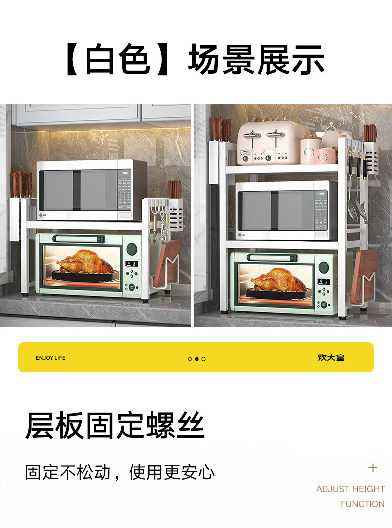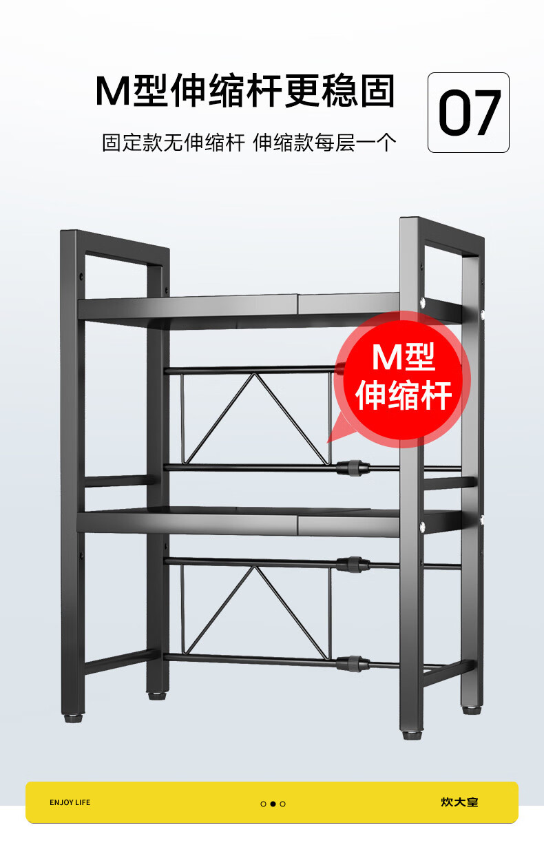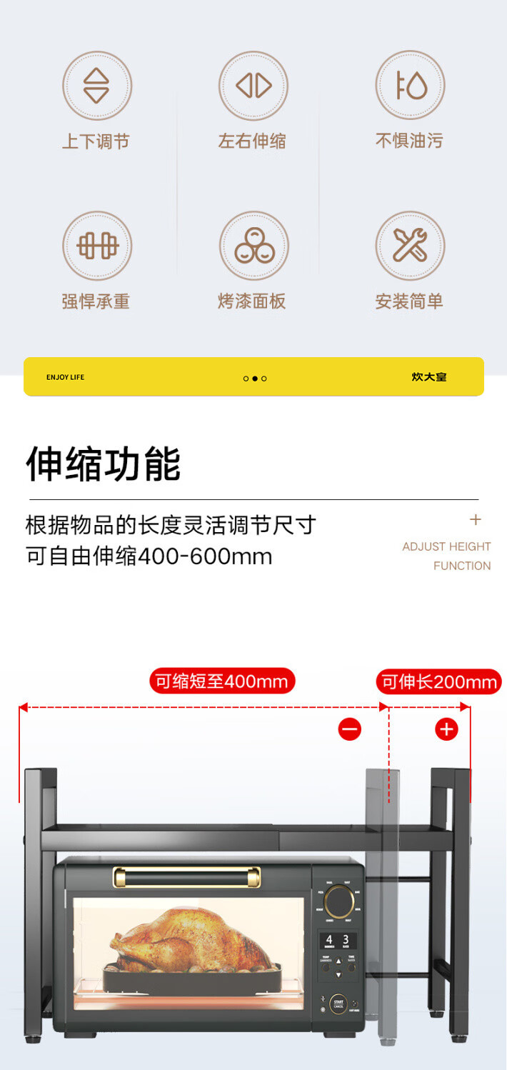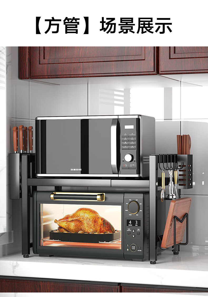 Chuidahuang thickened countertop kitchen microwave oven storage rack retractable desktop multi-layer rice cooker oven household storage artifact A4 telescopic model black double layer fully equipped