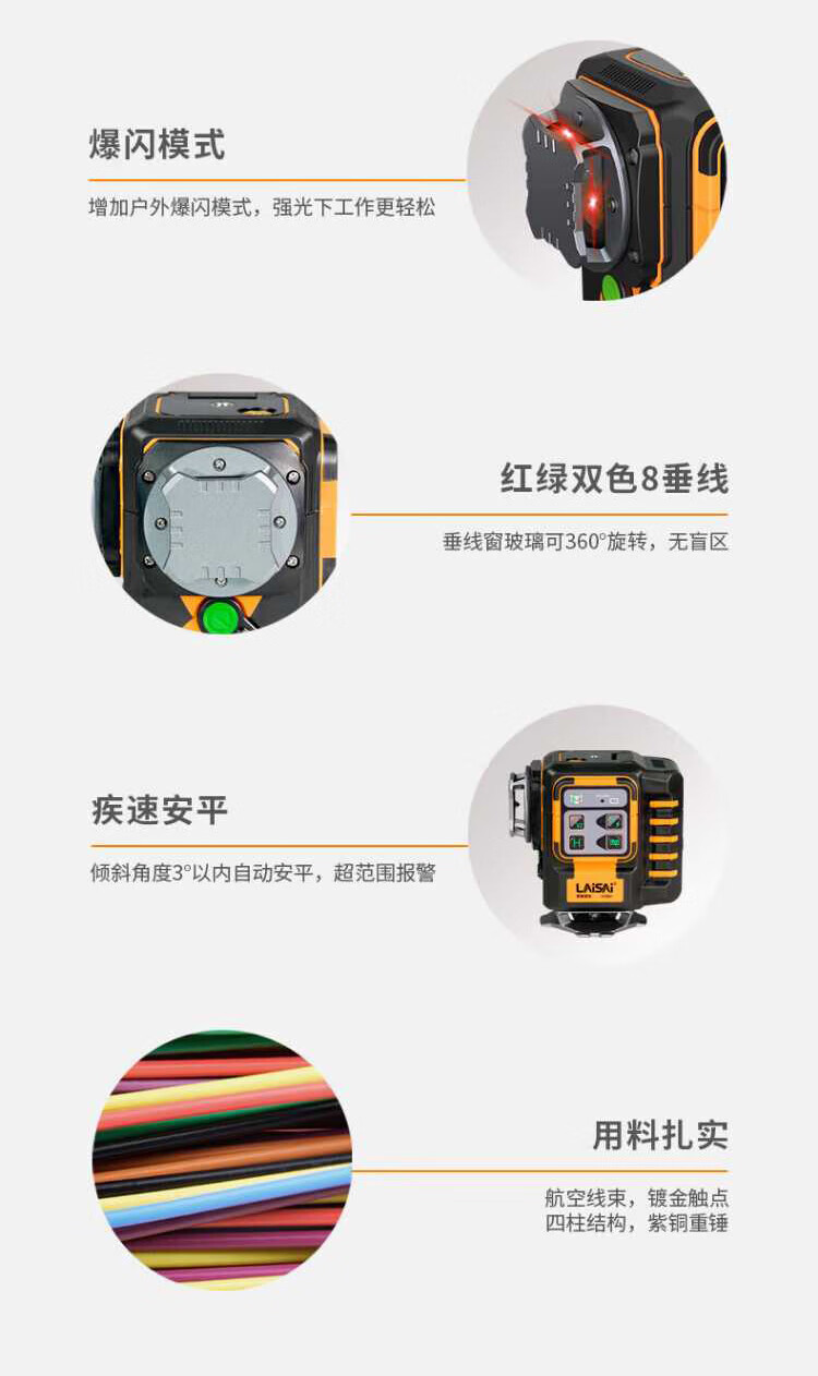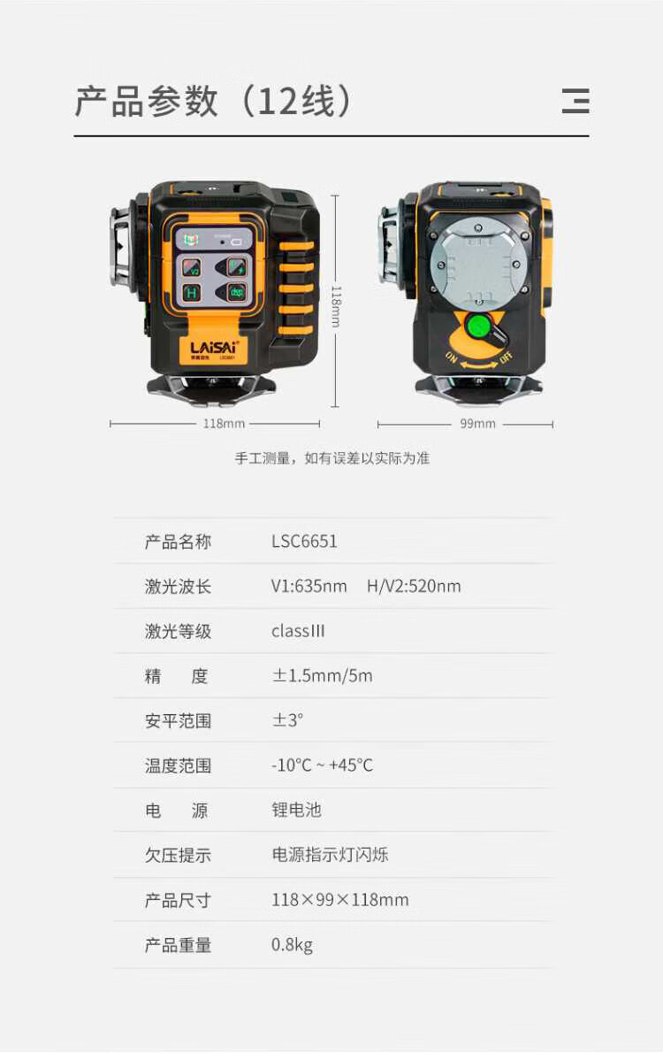 Laser laser infrared level building measurement tool red and green two-color 12-wire LSC6651 vertical wall-mounted floor meter two-color 12-wire standard