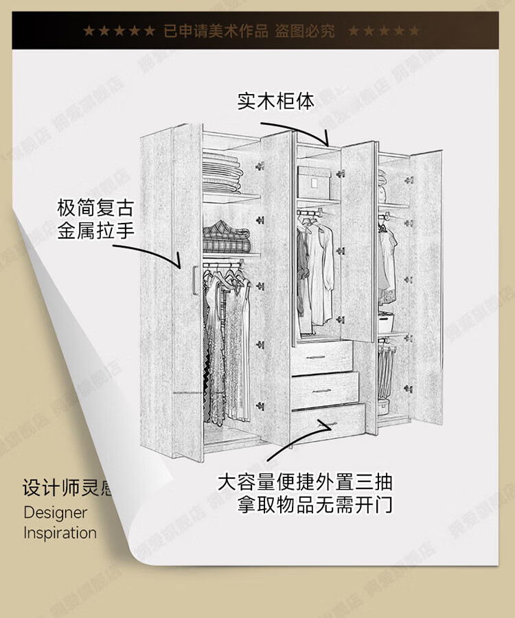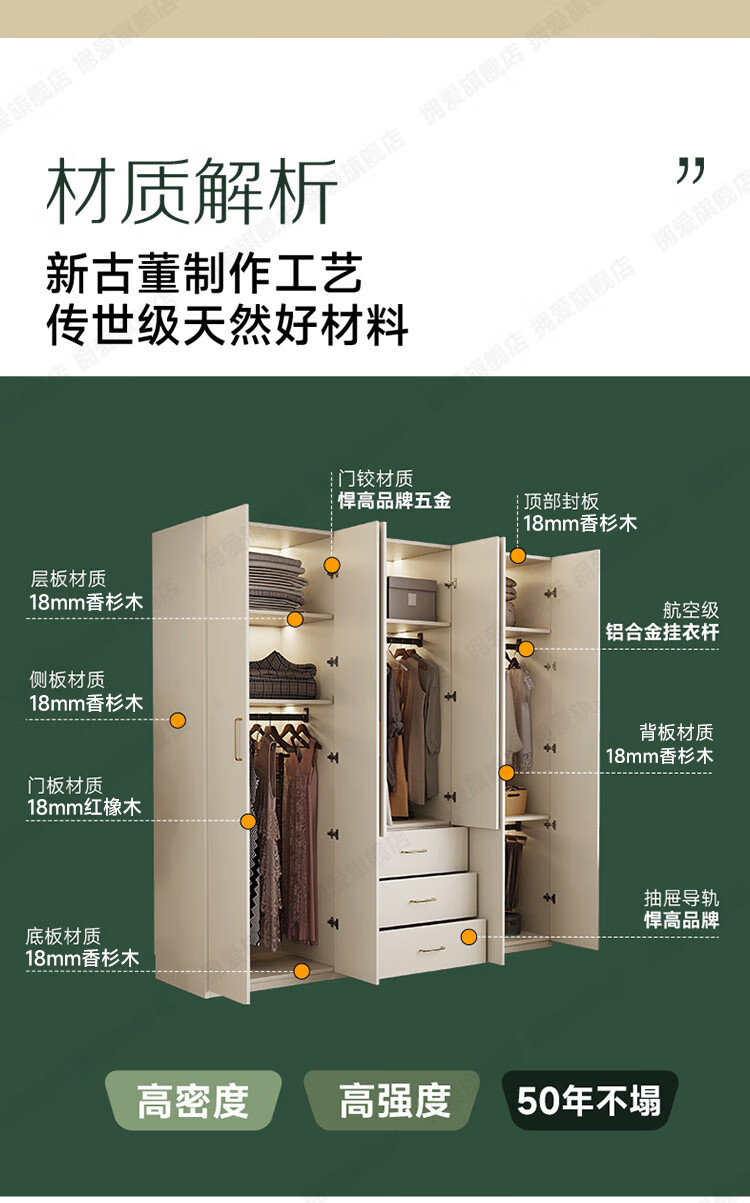 Love Maternal and Infant Grade Solid Wood Wardrobe Customized Height 2.5~3 Meters Home Bedroom Cream Style Four-Six-Door Storage Wardrobe 1.6m wide