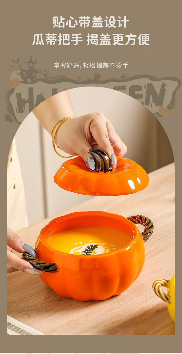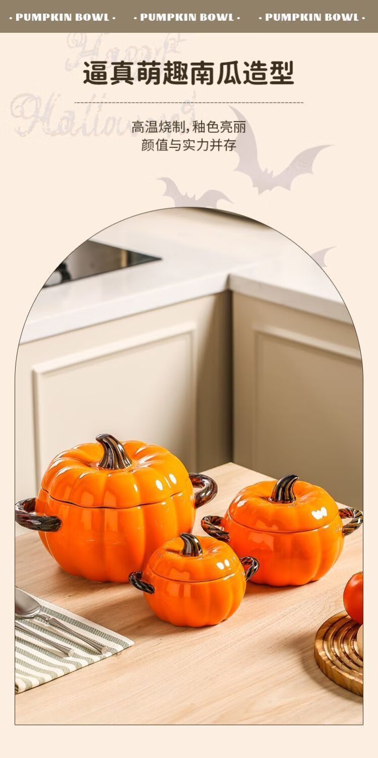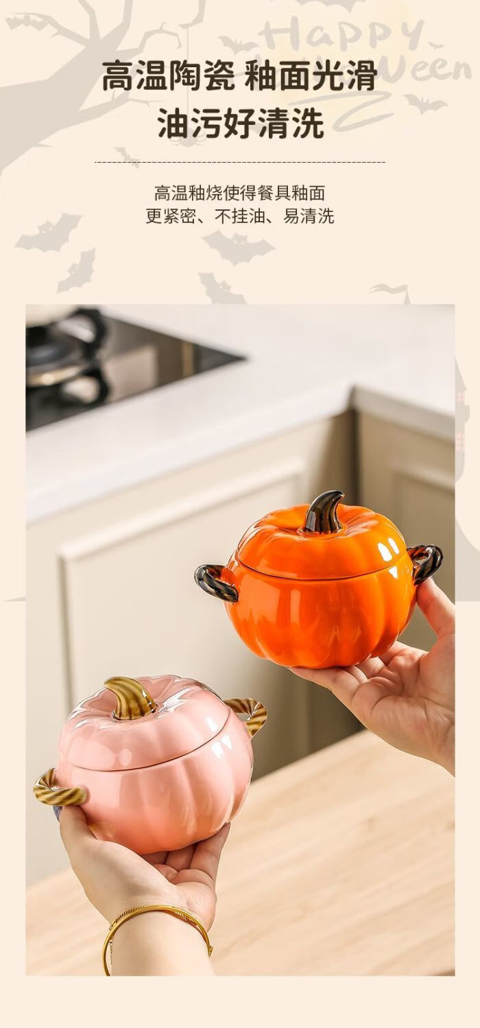 MZXM imported quality pumpkin from Japan, cute ceramic pumpkin bowl with lid, multifunctional kitchen soup pot, household high-value sand, fun pumpkin bowl, pink - small size