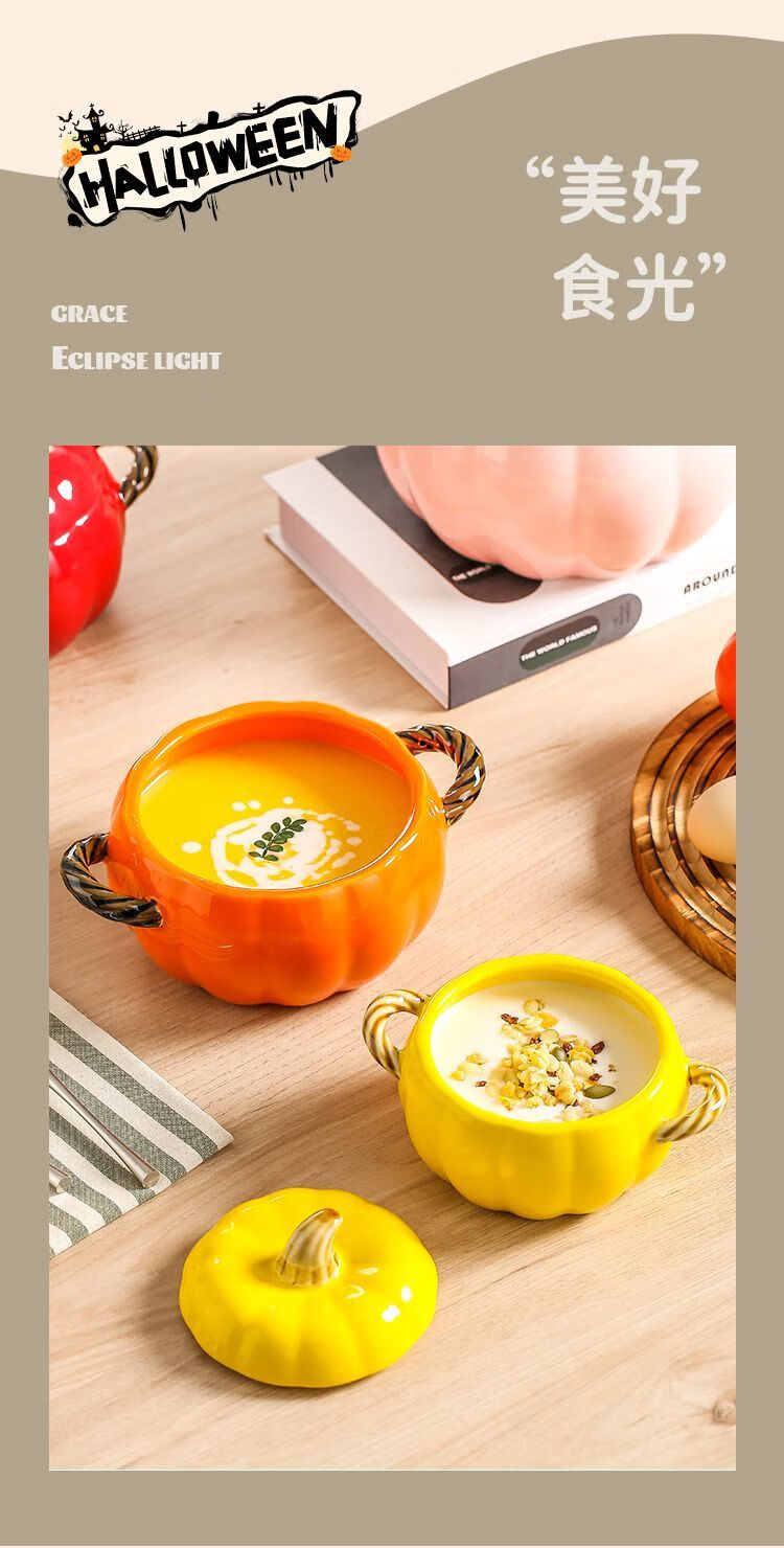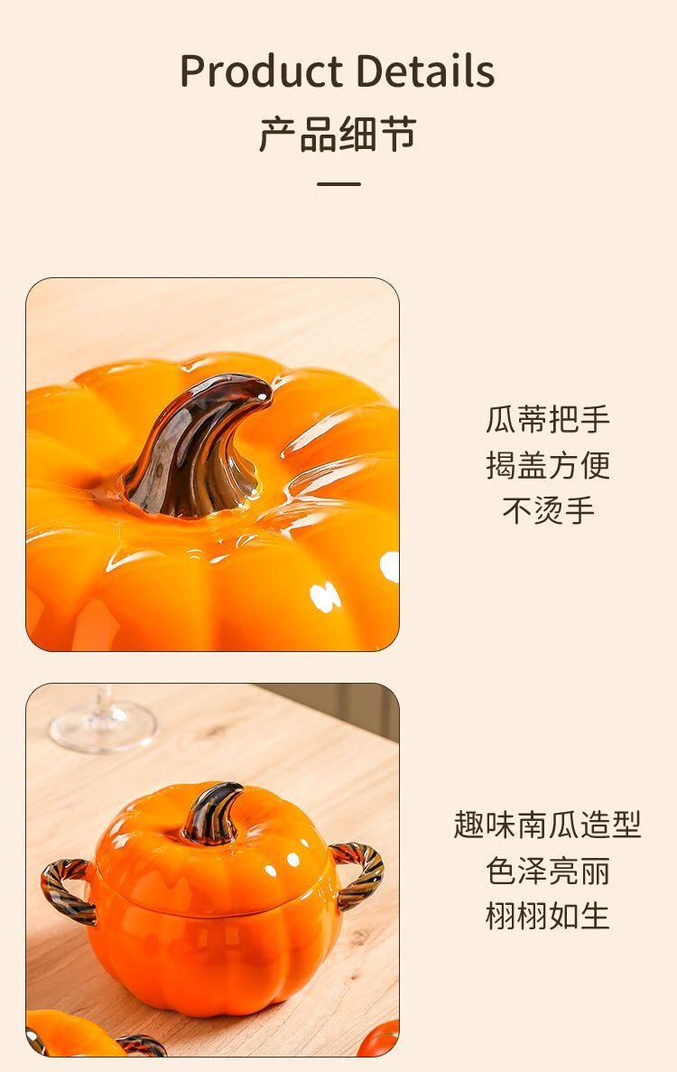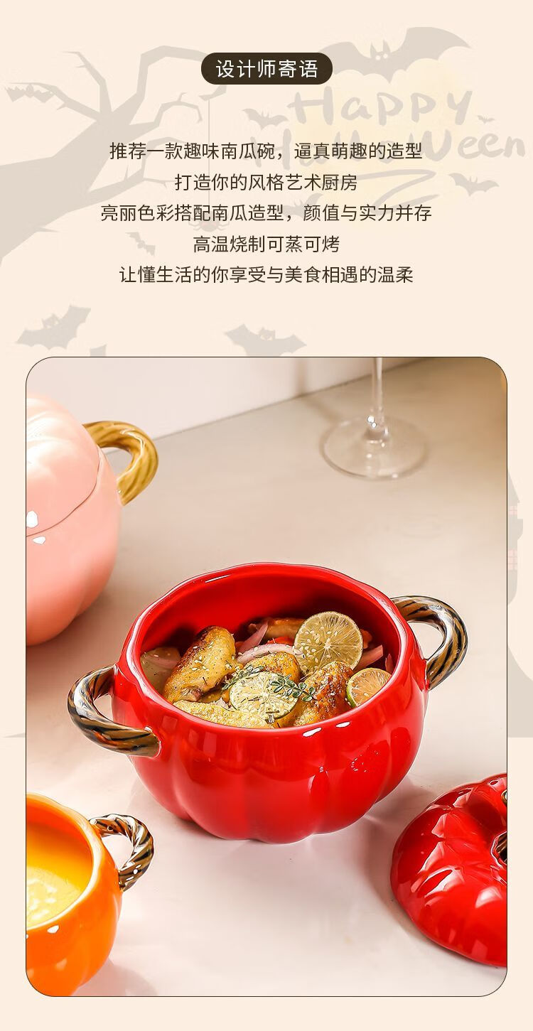 MZXM imported quality pumpkin from Japan, cute ceramic pumpkin bowl with lid, multifunctional kitchen soup pot, household high-value sand, fun pumpkin bowl, pink - small size