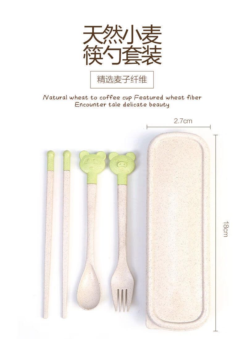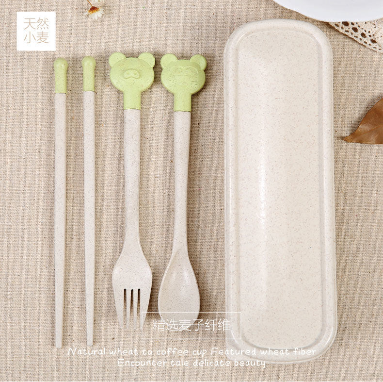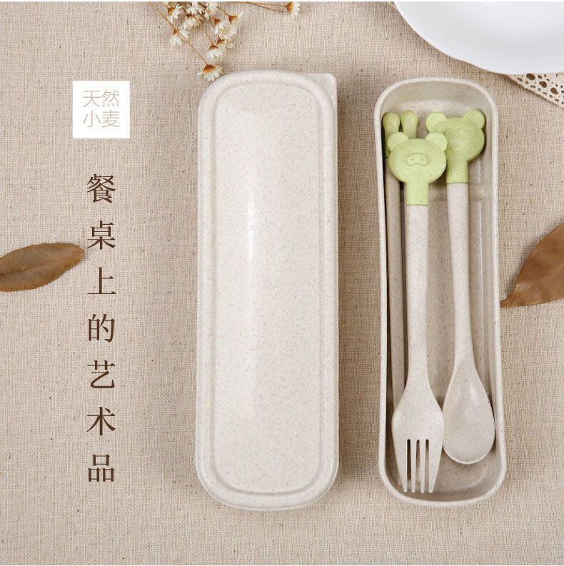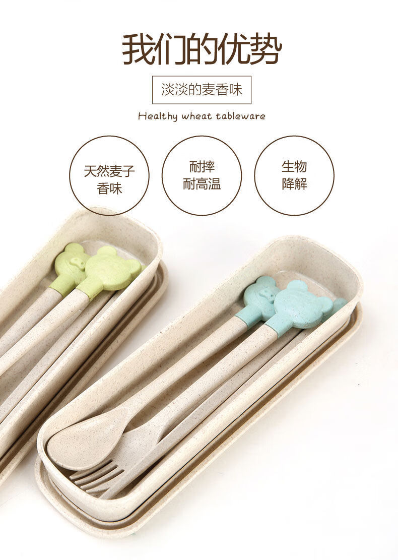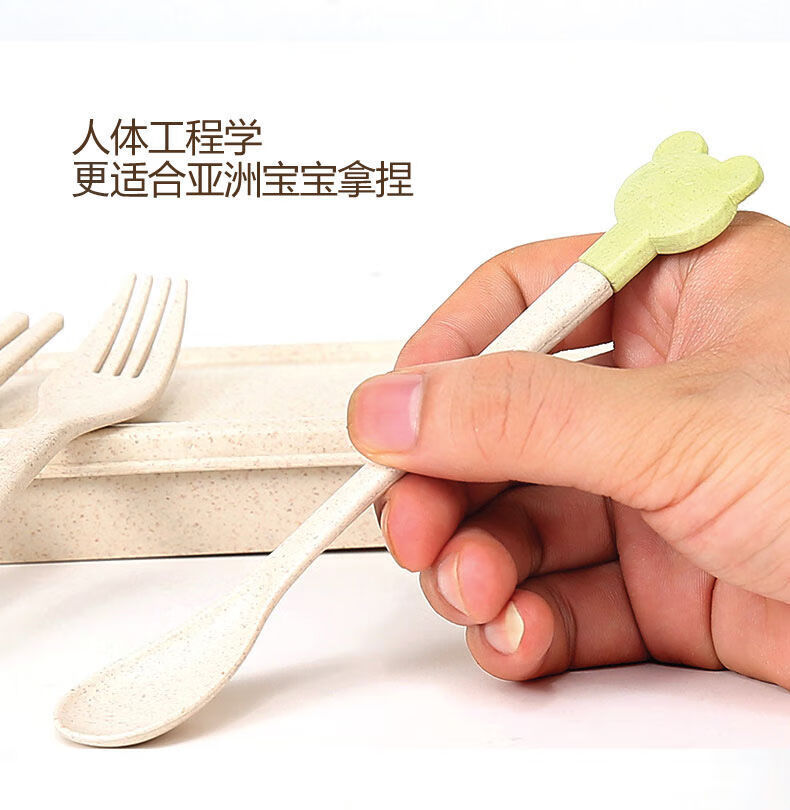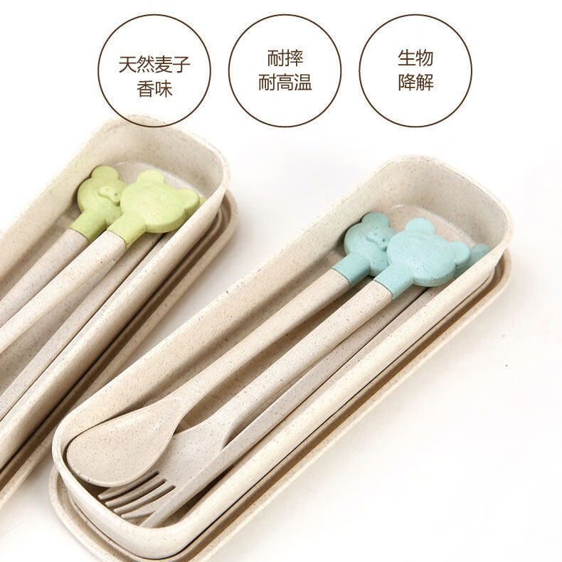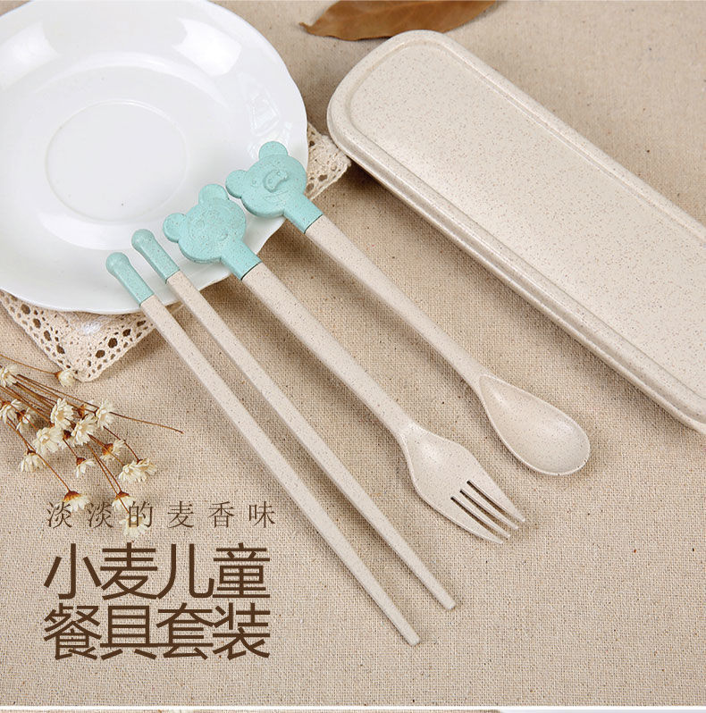 MZXM Japan imported quality rice husk wheat straw children's portable tableware anti-fall three-piece set cute fork spoon chopsticks blue