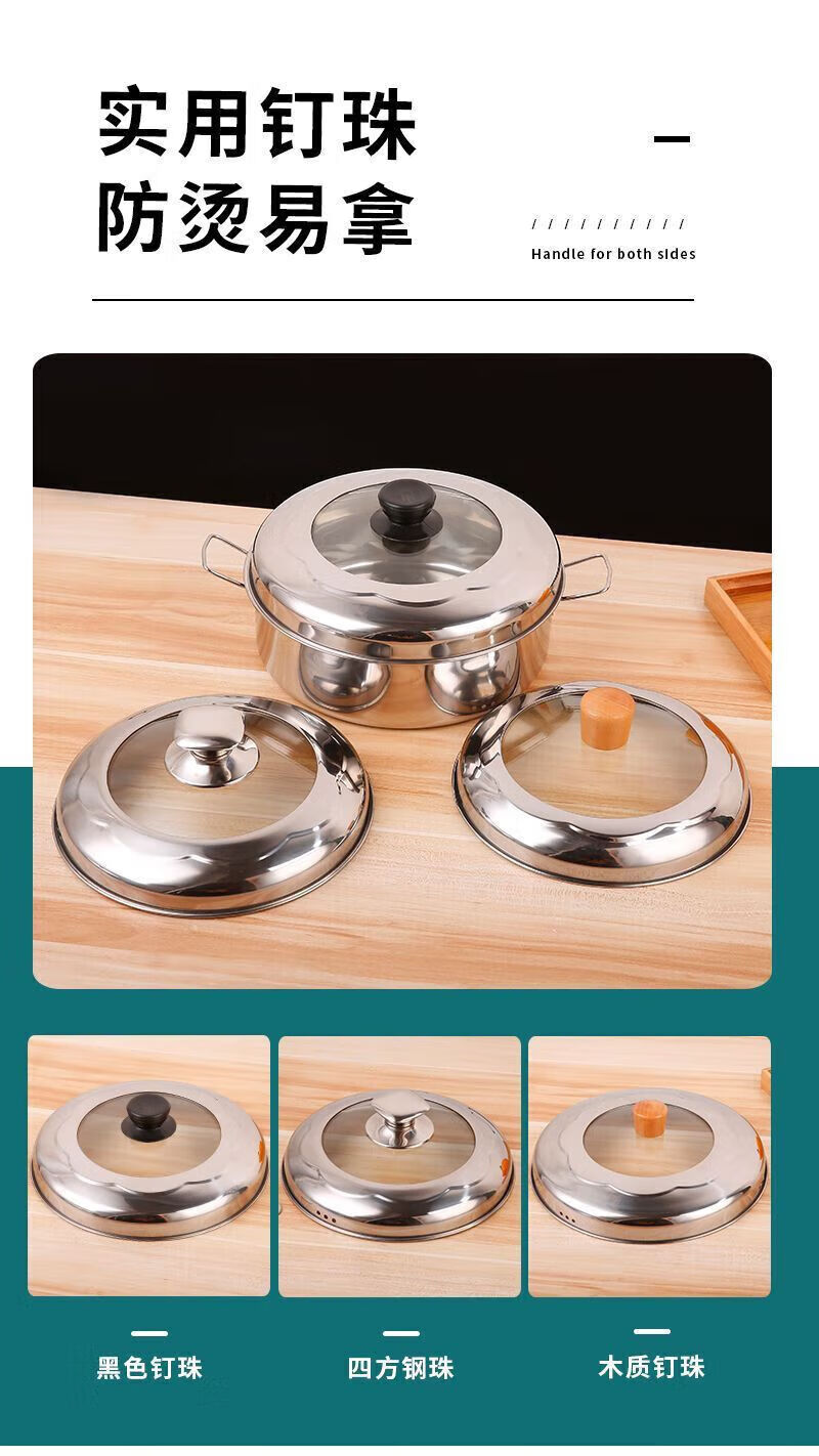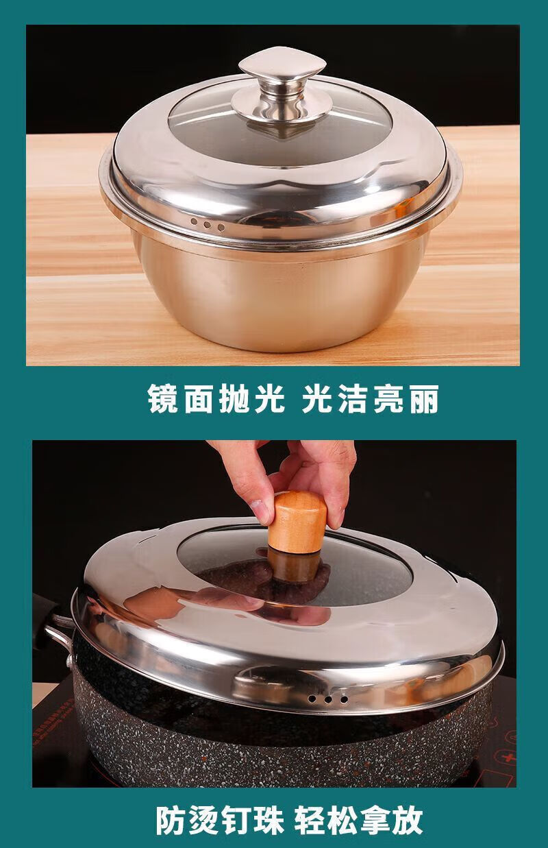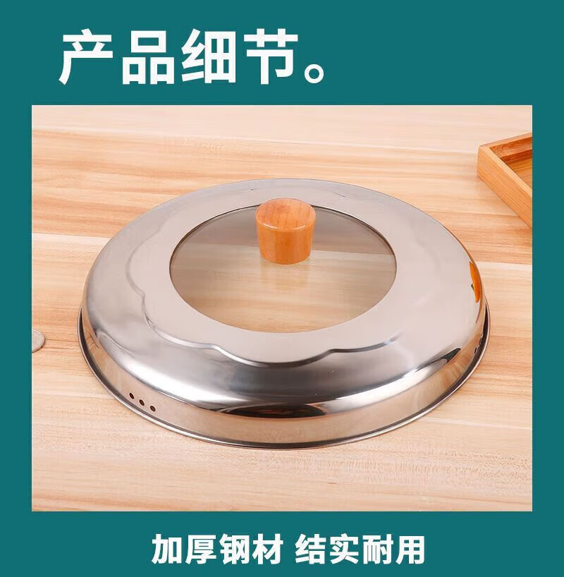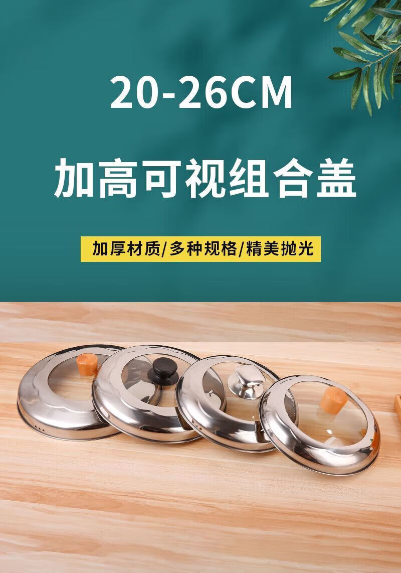 Steamer lid high lid household stainless steel glass combination lid heightened arch lid soup pot lid steel square ball heightening combination lid 22cm