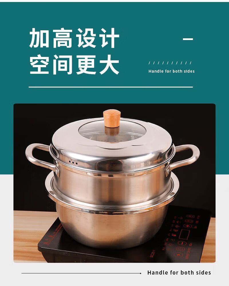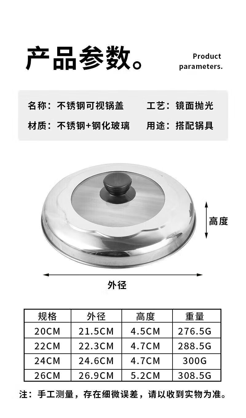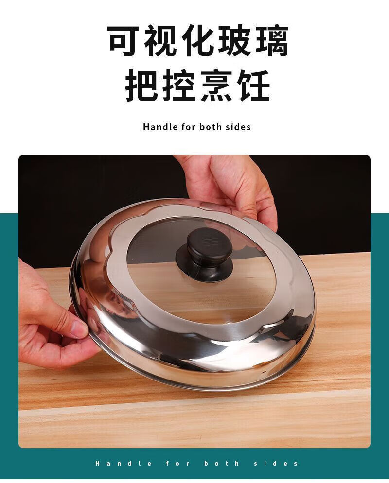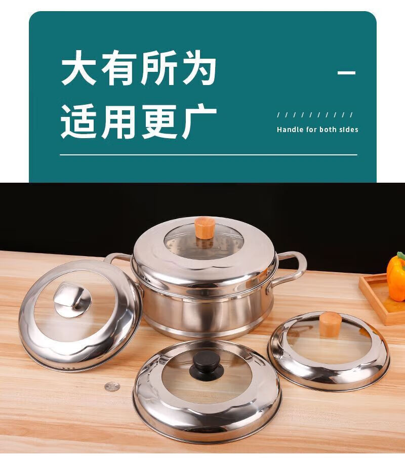 Steamer lid high lid household stainless steel glass combination lid heightened arch lid soup pot lid steel square ball heightening combination lid 22cm