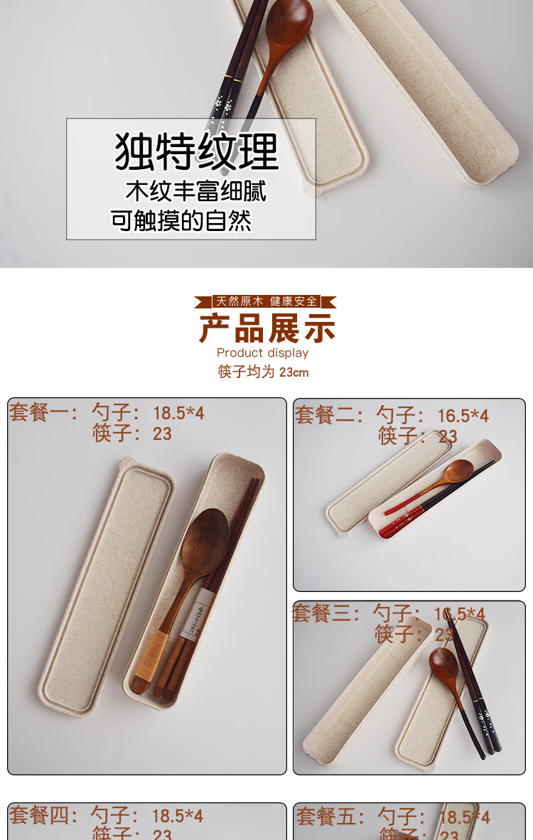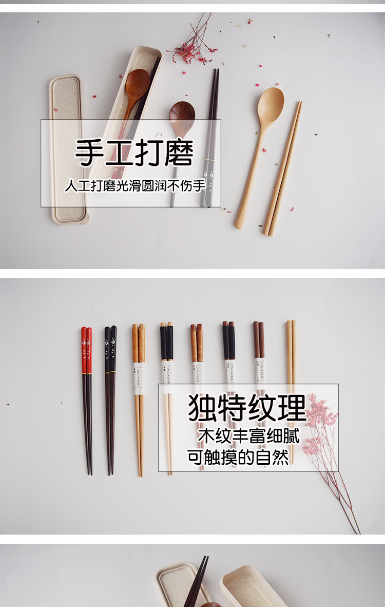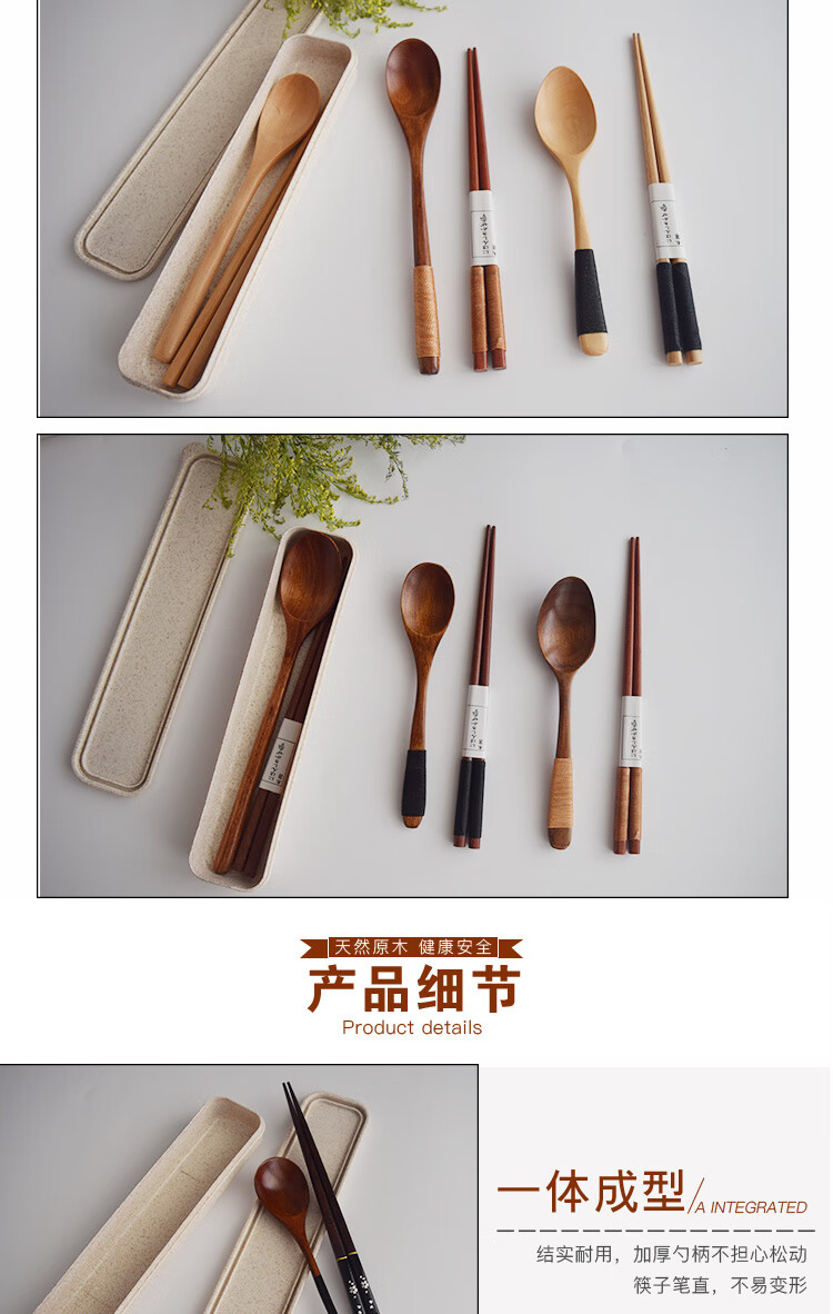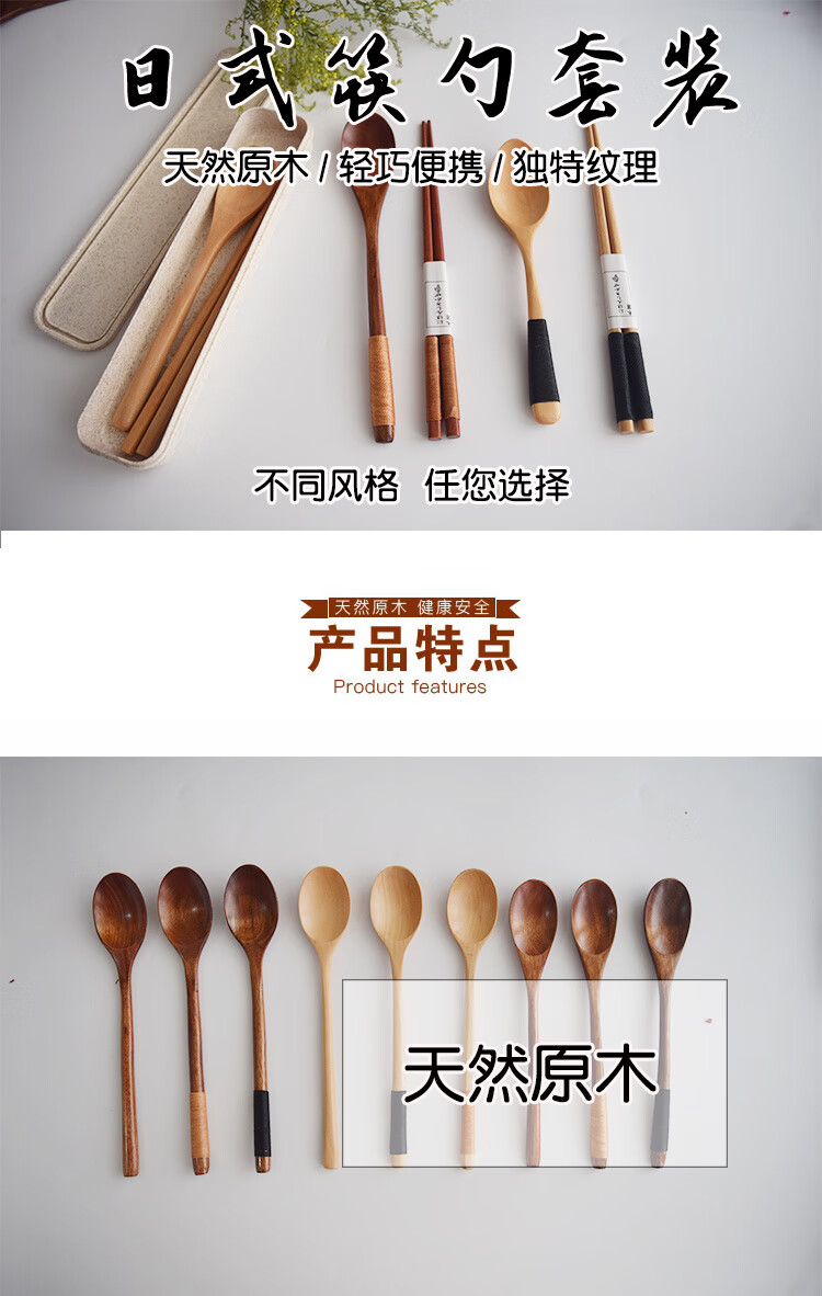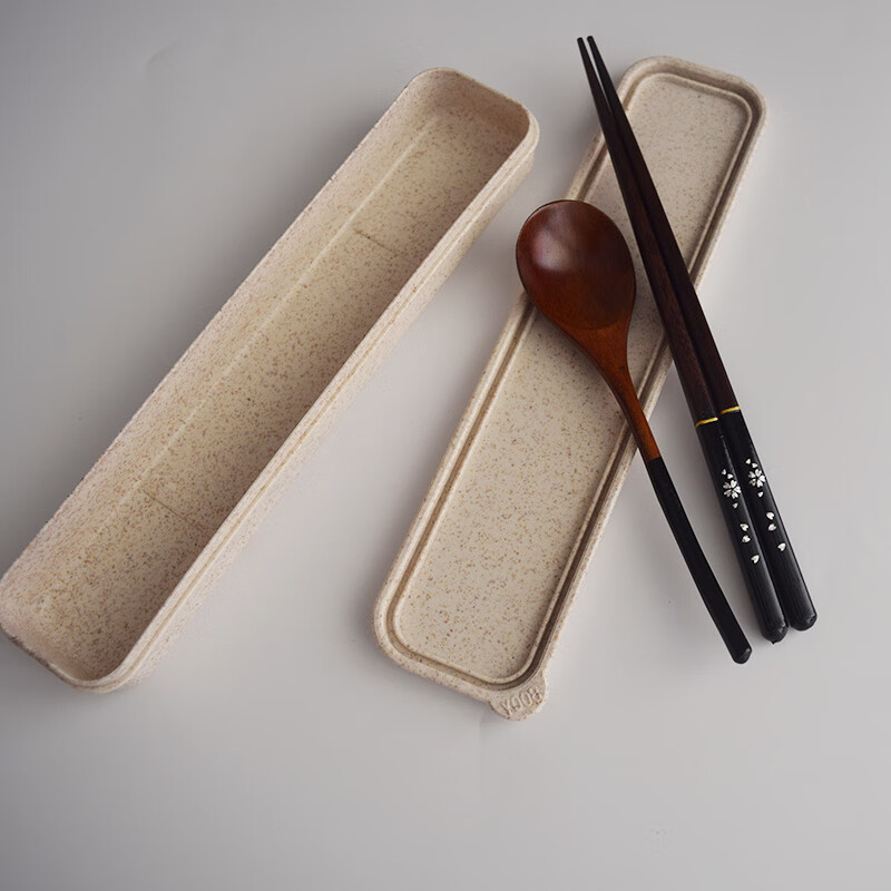 MZXM Japan imported quality box natural log chopsticks spoon set wooden portable outdoor camping tableware student package one