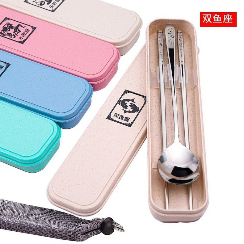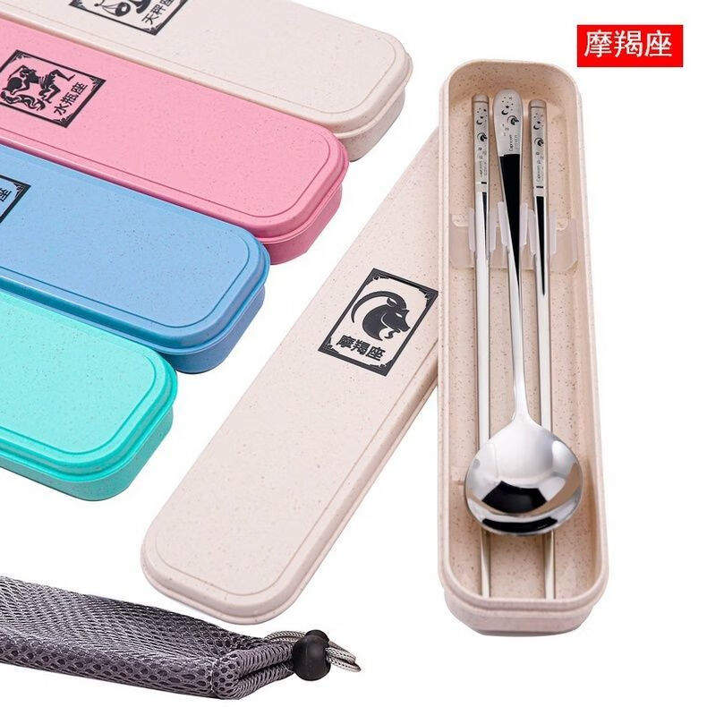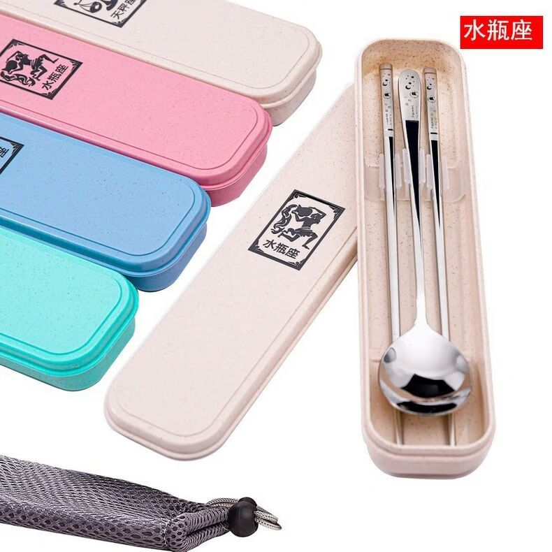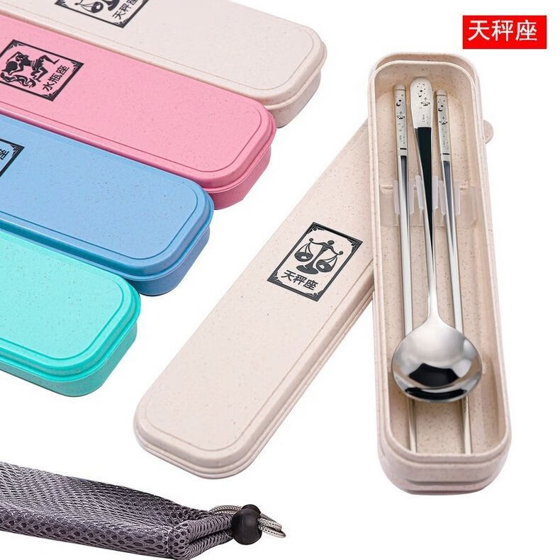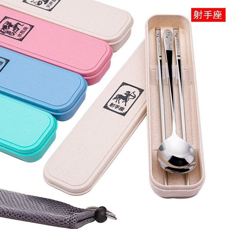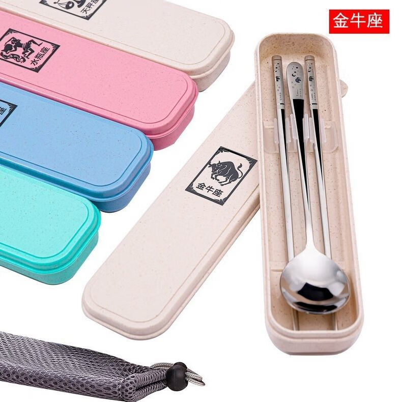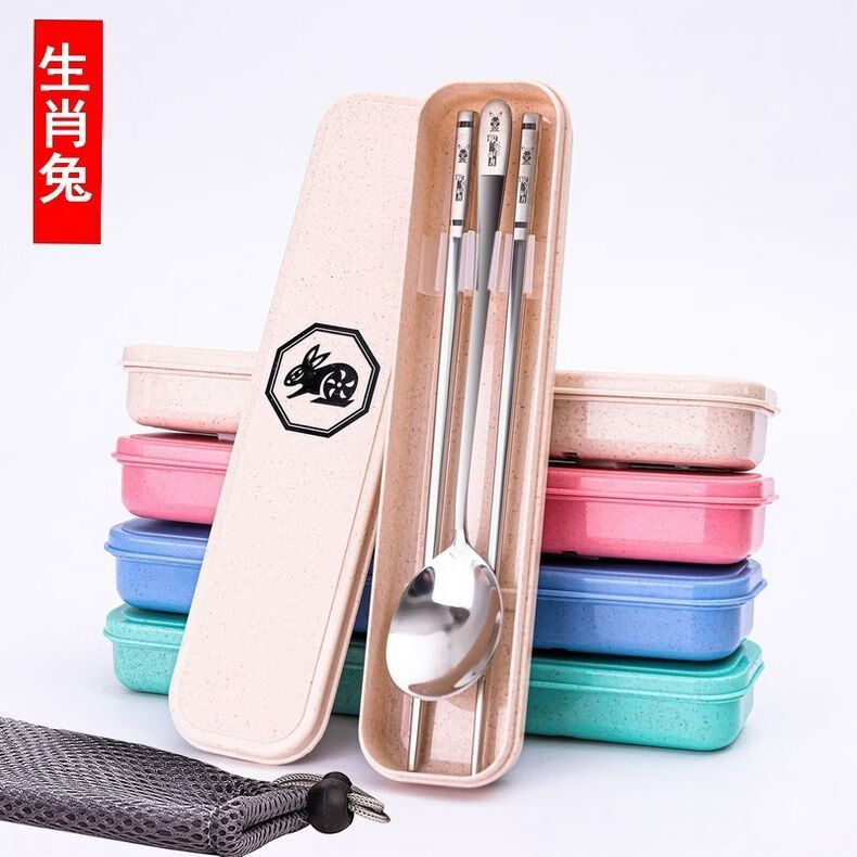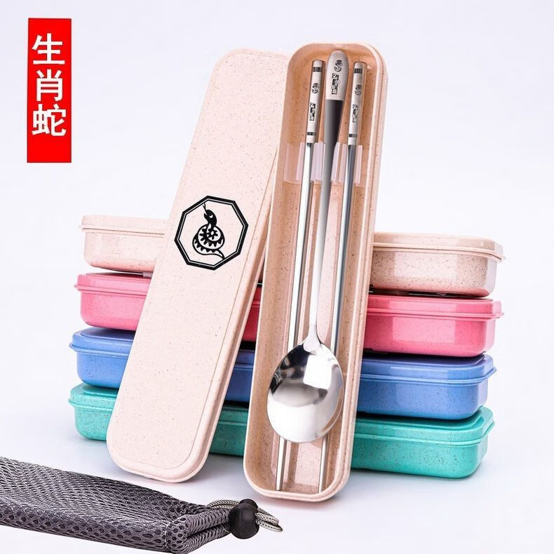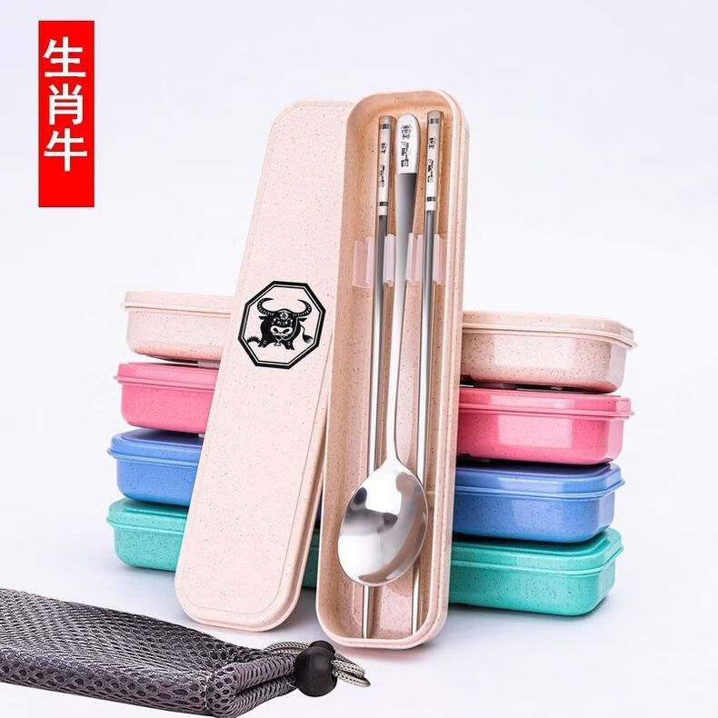 MZXM Japan imported quality stainless steel box with engraving, portable tableware, zodiac sign 304 chopsticks spoon 304 chopsticks spoon-(zodiac dog) plastic box style