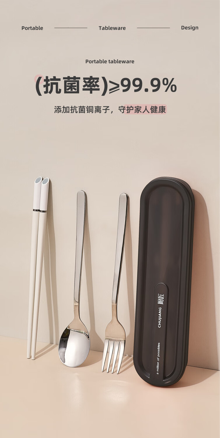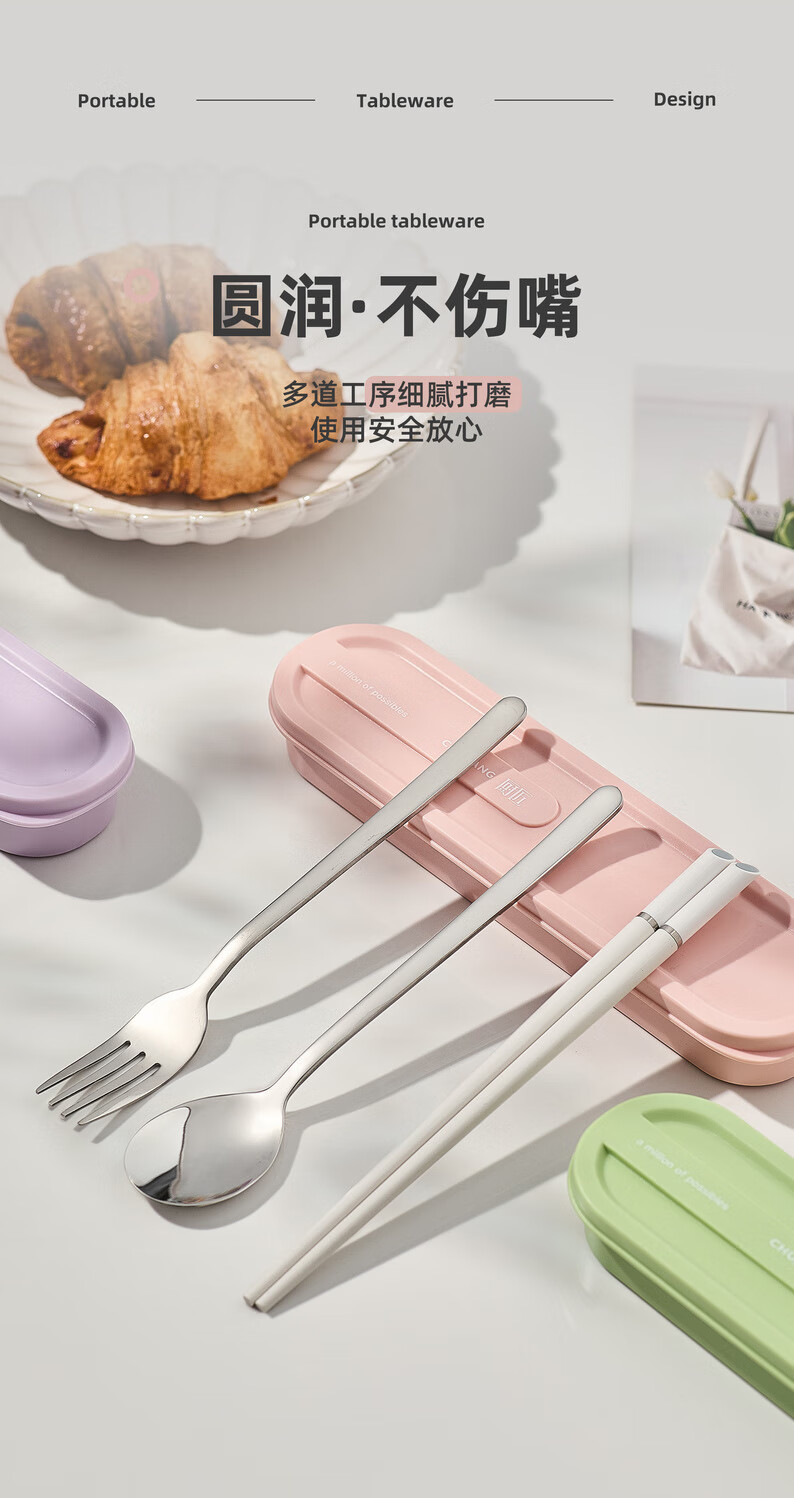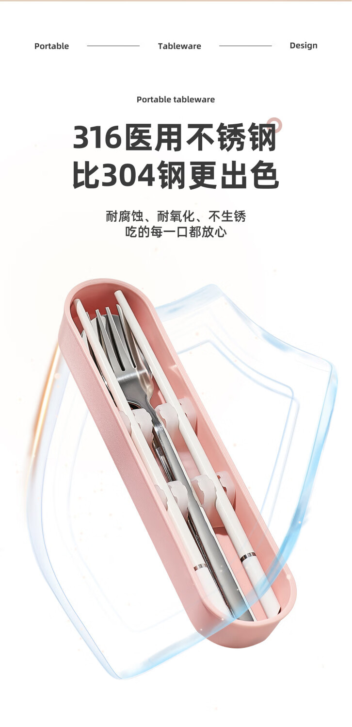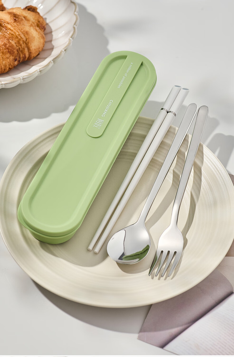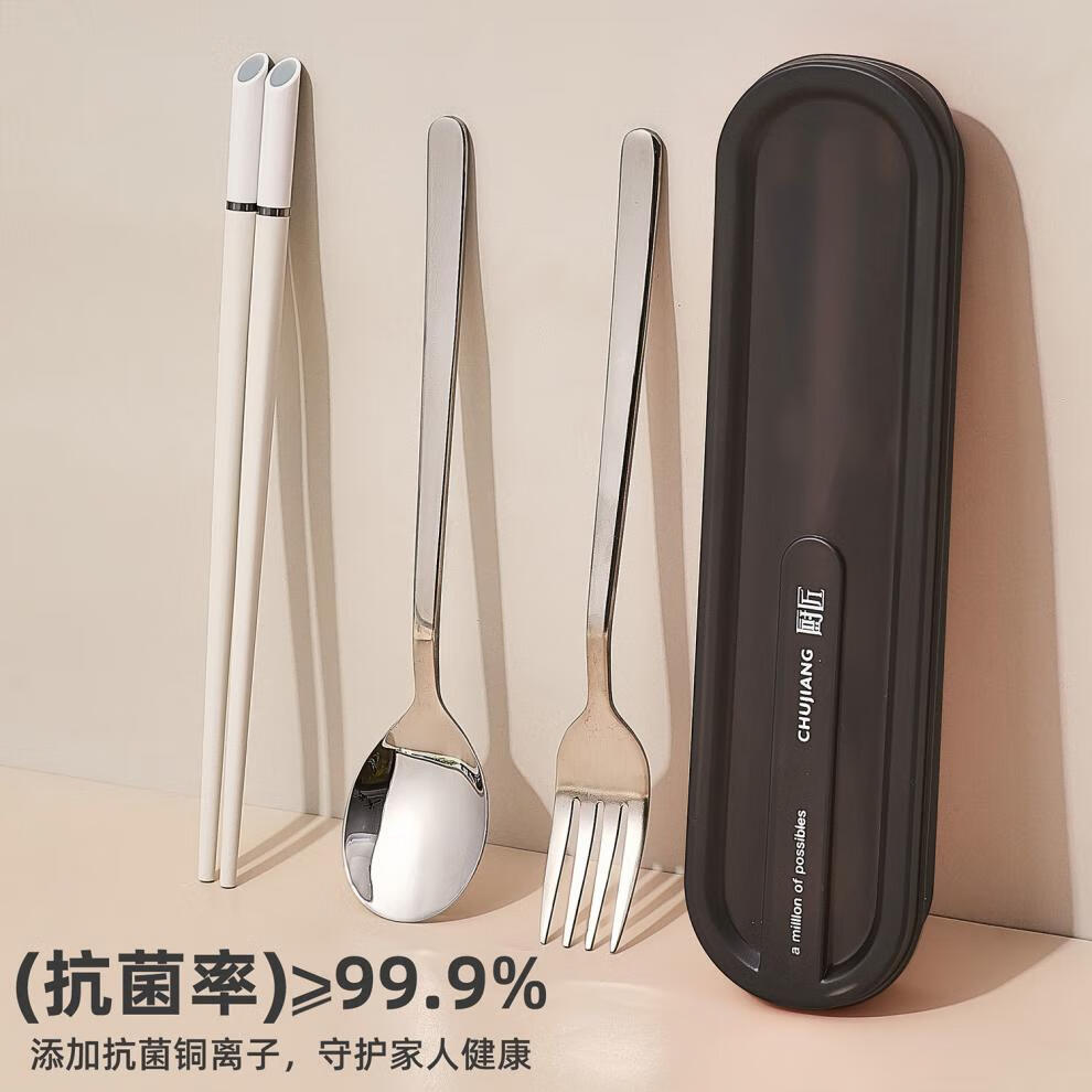 MZXM Japan imported quality 316L one-person office worker tableware three-piece storage box stainless steel chopsticks spoon toilet black three-piece set 316 stainless steel-spoon alloy chopsticks-with box