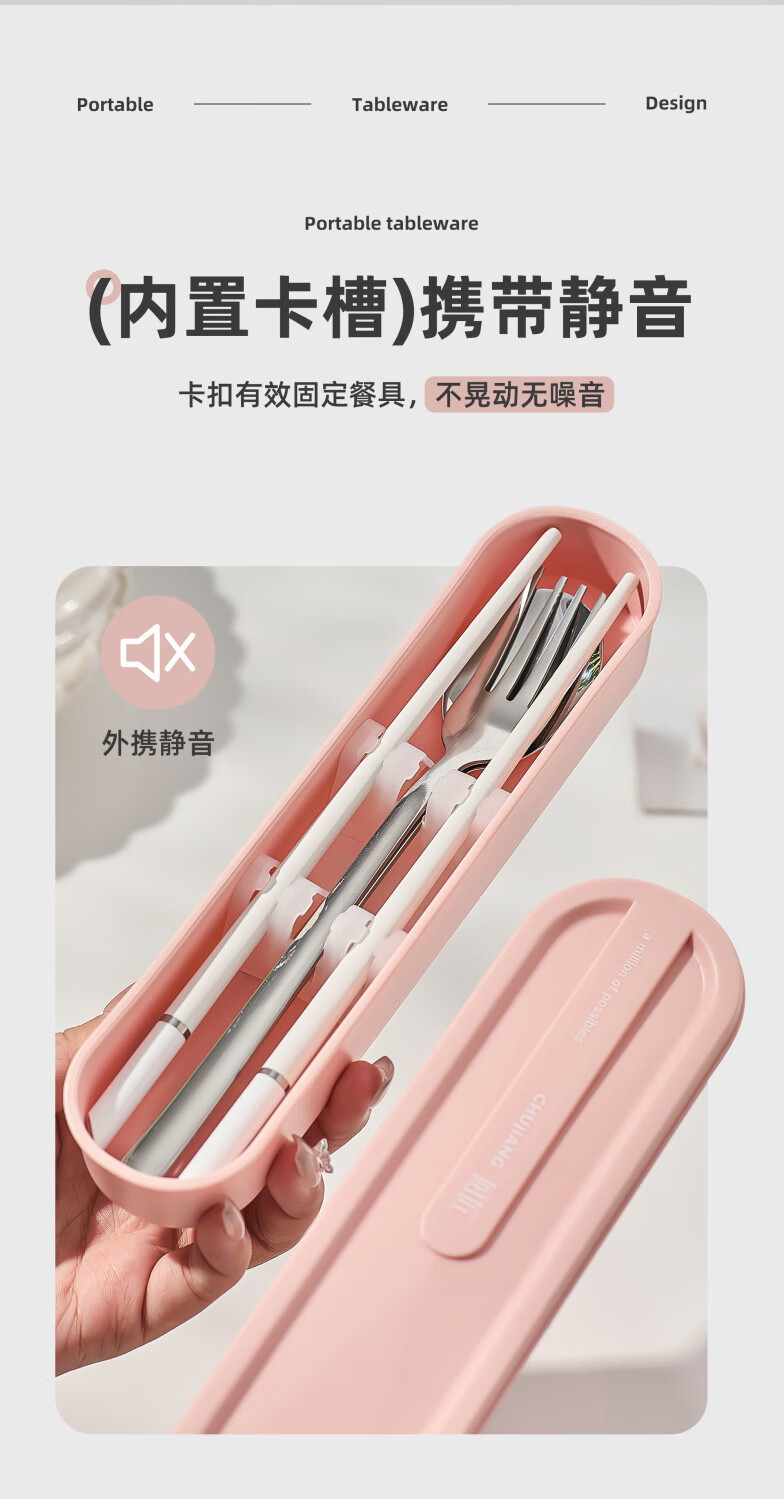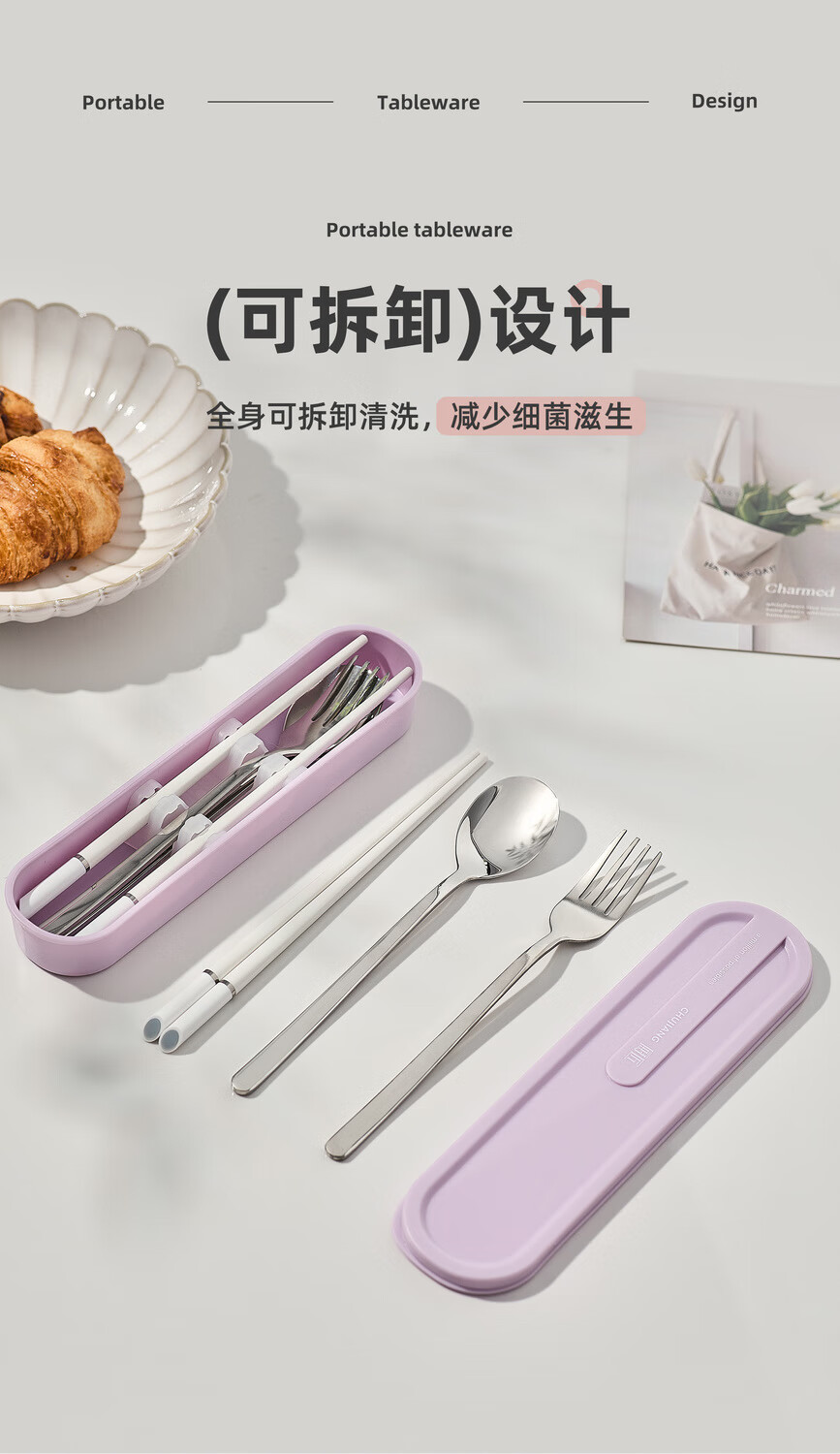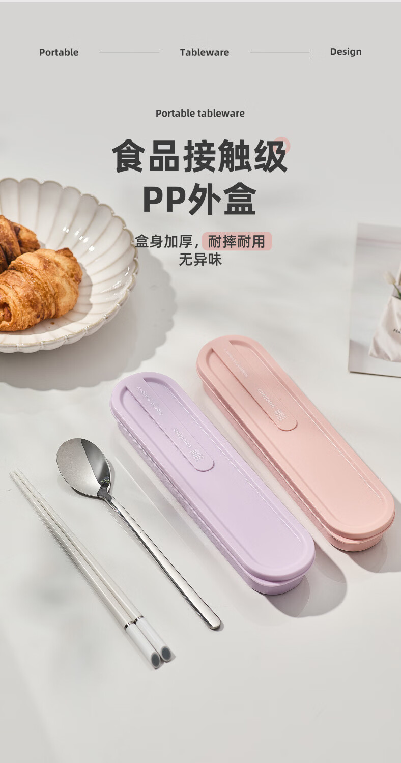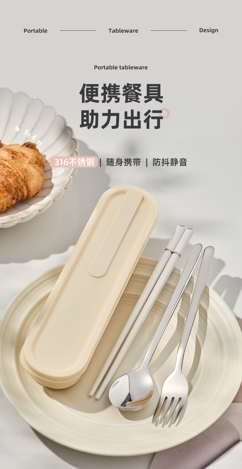 MZXM Japan imported quality 316L one-person office worker tableware three-piece storage box stainless steel chopsticks spoon toilet black three-piece set 316 stainless steel-spoon alloy chopsticks-with box