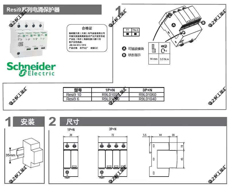 Schneider R9 series 1P+N6KA surge protector 3P+N10KA surge lightning protector 1P+N6KA