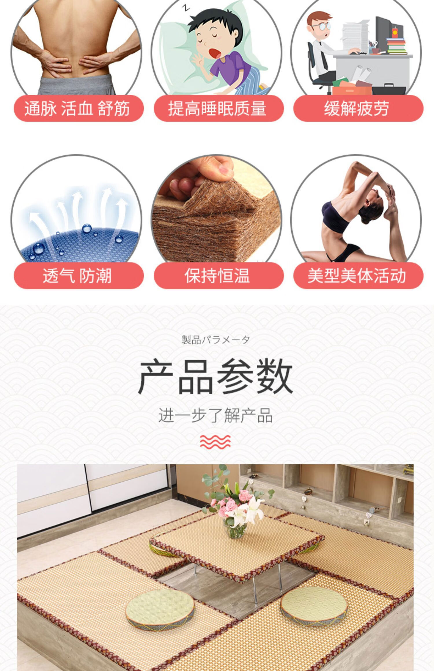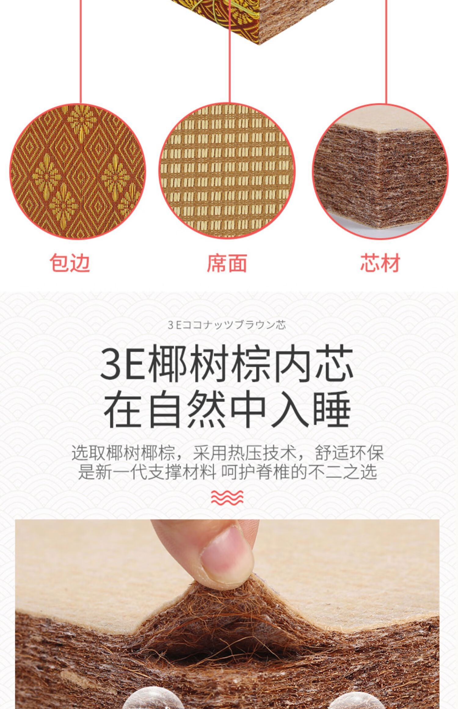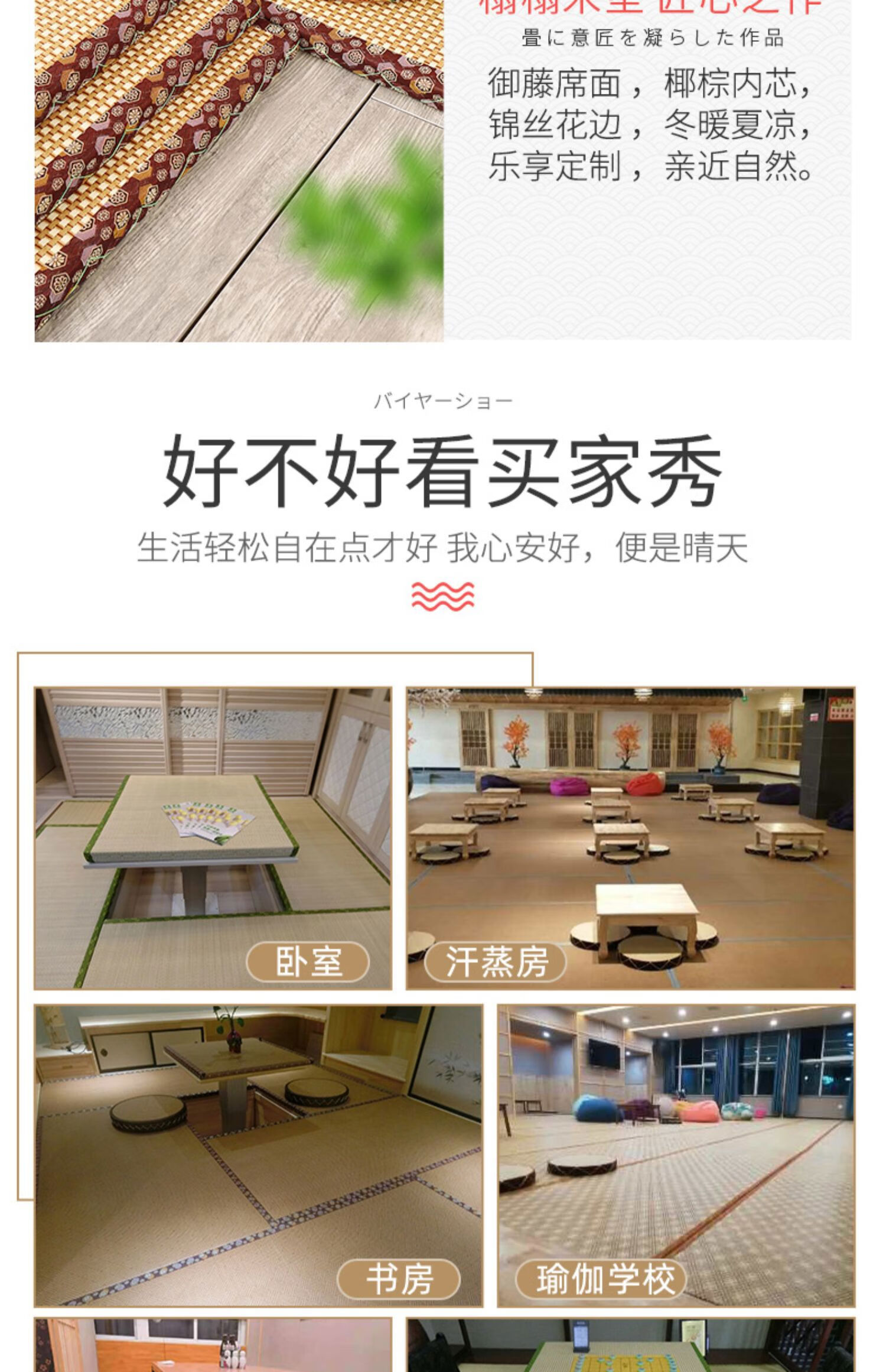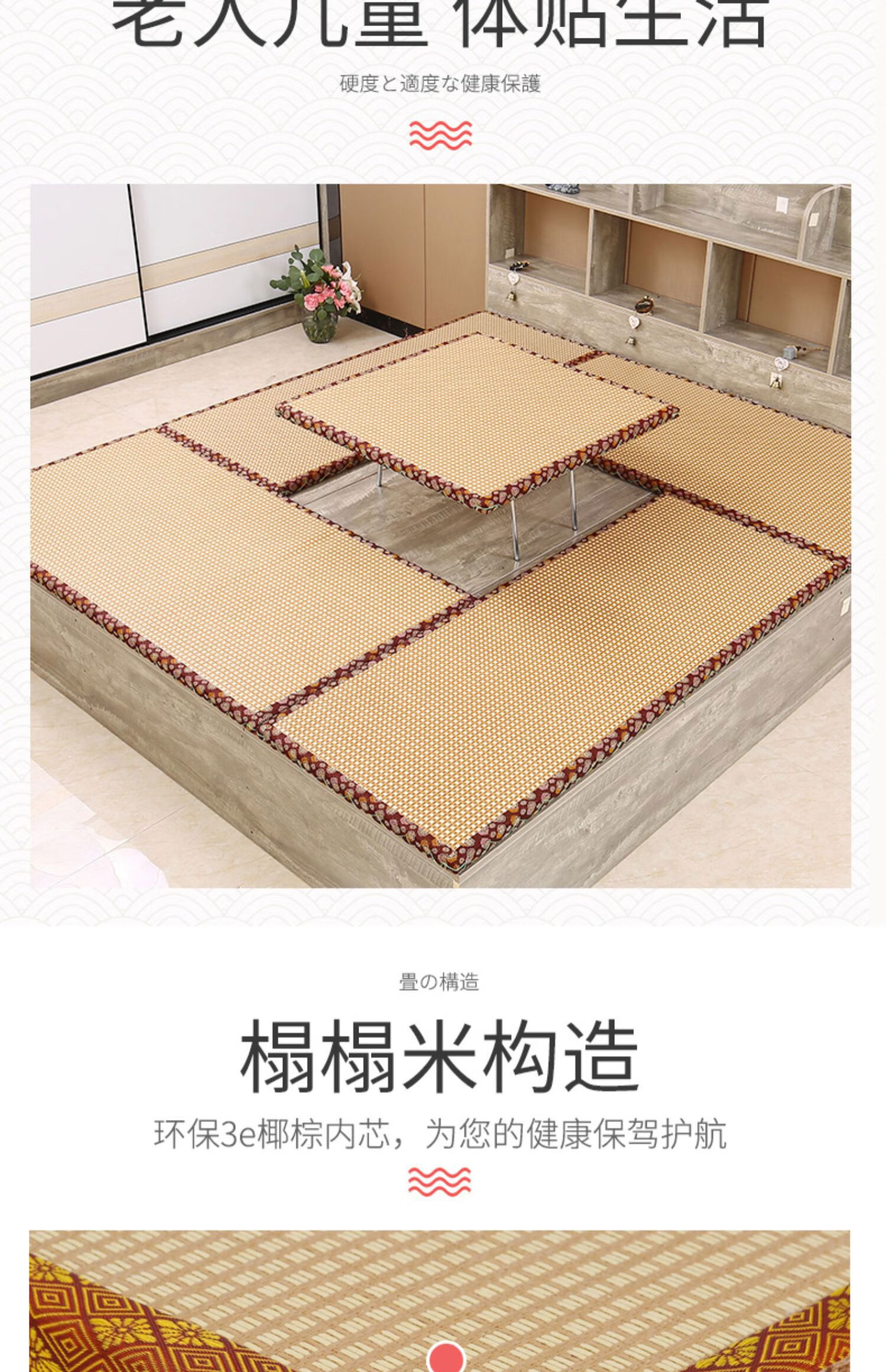 Jiyunmao Japanese-style coconut palm tatami mat electric heating custom-made tatami electric heated kang mat stepping rice floor mat bed 5:53E jute coconut palm core natural and environmentally friendly