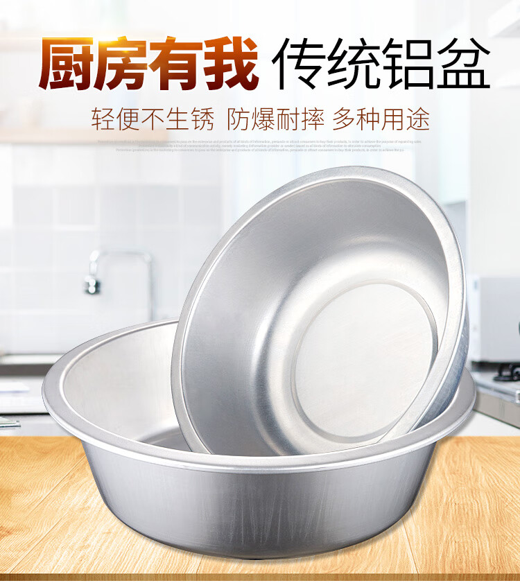 Nurapai thickened aluminum old-fashioned small aluminum basin flat bottom household kitchen basin vegetable basin wash basin aluminum large basin Lu basin 60cm large aluminum basin