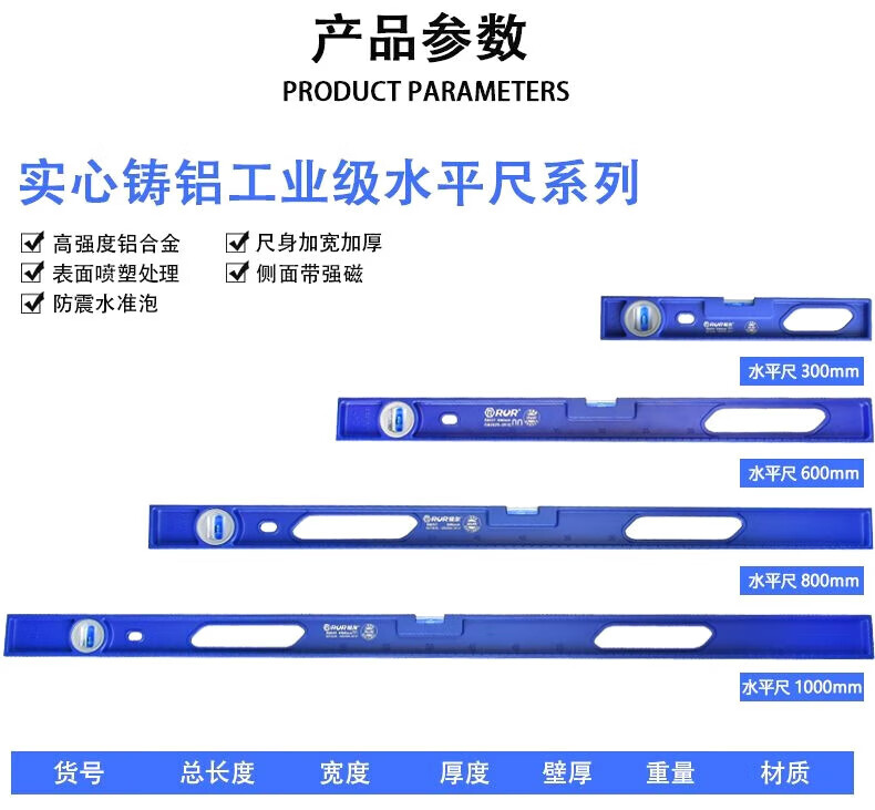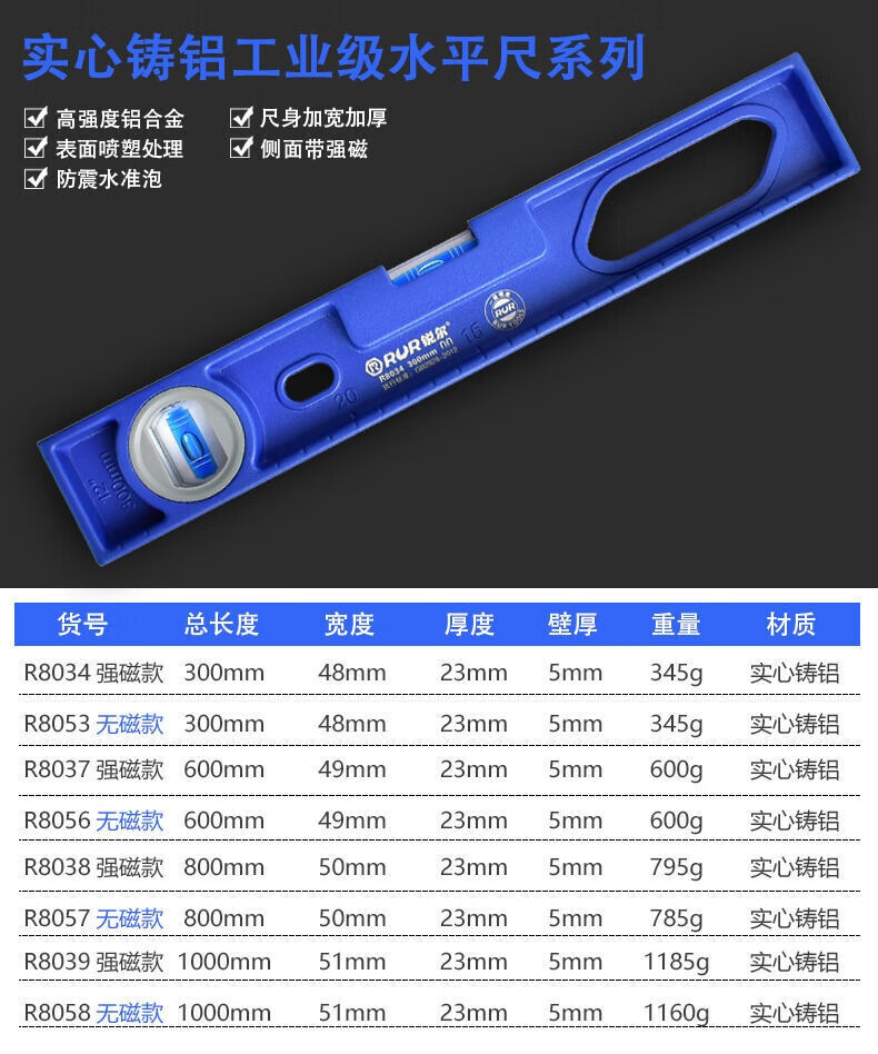 Miyi Germany imported Japanese level solid cast aluminum high-precision wall tile decoration heavy-duty strong magnetic level flat 80cm cast aluminum level non-magnetic