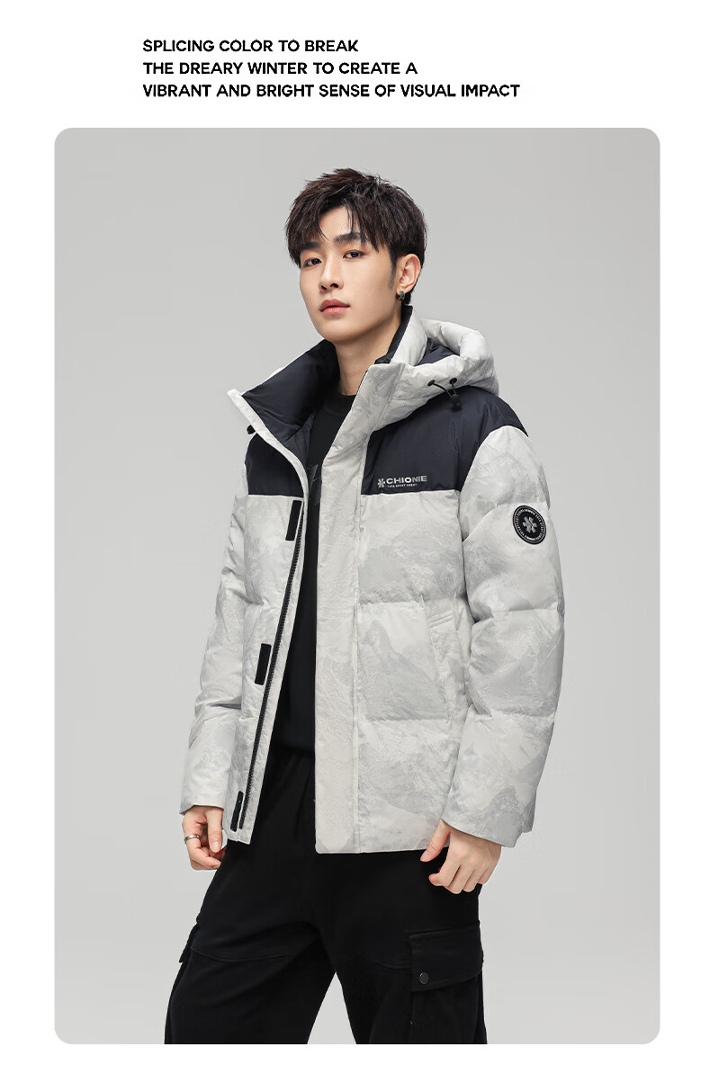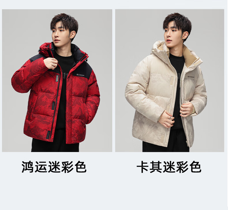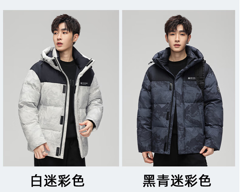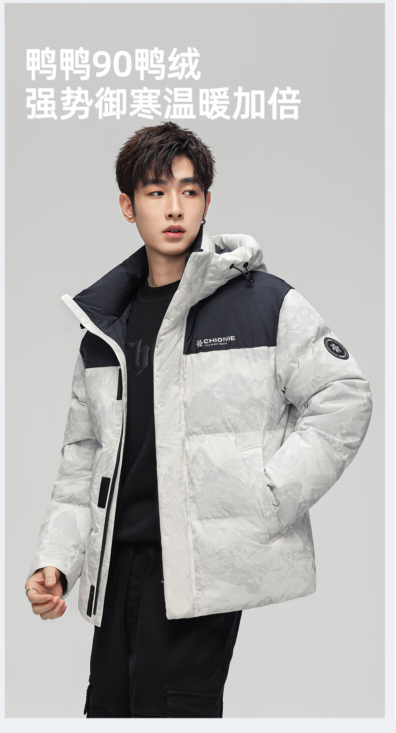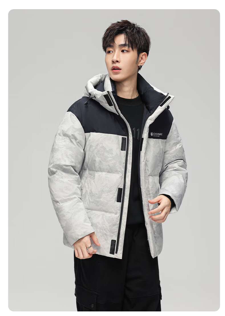 Yaya (YAYA) Wang Yibo same style down jacket men's contrasting color stitching fashion versatile thickened hooded bread jacket men's DY black and green camouflage color L 175/92A
