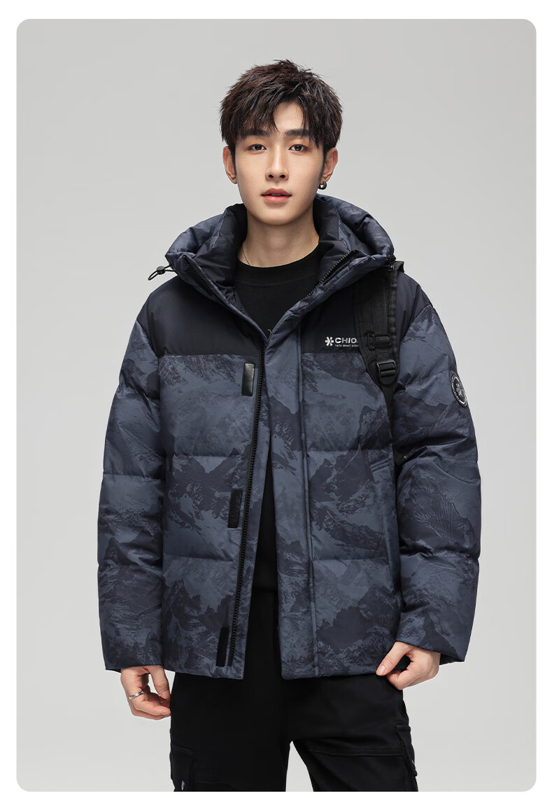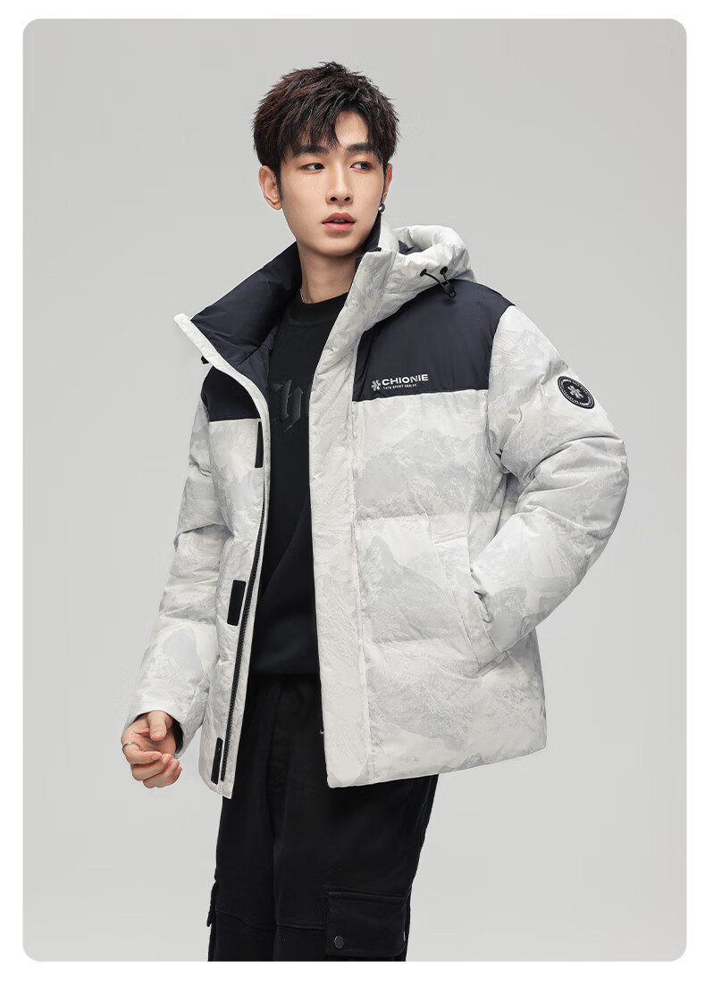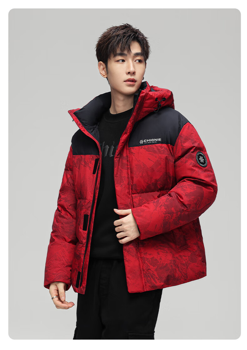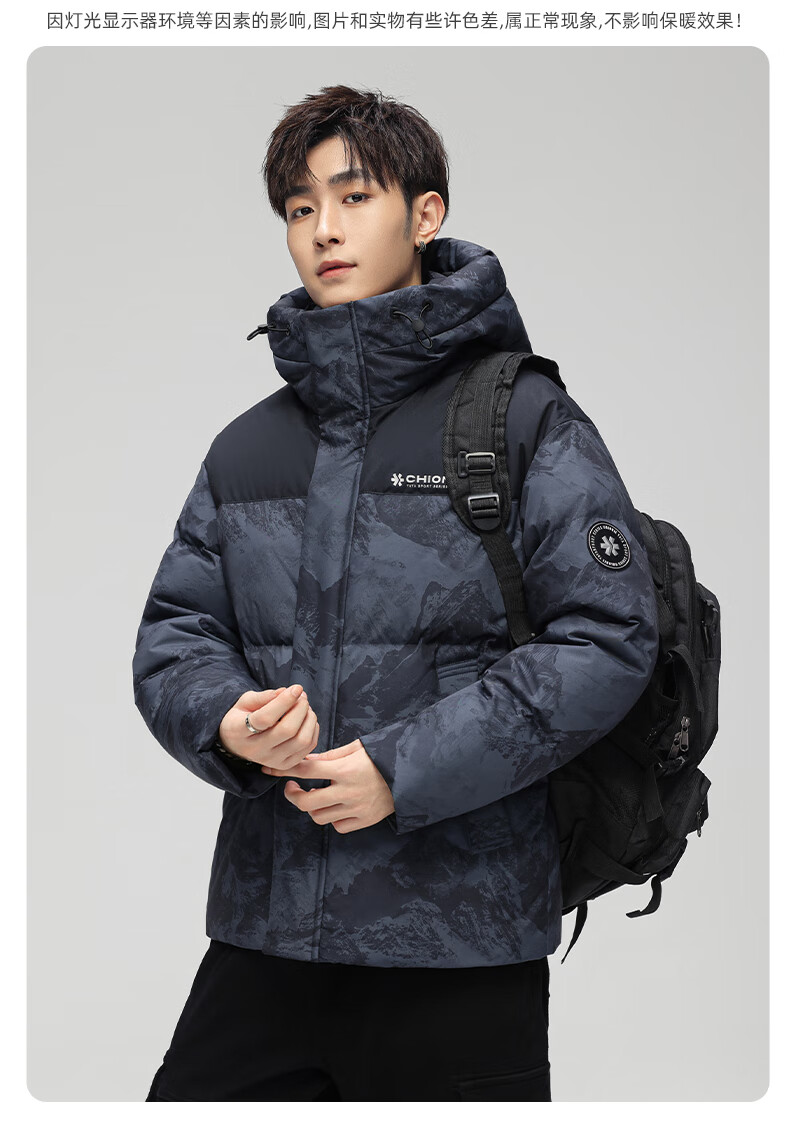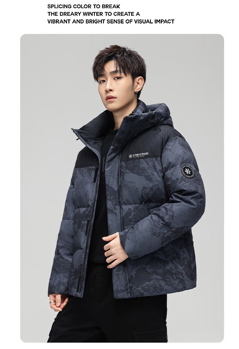 Yaya (YAYA) Wang Yibo same style down jacket men's contrasting color stitching fashion versatile thickened hooded bread jacket men's DY black and green camouflage color L 175/92A