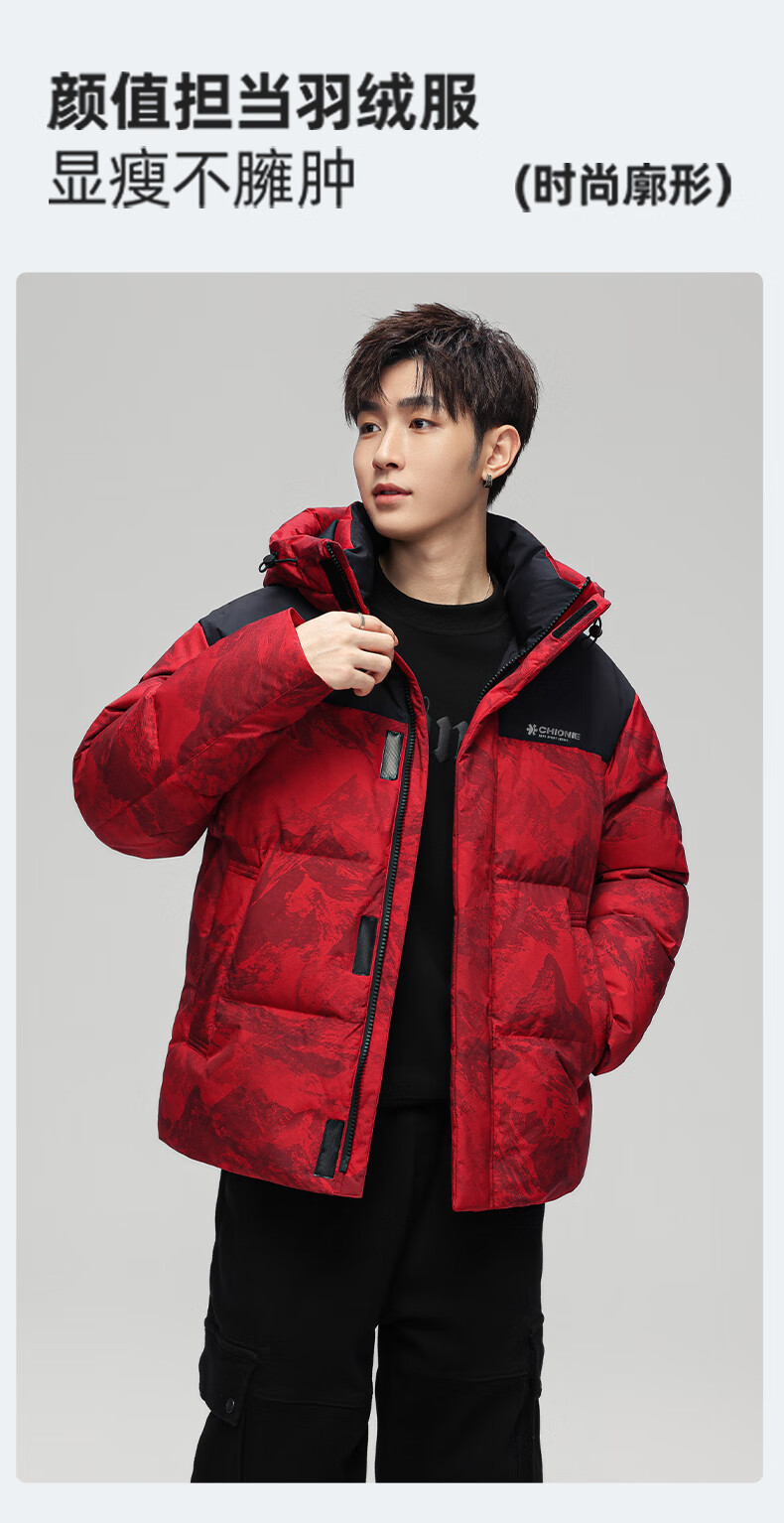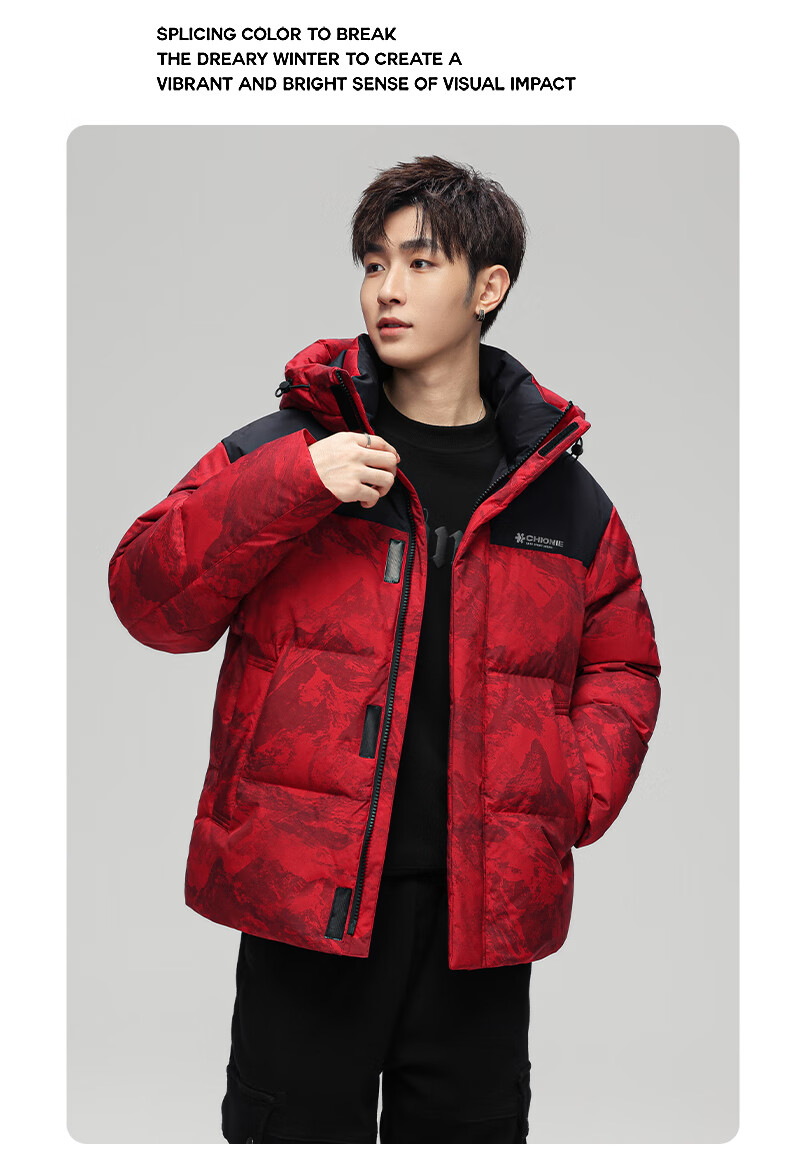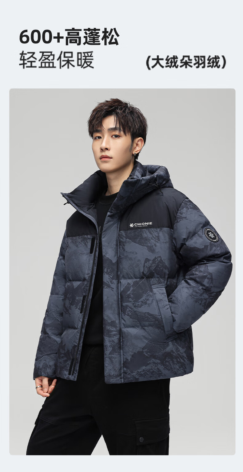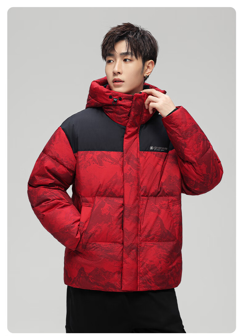Yaya (YAYA) Wang Yibo same style down jacket men's contrasting color stitching fashion versatile thickened hooded bread jacket men's DY black and green camouflage color L 175/92A