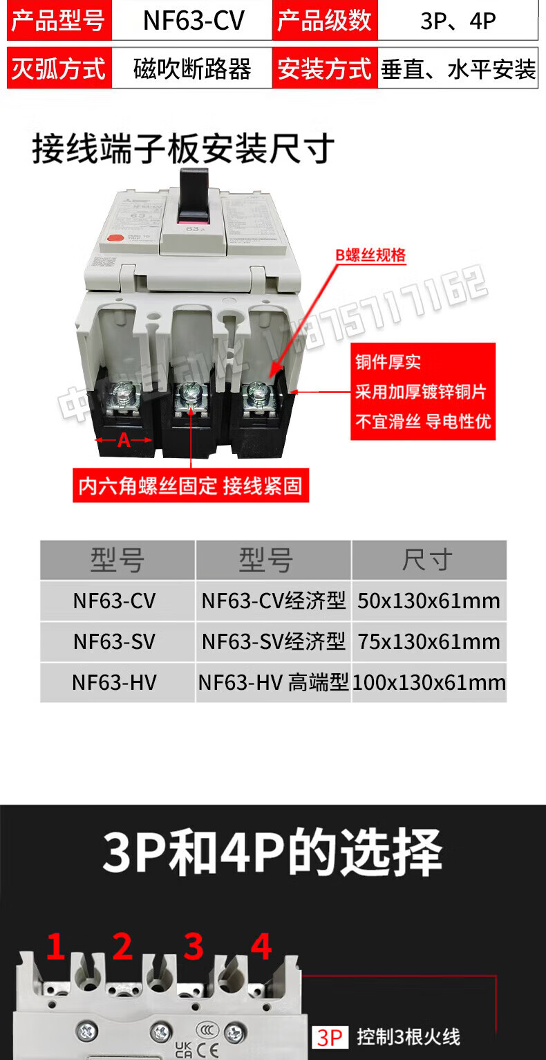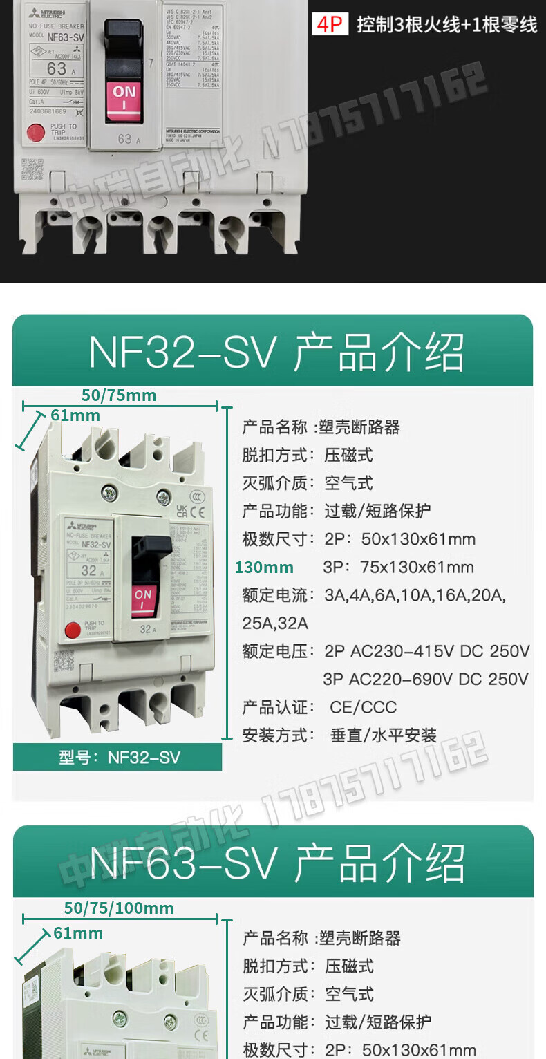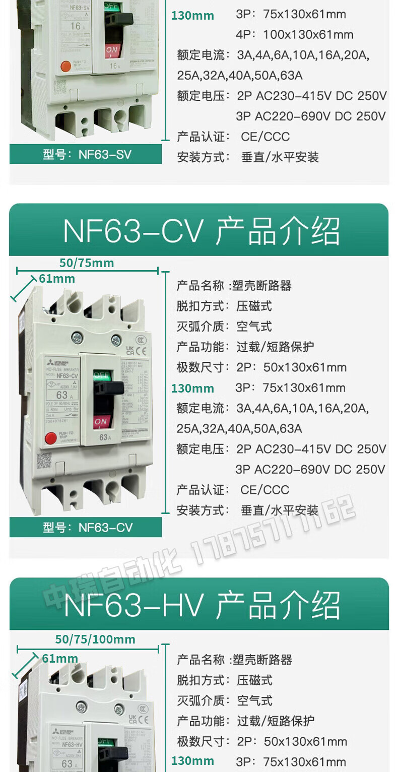 Mitsubishi MCCB plastic case circuit breaker/130A6 air switch 4A 3P