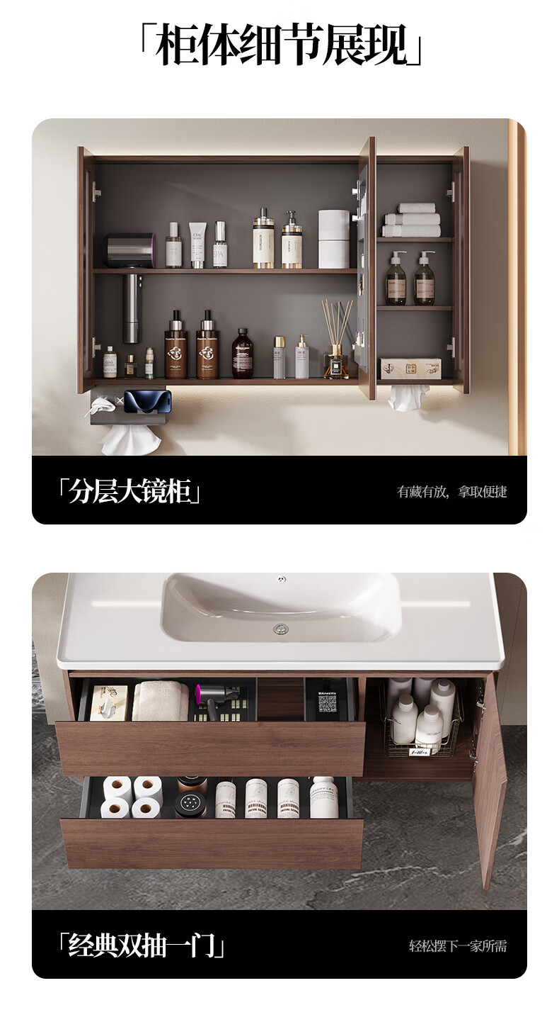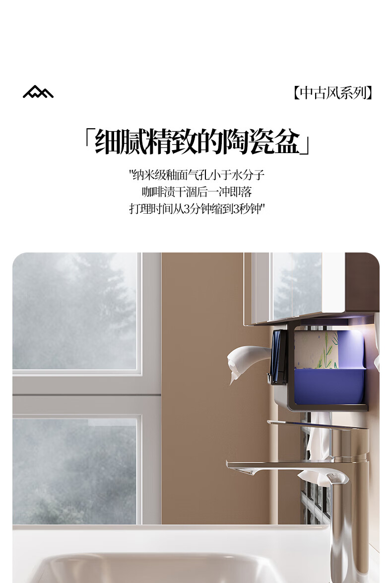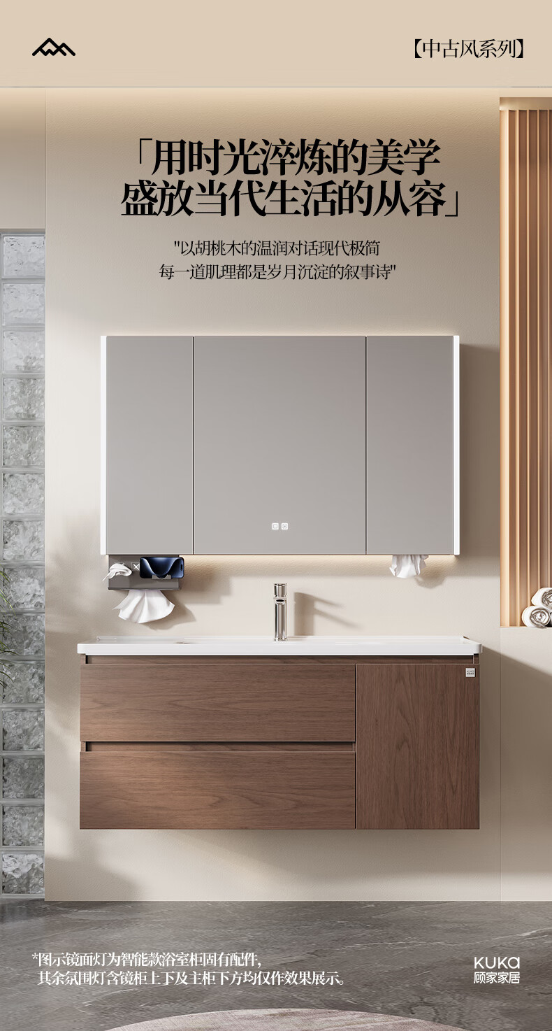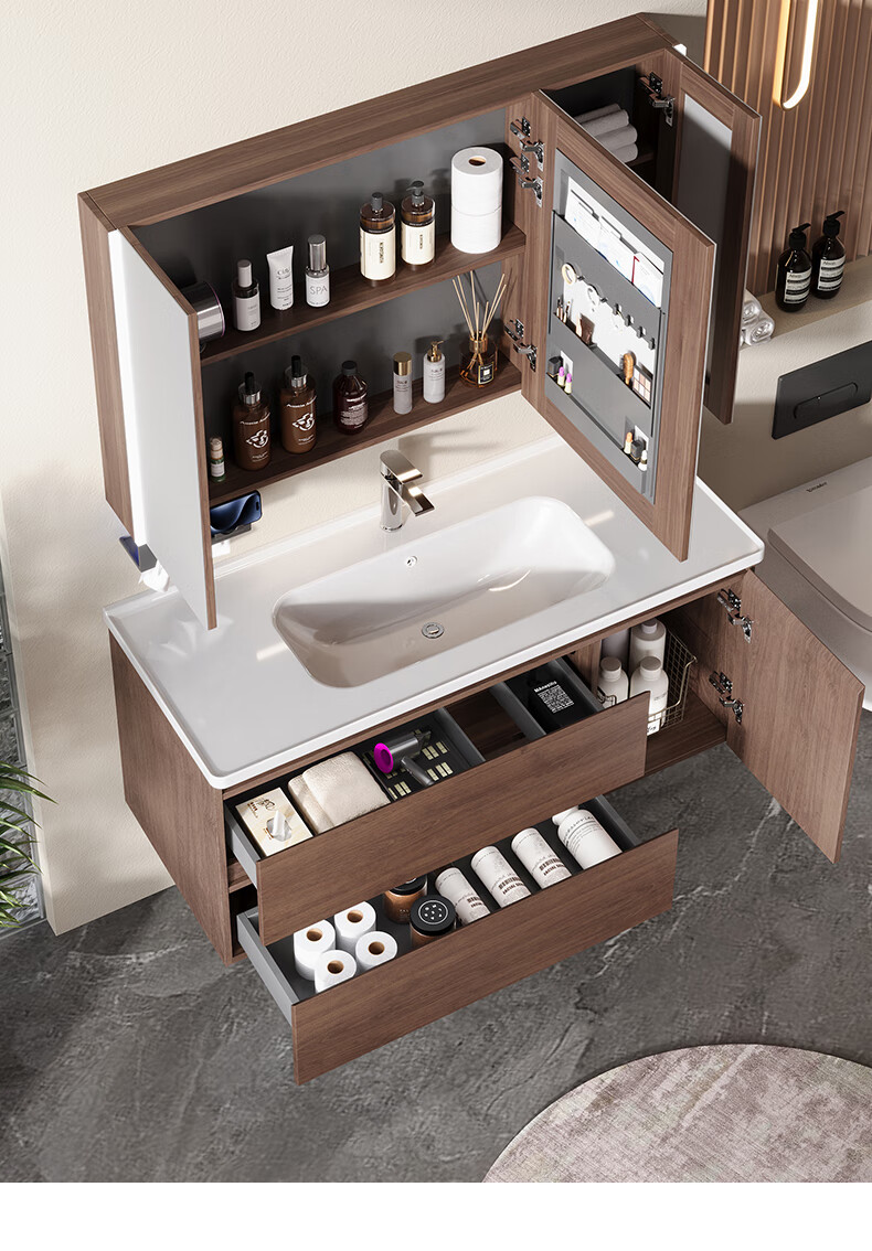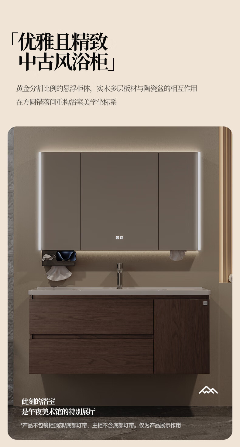 Gujia Home Bathroom Cabinet Antique Ceramic Integrated Basin Washbasin Cabinet Combination Mirror Cabinet Bathroom Cabinet Washbasin G-06753 100cm Beauty Storage + Lighting Defogging