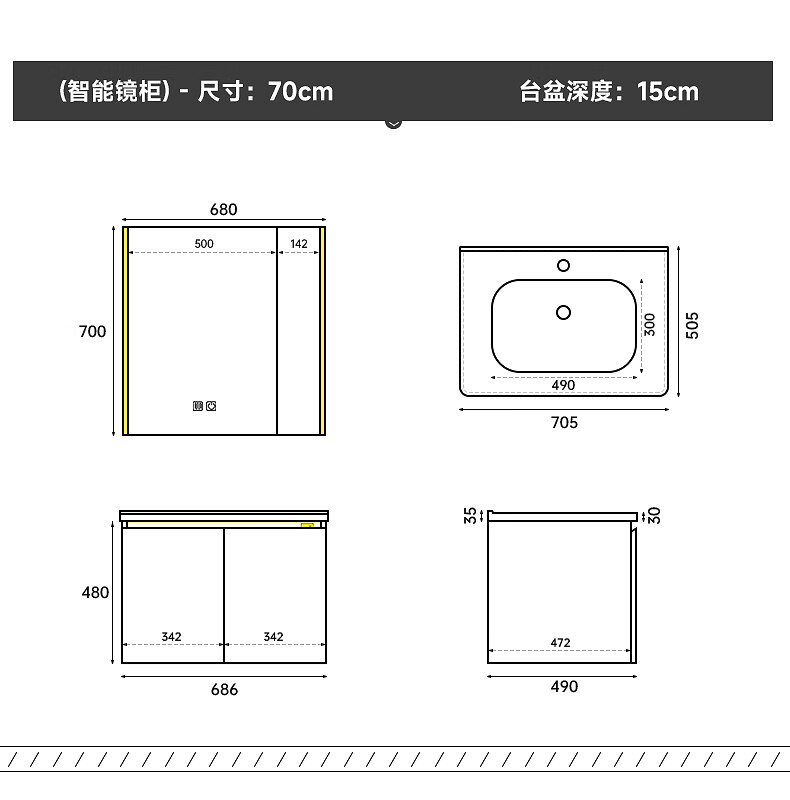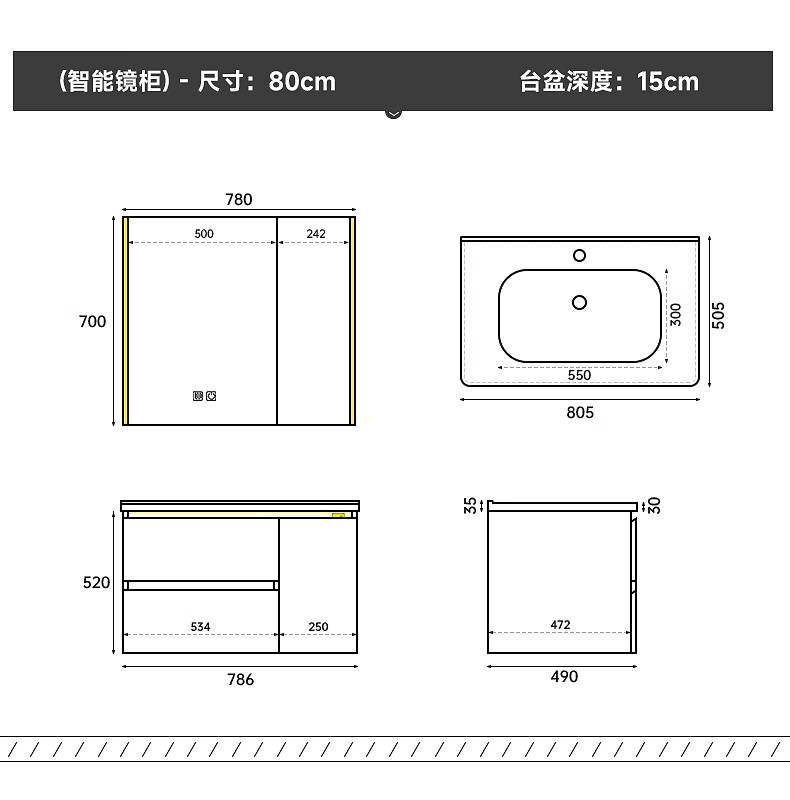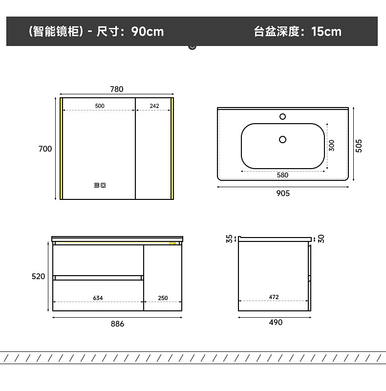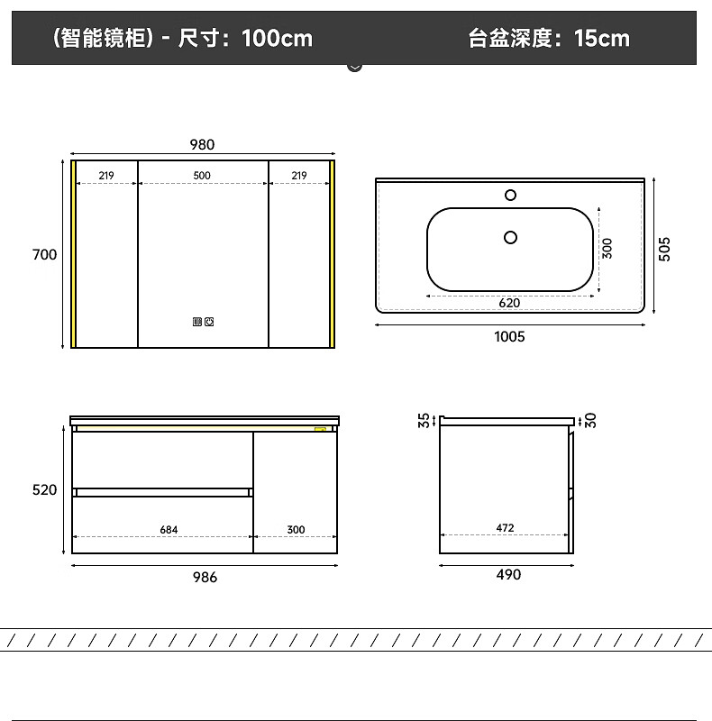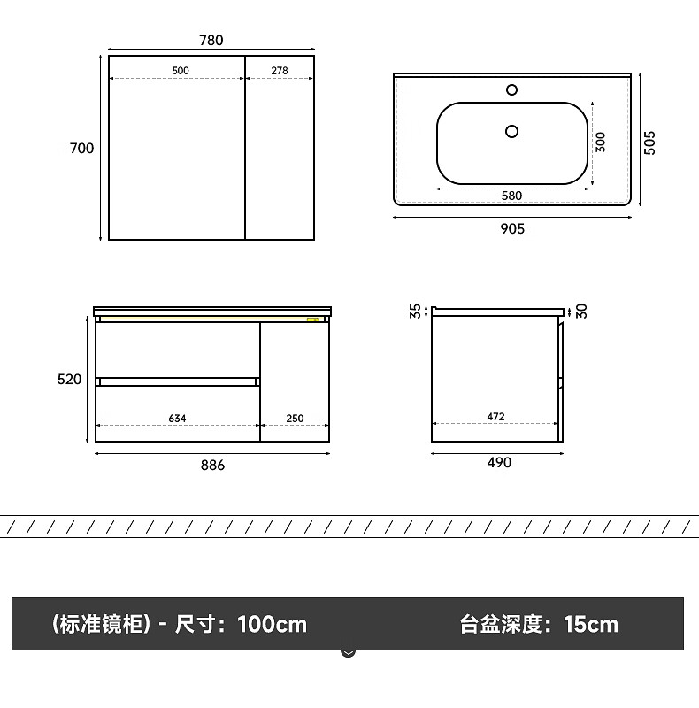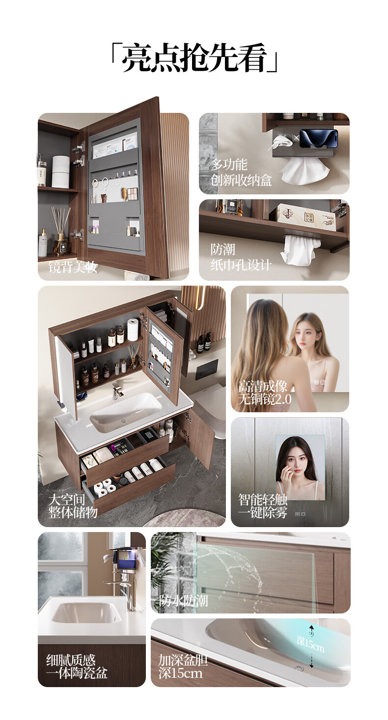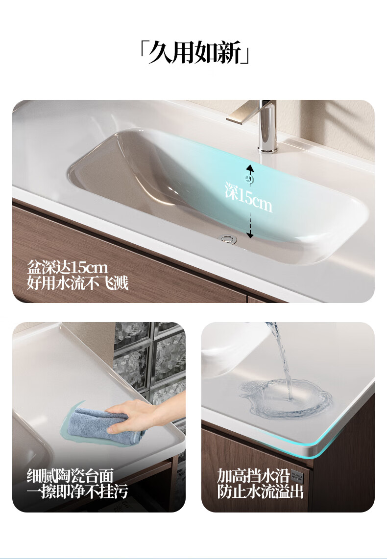 Gujia Home Bathroom Cabinet Antique Ceramic Integrated Basin Washbasin Cabinet Combination Mirror Cabinet Bathroom Cabinet Washbasin G-06753 100cm Beauty Storage + Lighting Defogging