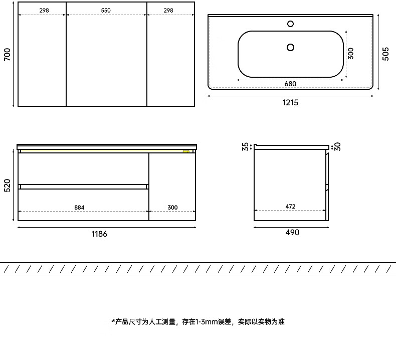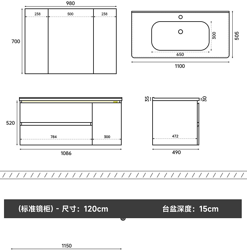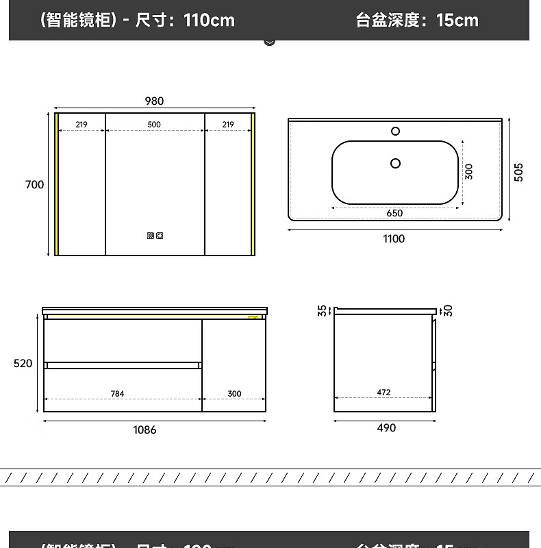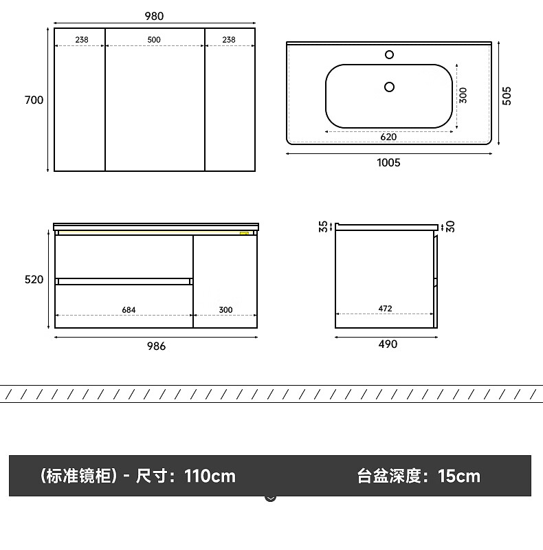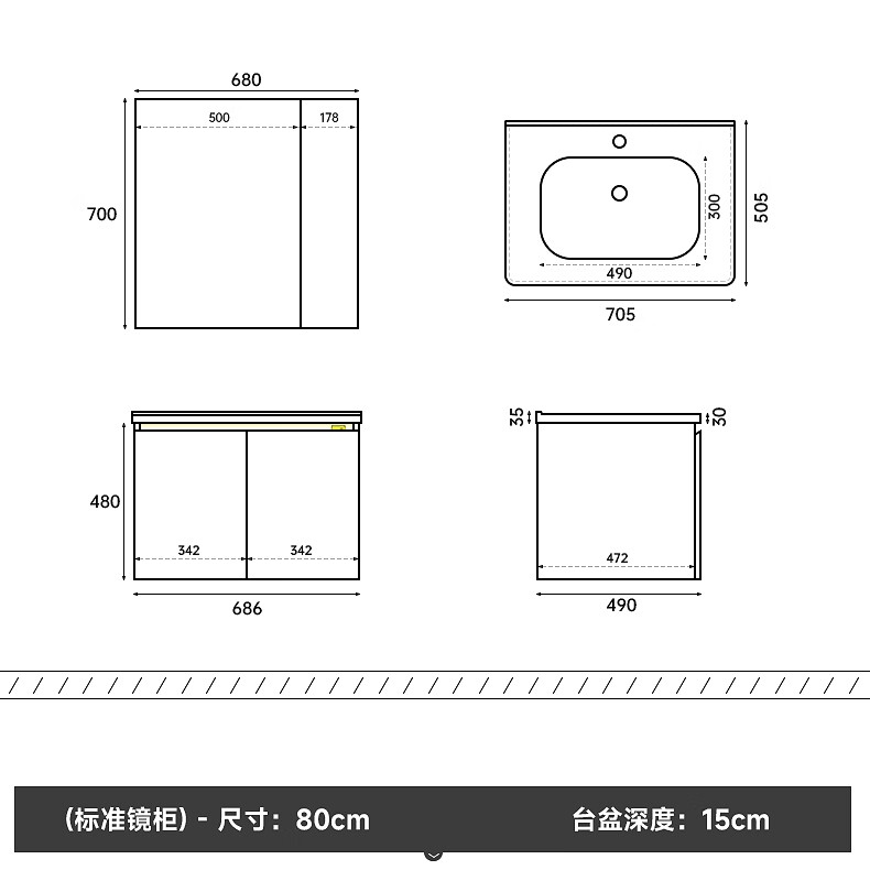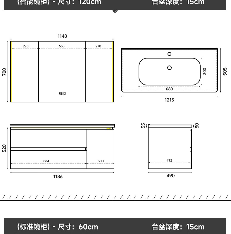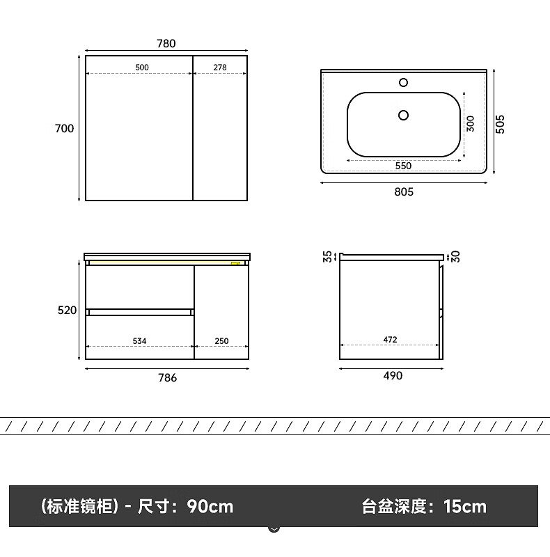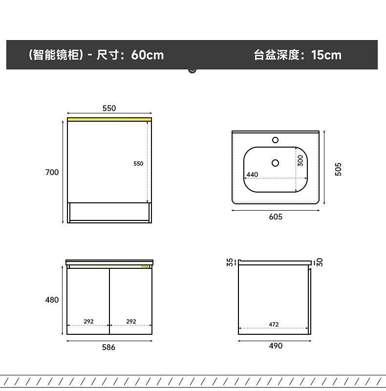 Gujia Home Bathroom Cabinet Antique Ceramic Integrated Basin Washbasin Cabinet Combination Mirror Cabinet Bathroom Cabinet Washbasin G-06753 100cm Beauty Storage + Lighting Defogging