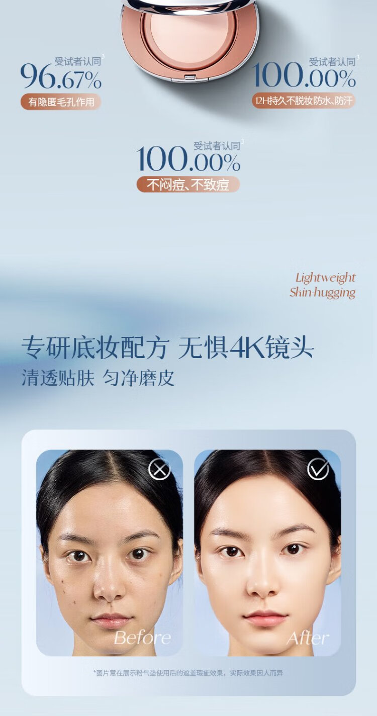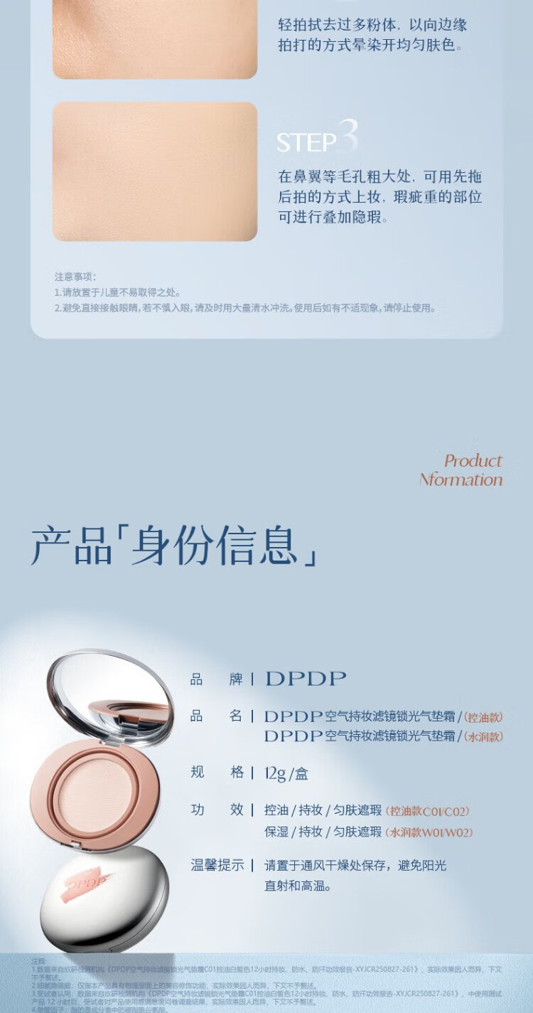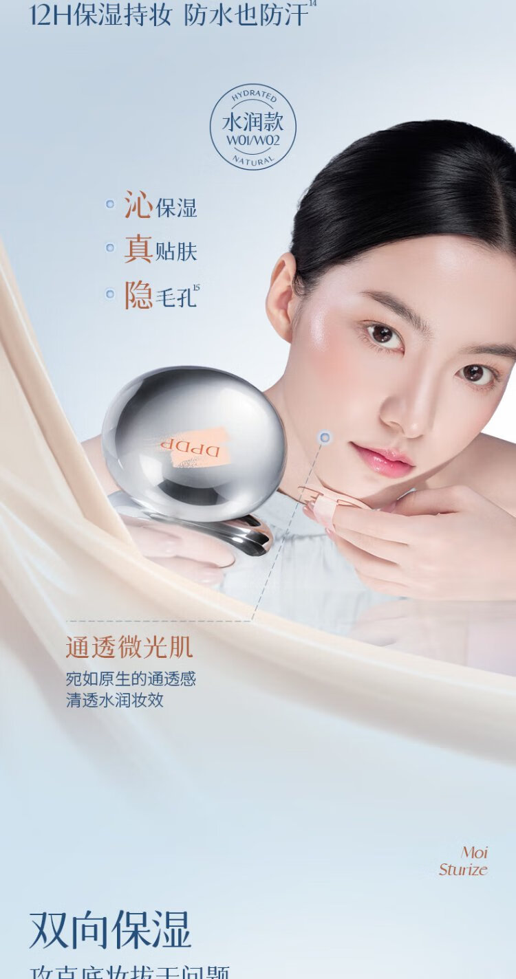 DPDP Air Makeup Filter Locking Light Cushion Cream Foundation for Oily Skin Soft Focus Oil Control Dry Skin Hydrating Moisturizing Concealer Long-lasting 1 Original 1 Replacement W02# Hydrating Natural Color-Dry Skin, Yellow Skin Selection