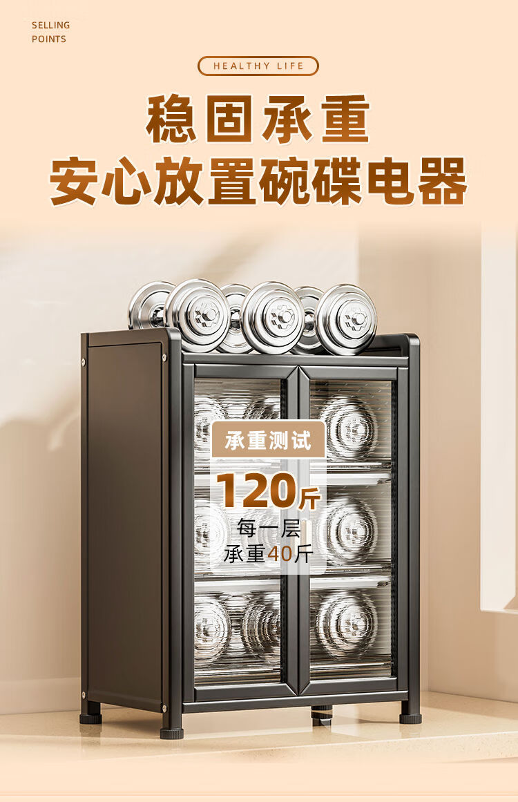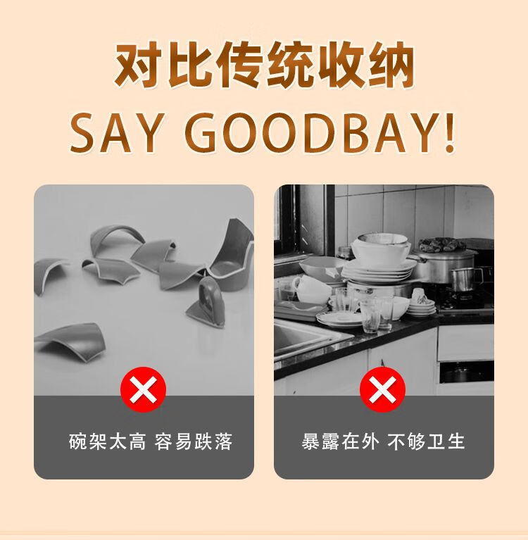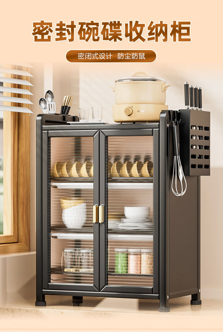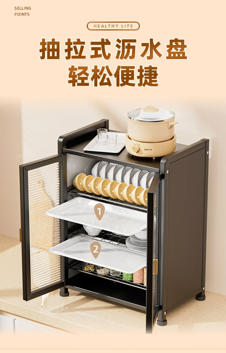 Kitchen cupboard bowl rack drain rack tableware countertop large capacity household multi-functional small storage dish storage rack cupboard three layers black + full set of accessories