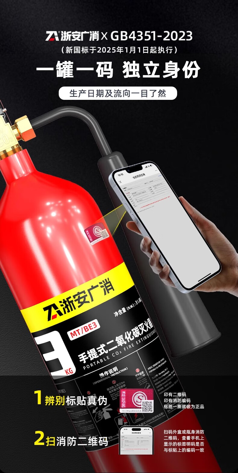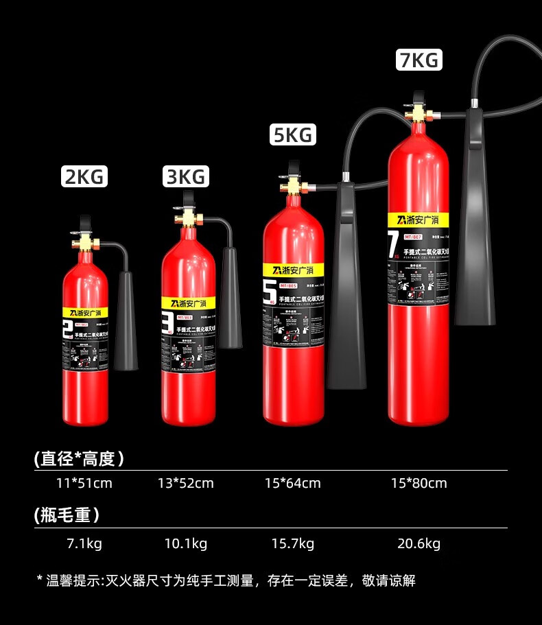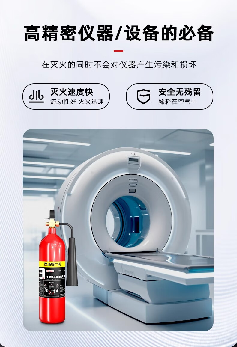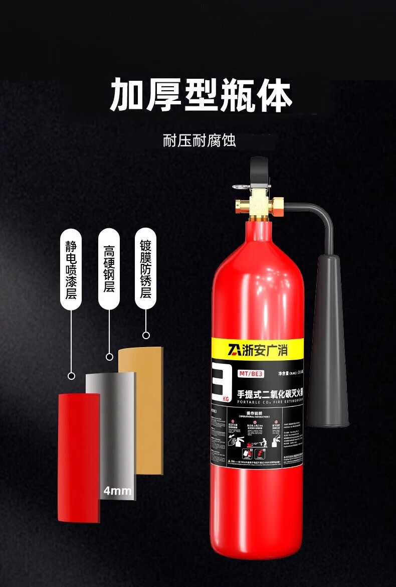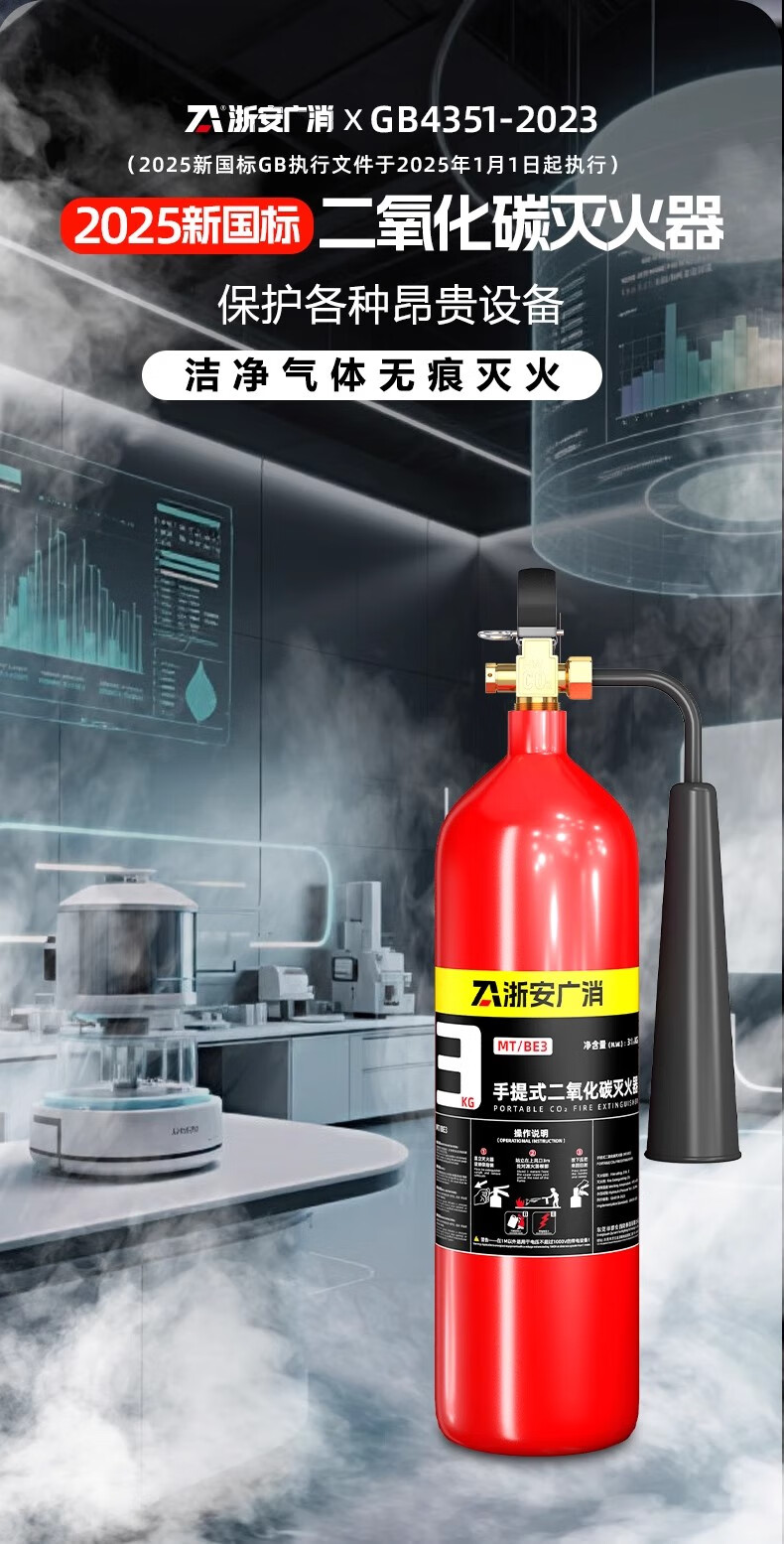 Zhe'an Guangxia carbon dioxide fire extinguisher 2025 new national standard dry ice C02 portable 2/3/5/7 kg machine room distribution room experimental clean gas non-destructive fire extinguishing room special fire equipment Portable carbon dioxide fire extinguisher 2KG 2025 new national standard