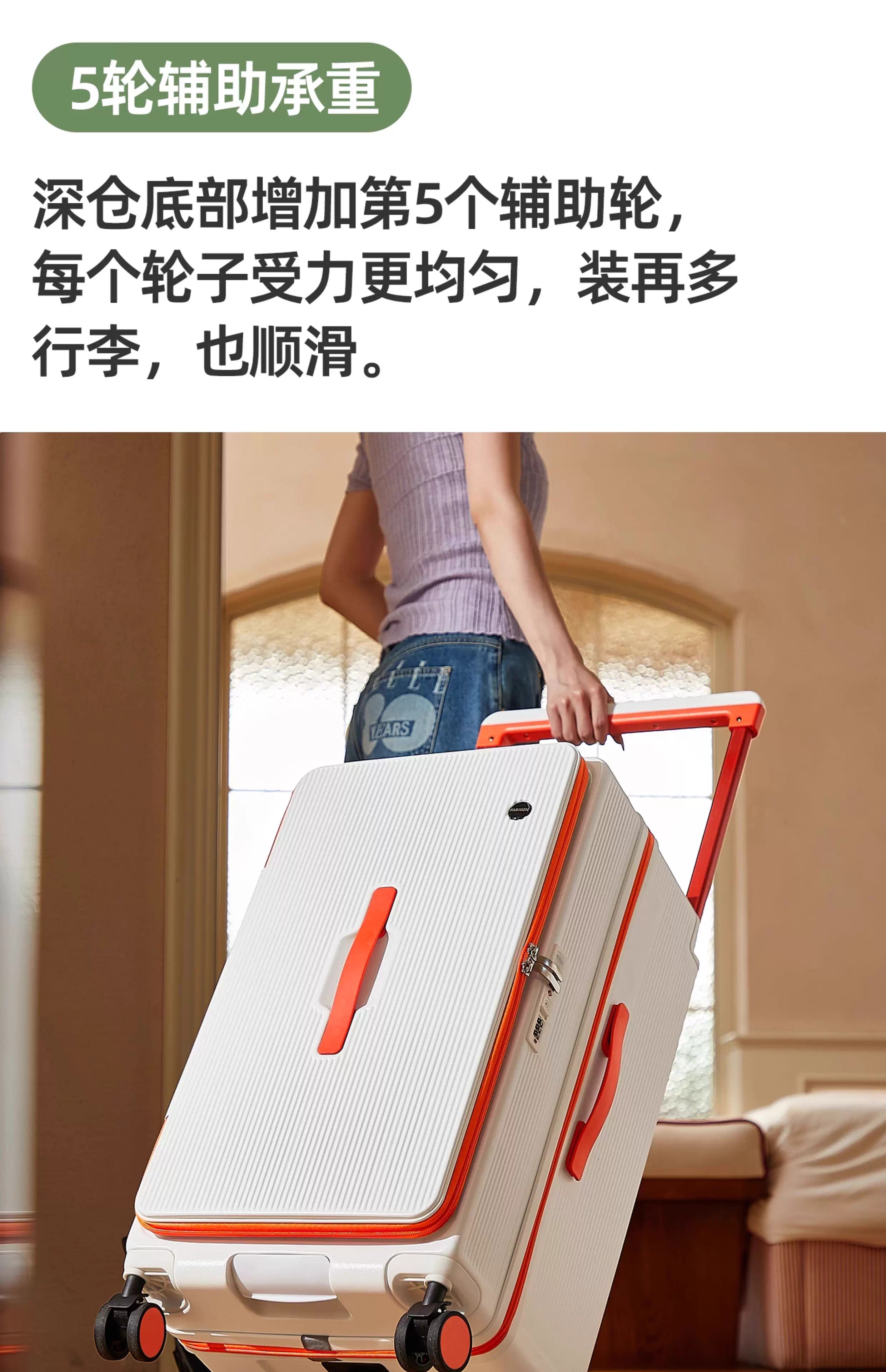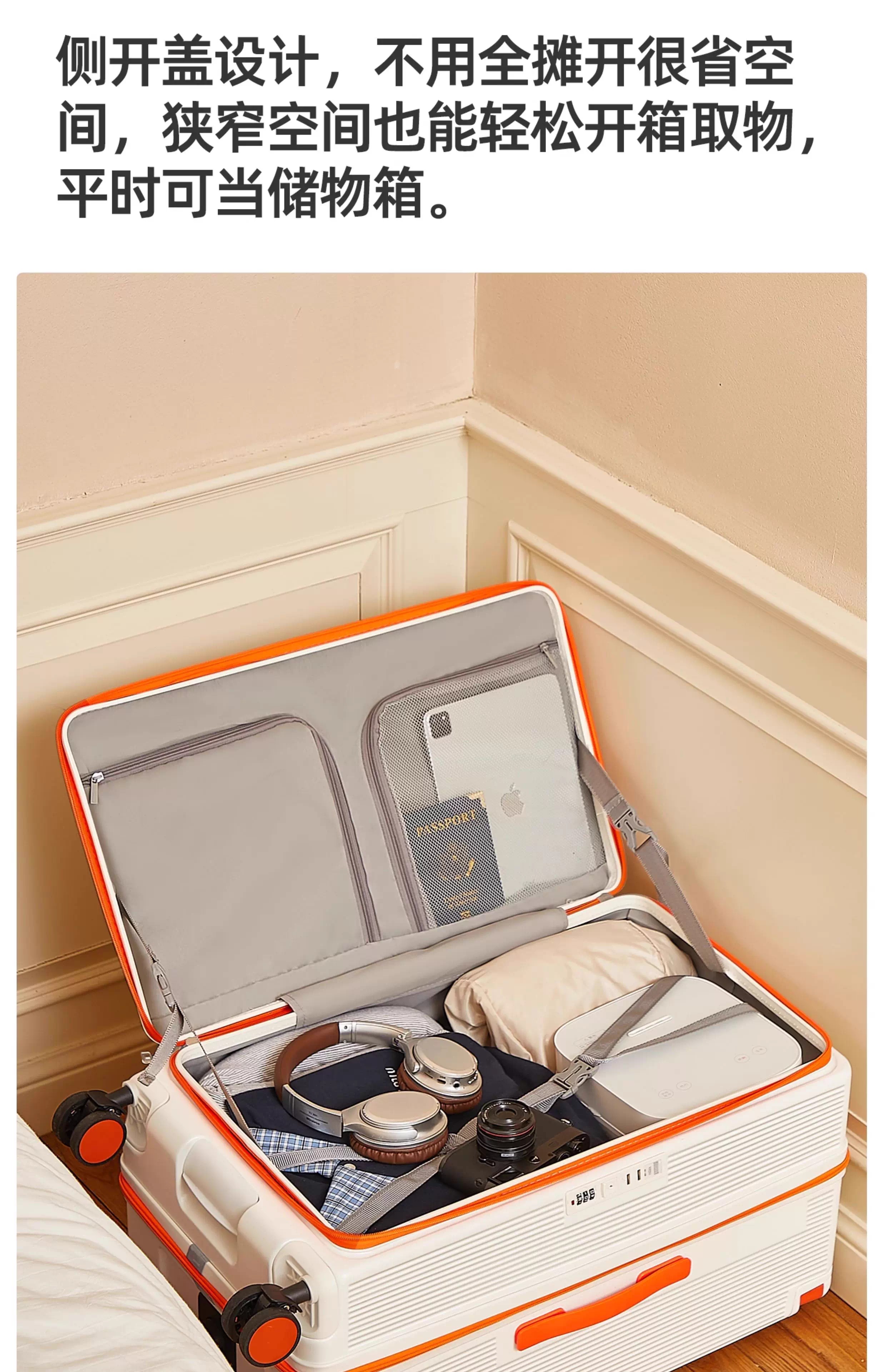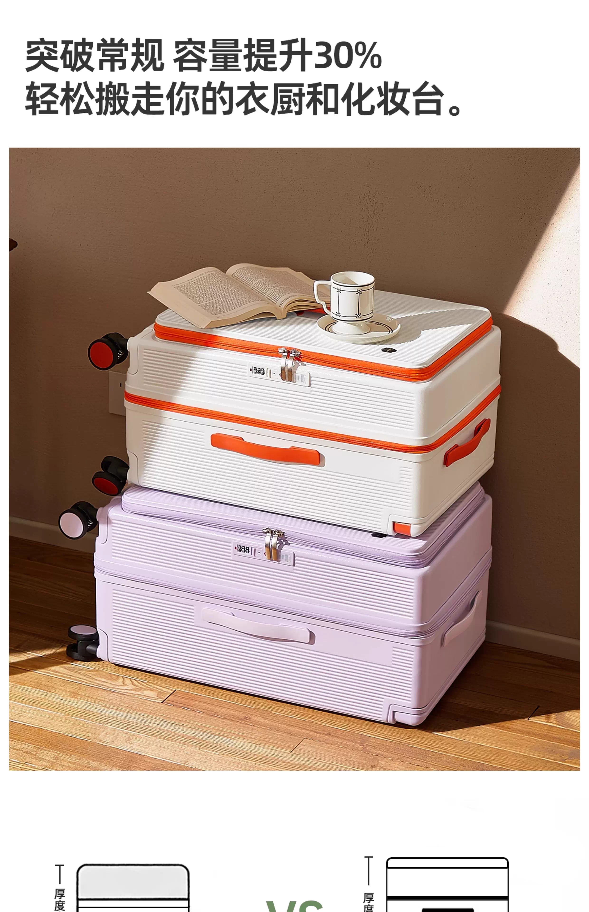 Side-opening suitcase wide trolley box 24 inches large capacity 20 inches password check-in luggage Jing Tokyo Hi self-operated white with orange 30% 2025 edition limited contrast color 28 inches