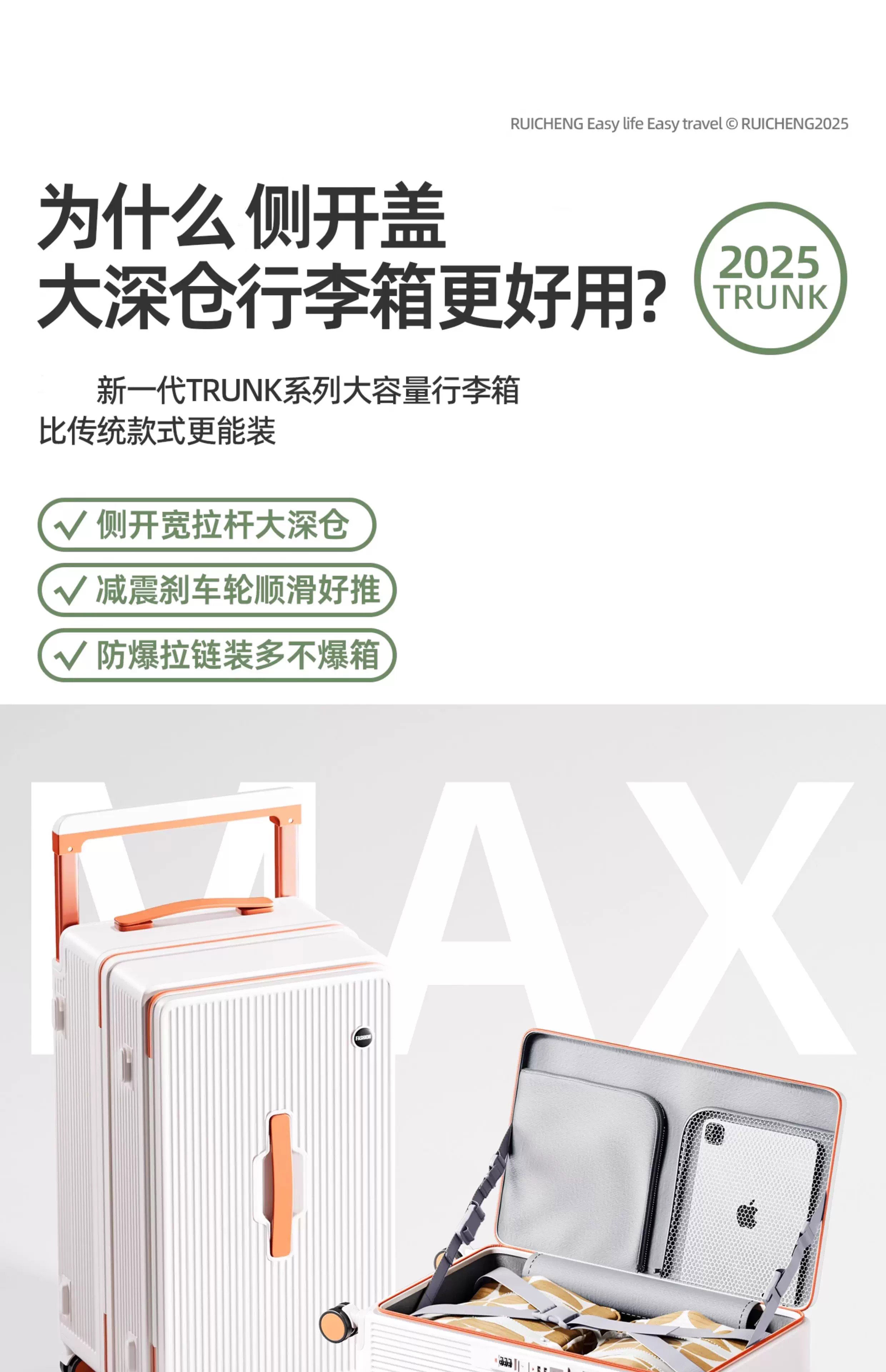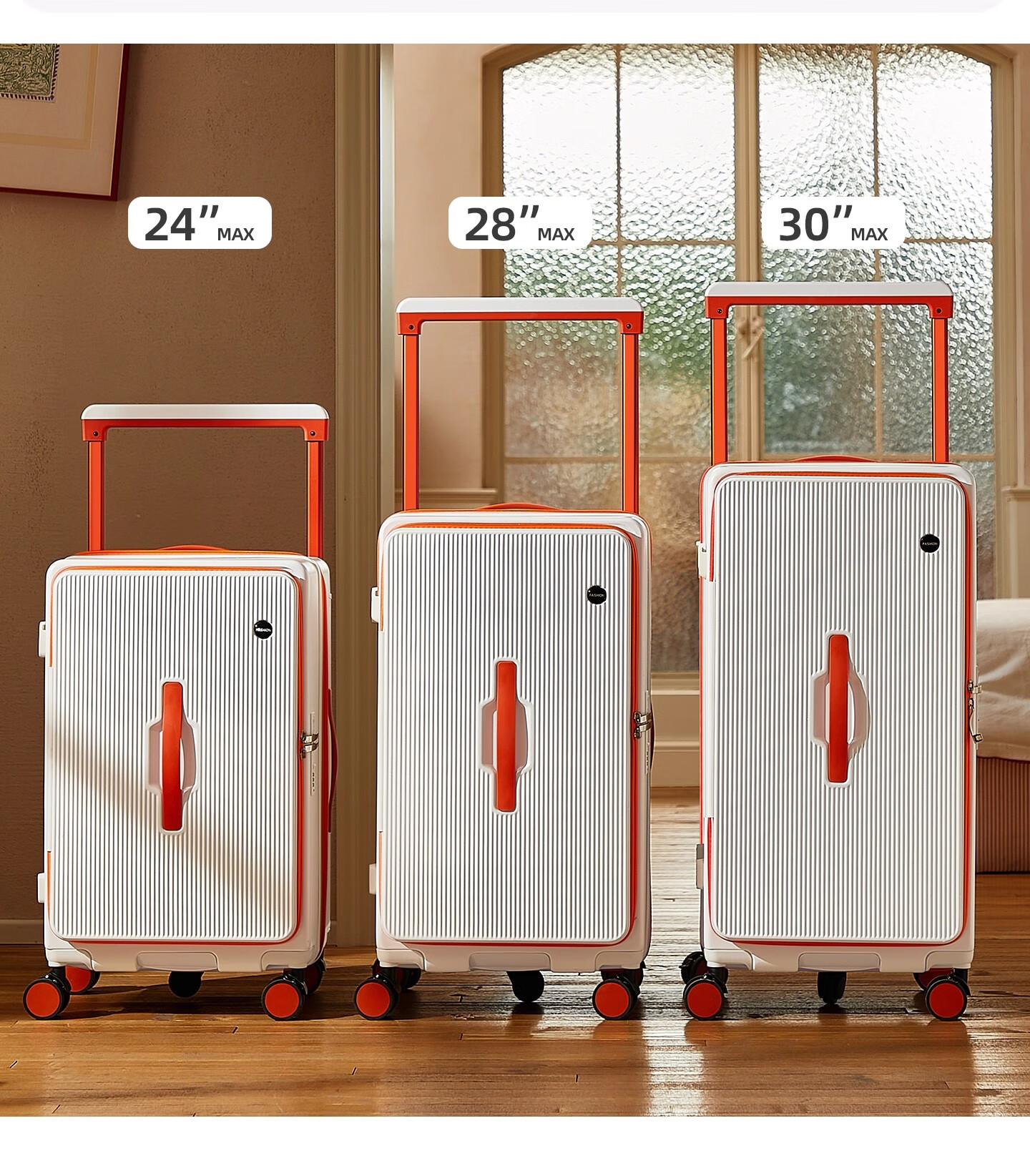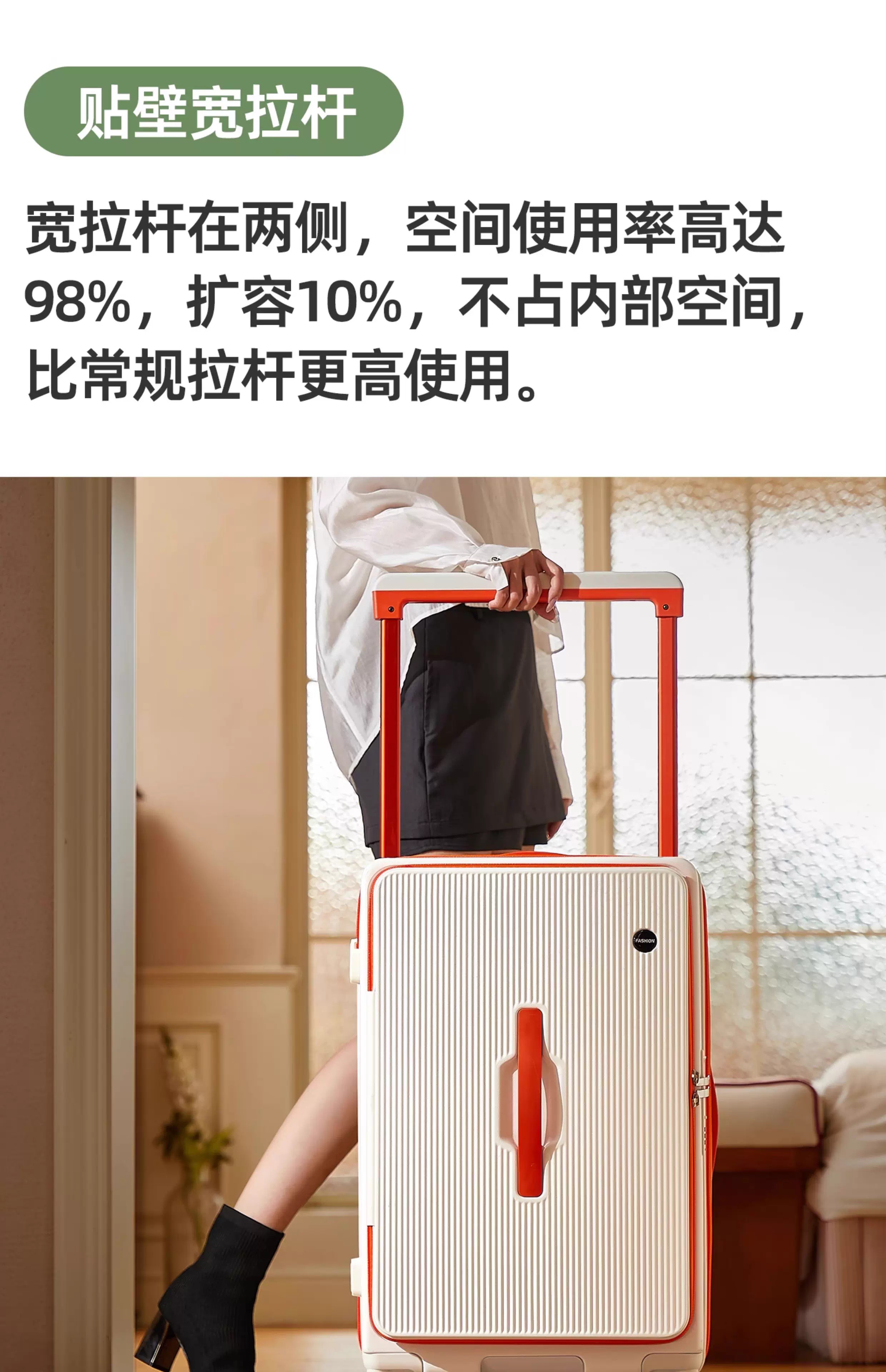 Side-opening suitcase wide trolley box 24 inches large capacity 20 inches password check-in luggage Jing Tokyo Hi self-operated white with orange 30% 2025 edition limited contrast color 28 inches