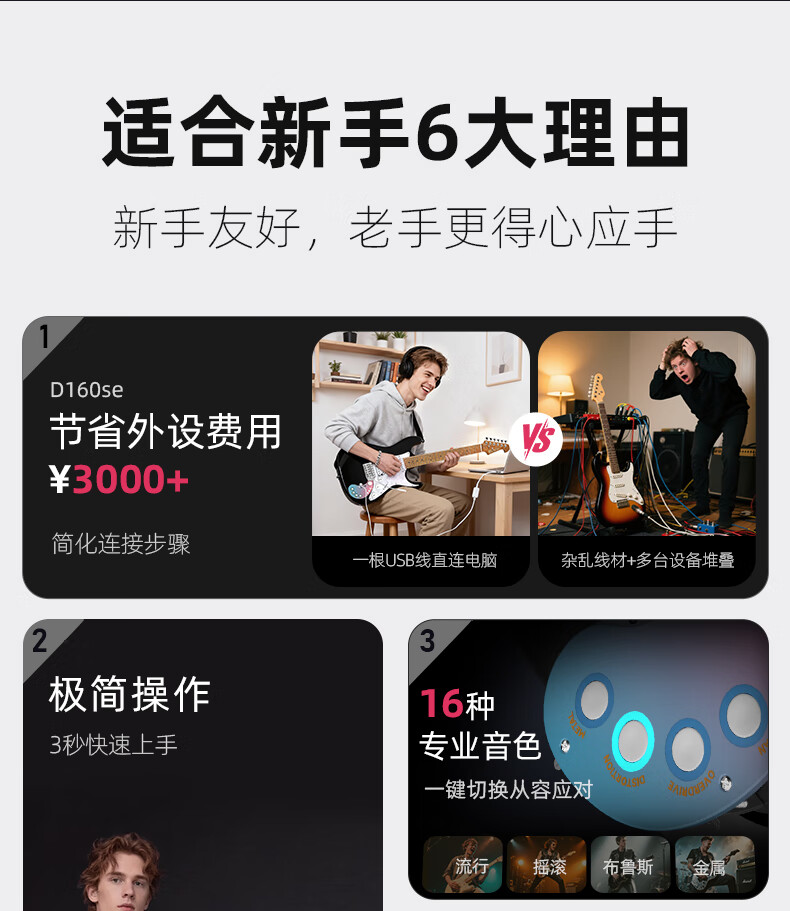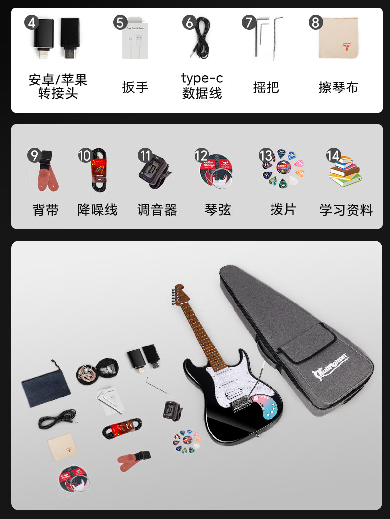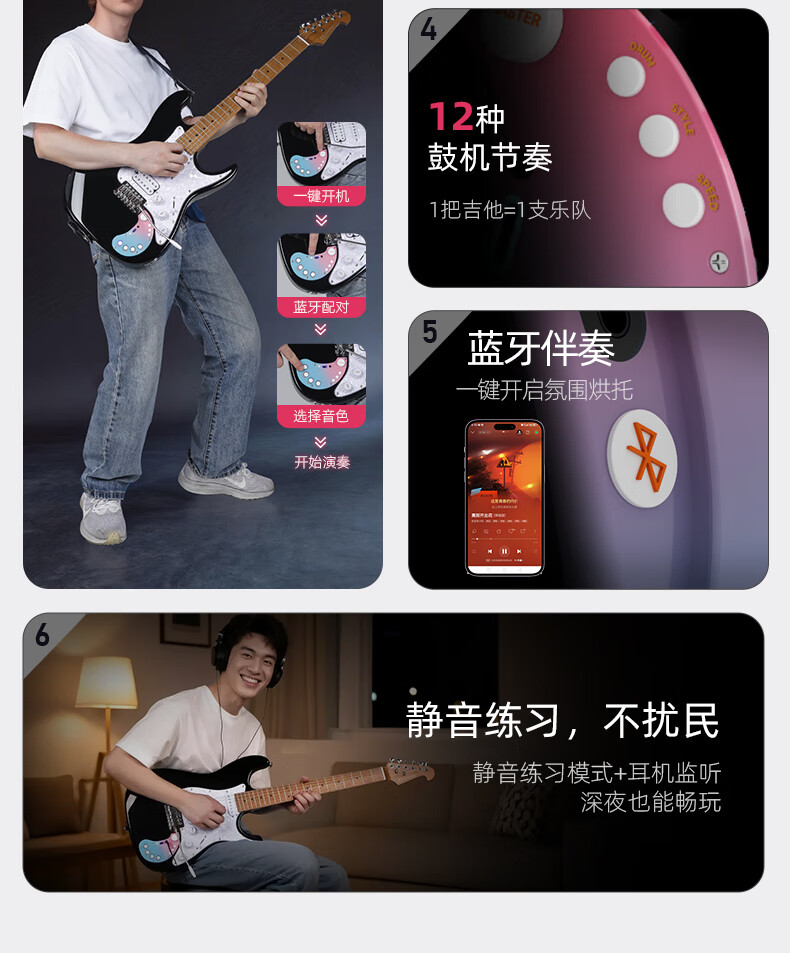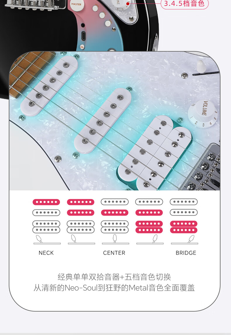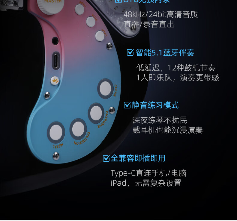 Matador electric guitar for beginners, smart 160se built-in effector, Bluetooth, live broadcast, and can be connected to headphones, 160SE limited sea pattern stone color