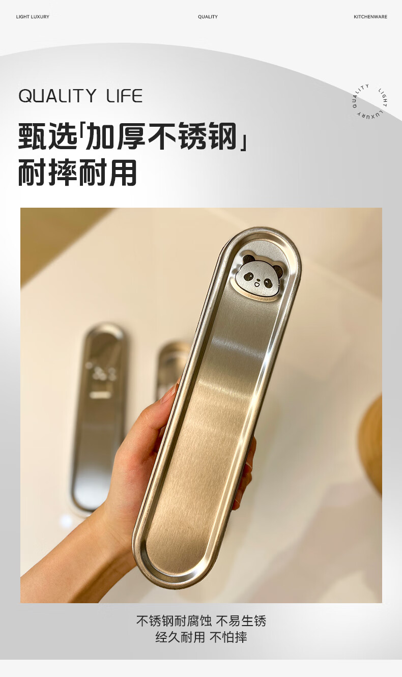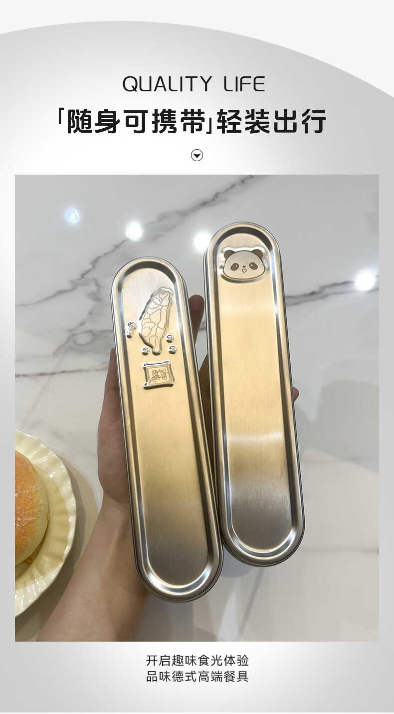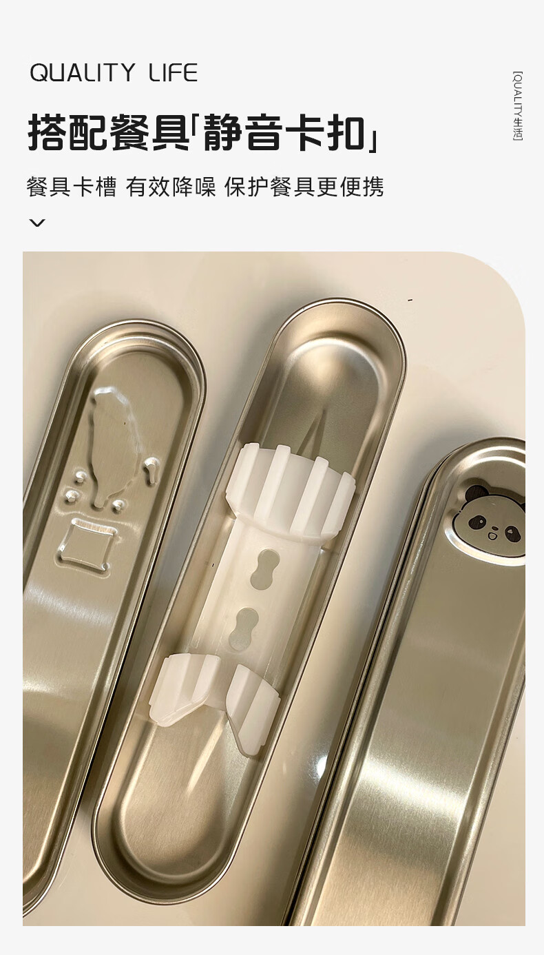 GEEGO cutlery box 304 stainless steel chopsticks spoon set 316 stainless steel portable tableware set chopsticks student tableware 304 steel chopsticks spoon + 304 steel box panda