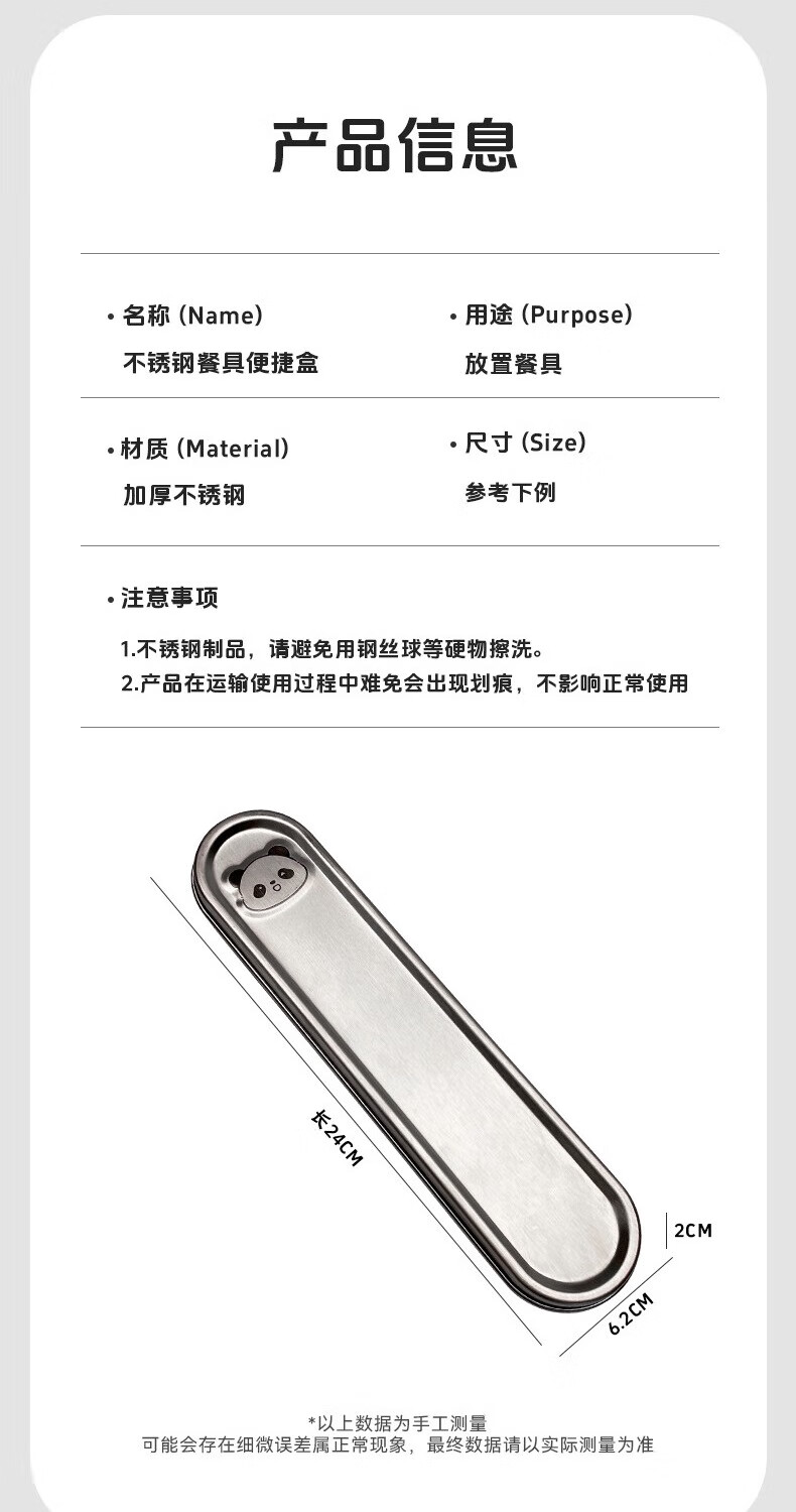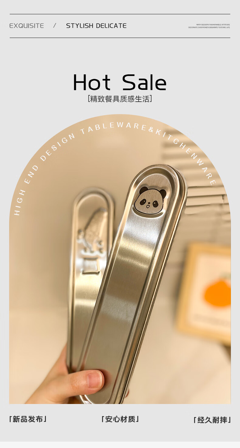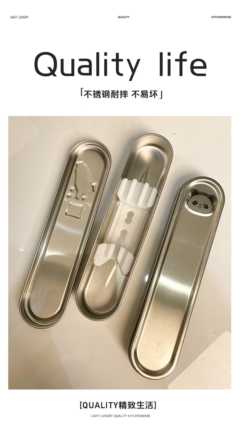 GEEGO cutlery box 304 stainless steel chopsticks spoon set 316 stainless steel portable tableware set chopsticks student tableware 304 steel chopsticks spoon + 304 steel box panda
