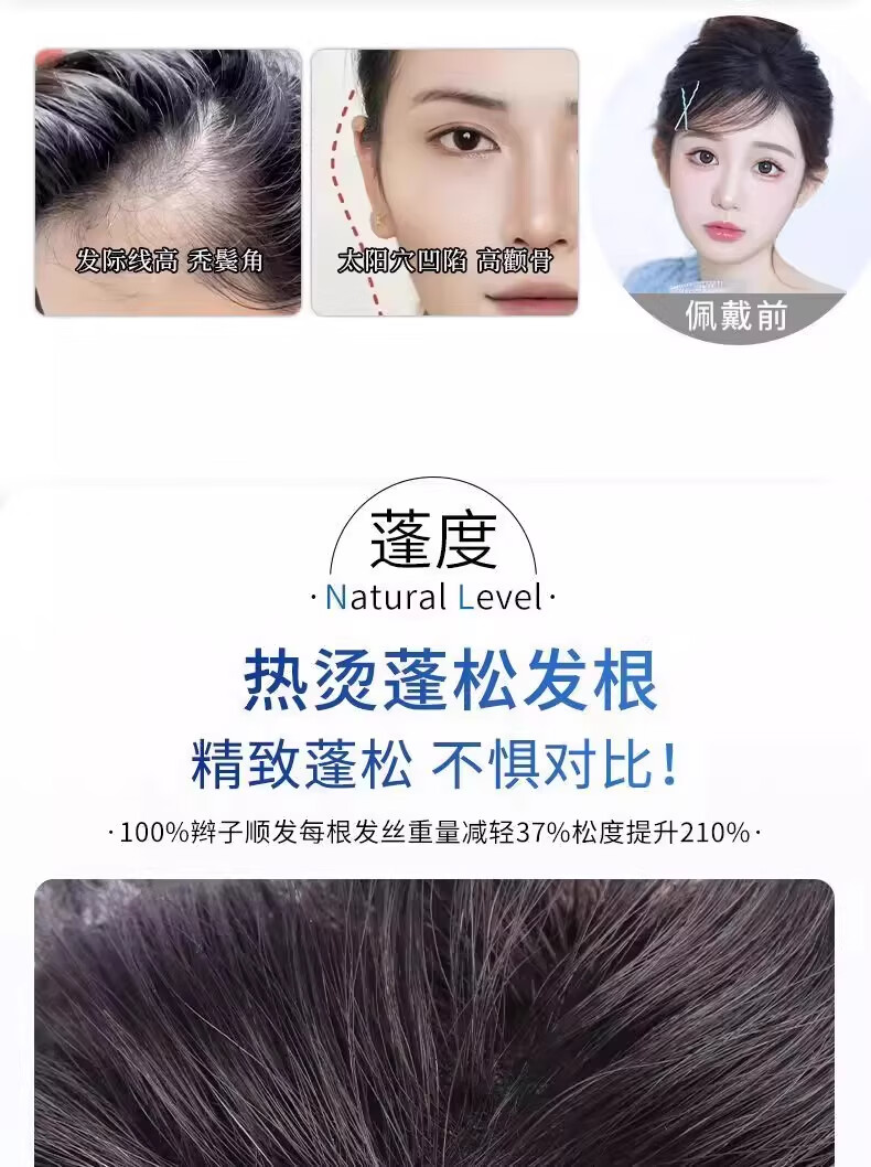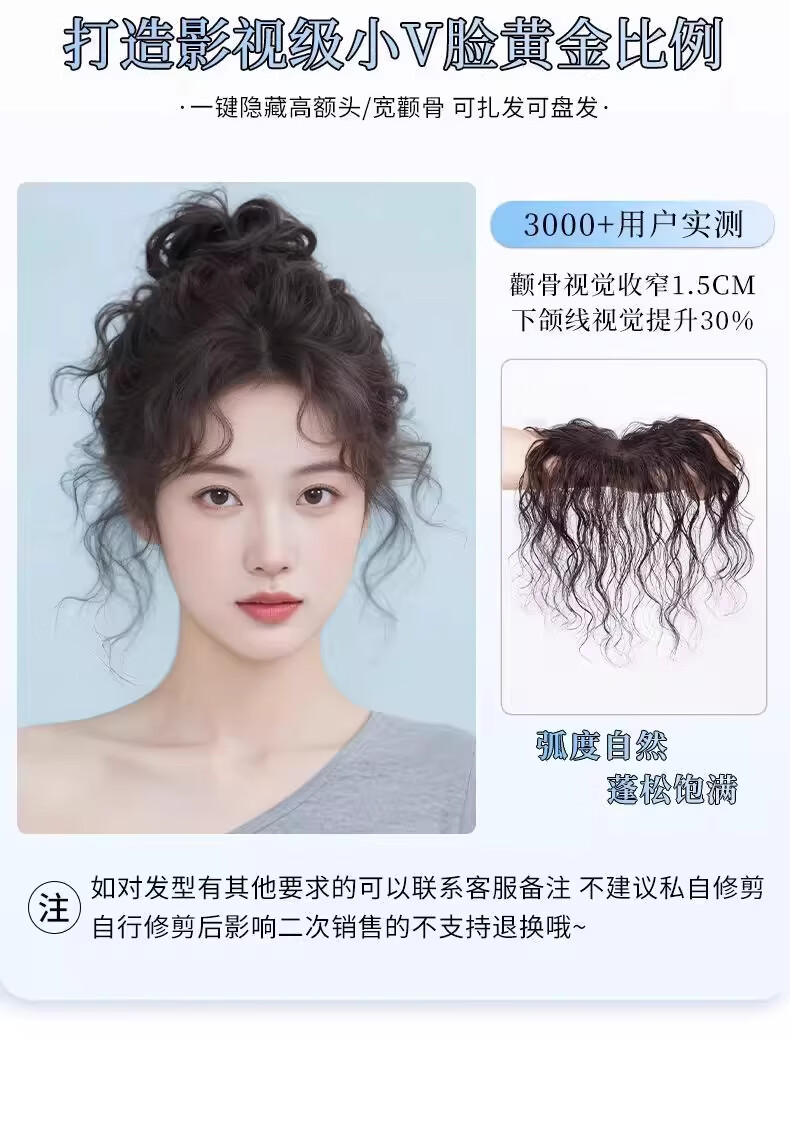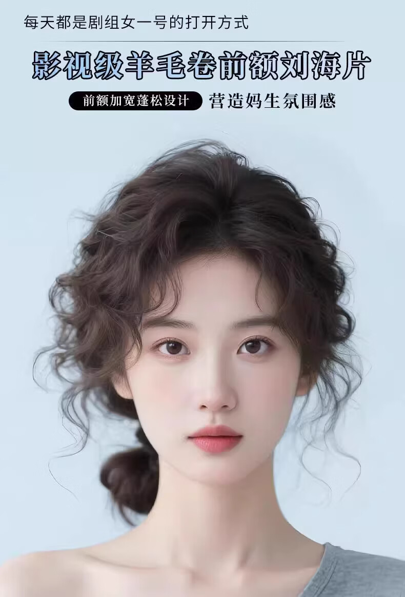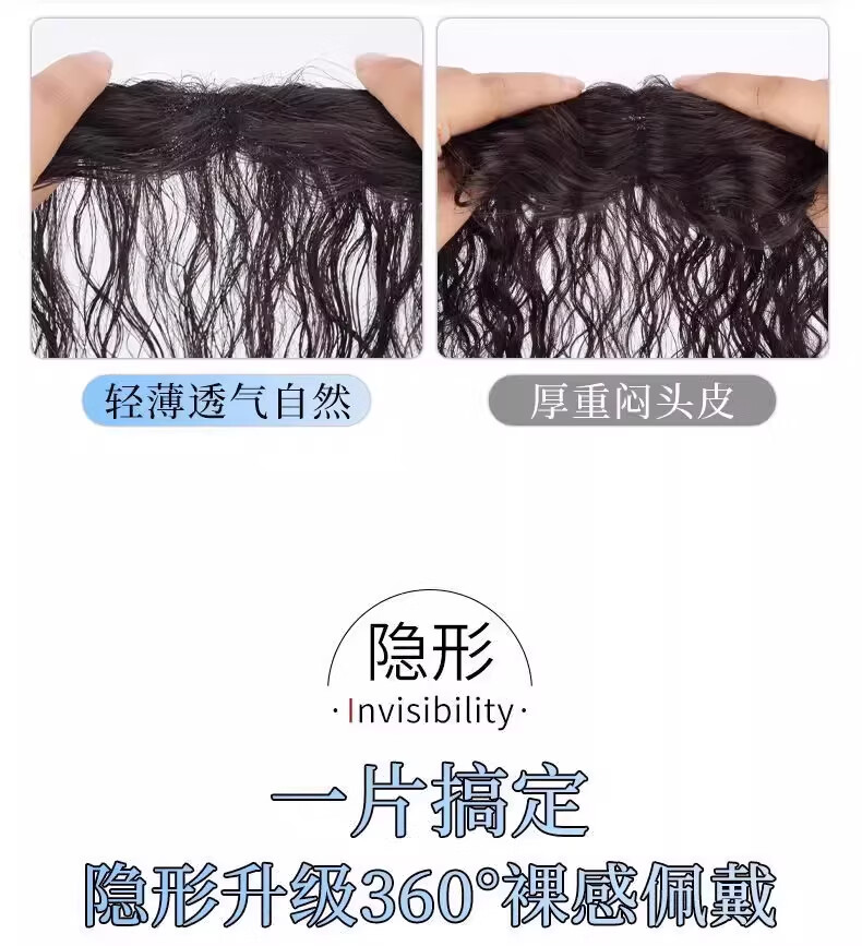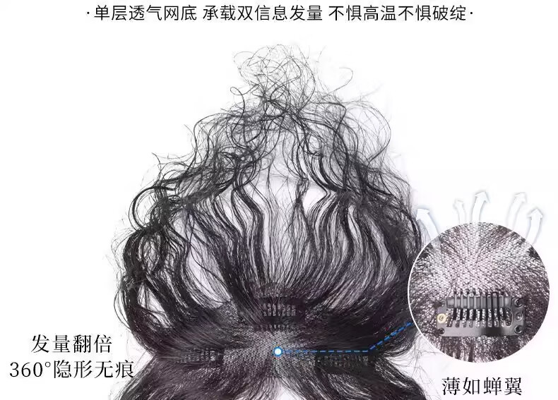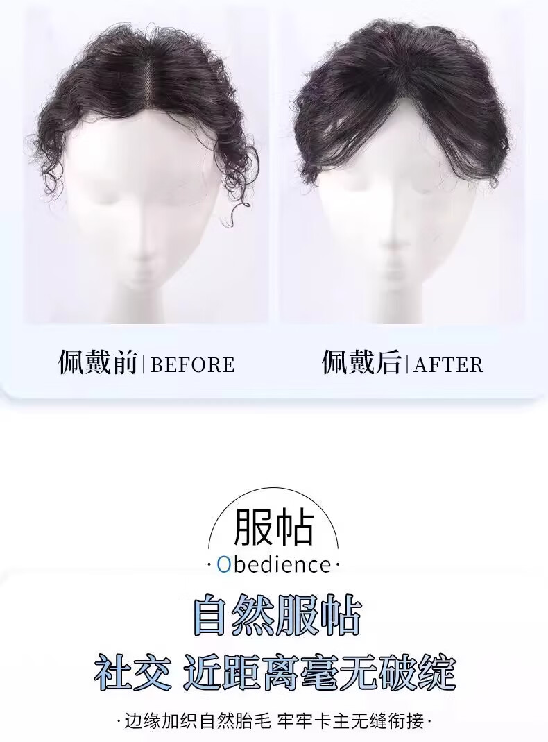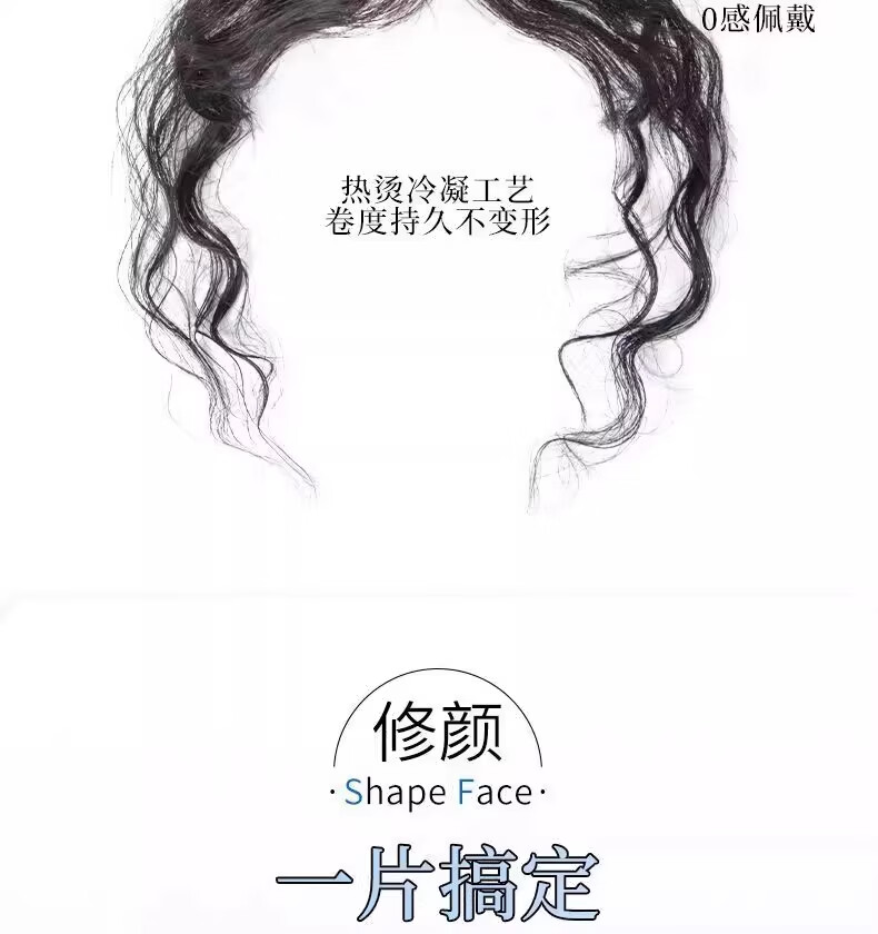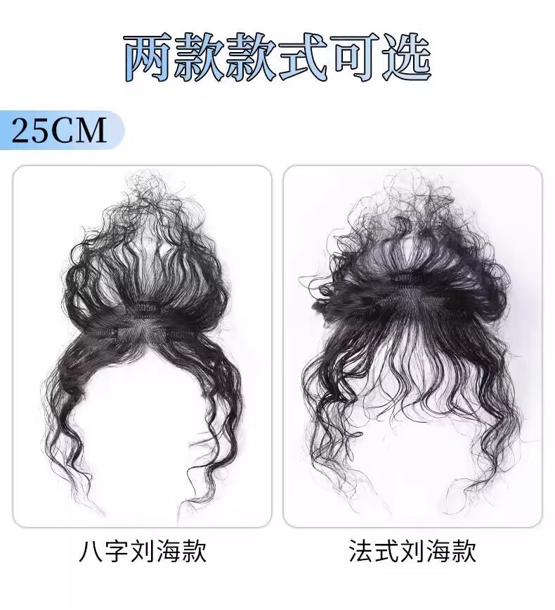 Real hair bangs wig piece for women high skull fluffy wavy invisible lanugo hair thin hairline sticker HJ231BJ/wool curly lanugo hair bangs self-heating black full bangs